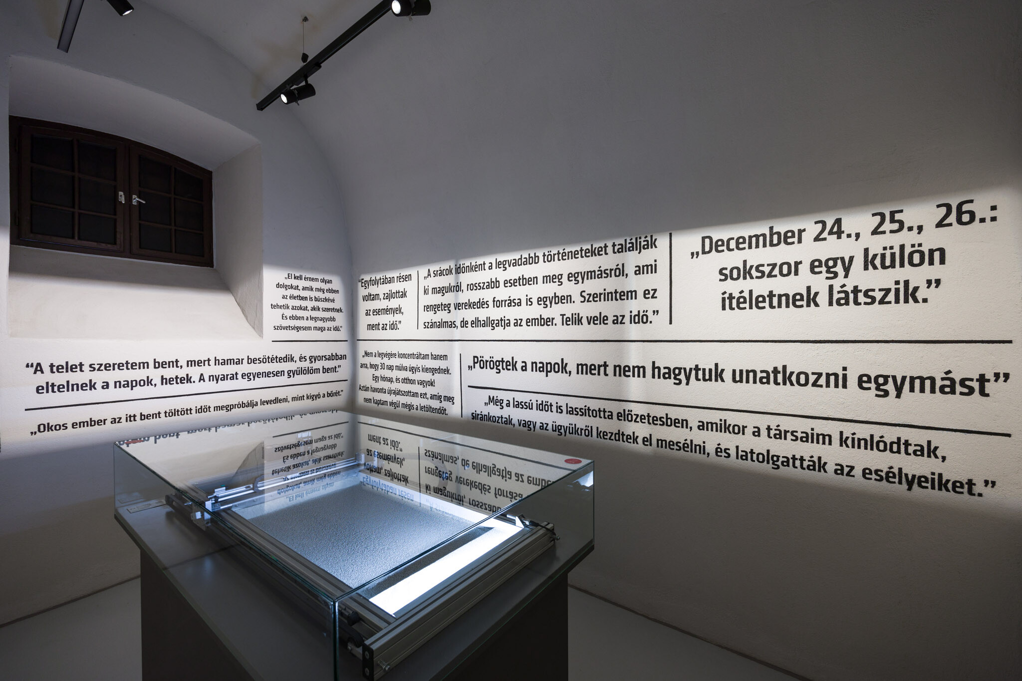 „Ember a rács mögött” címmel nyílt meg a kiállítás, amely a helytörténeti és büntetésvégrehajtási témát egyedi módon dolgozza fel. Különleges élmény maga a helyszín, amely a megszokott múzeumi terek helyett a veszprémi vár szikláira épített börtönszint. Schmidt Istvántól megtudhattuk, a kiállítási útvonal három, jól elkülöníthető szakaszra bontható: