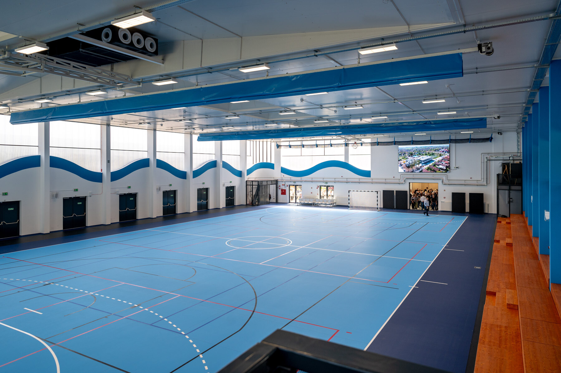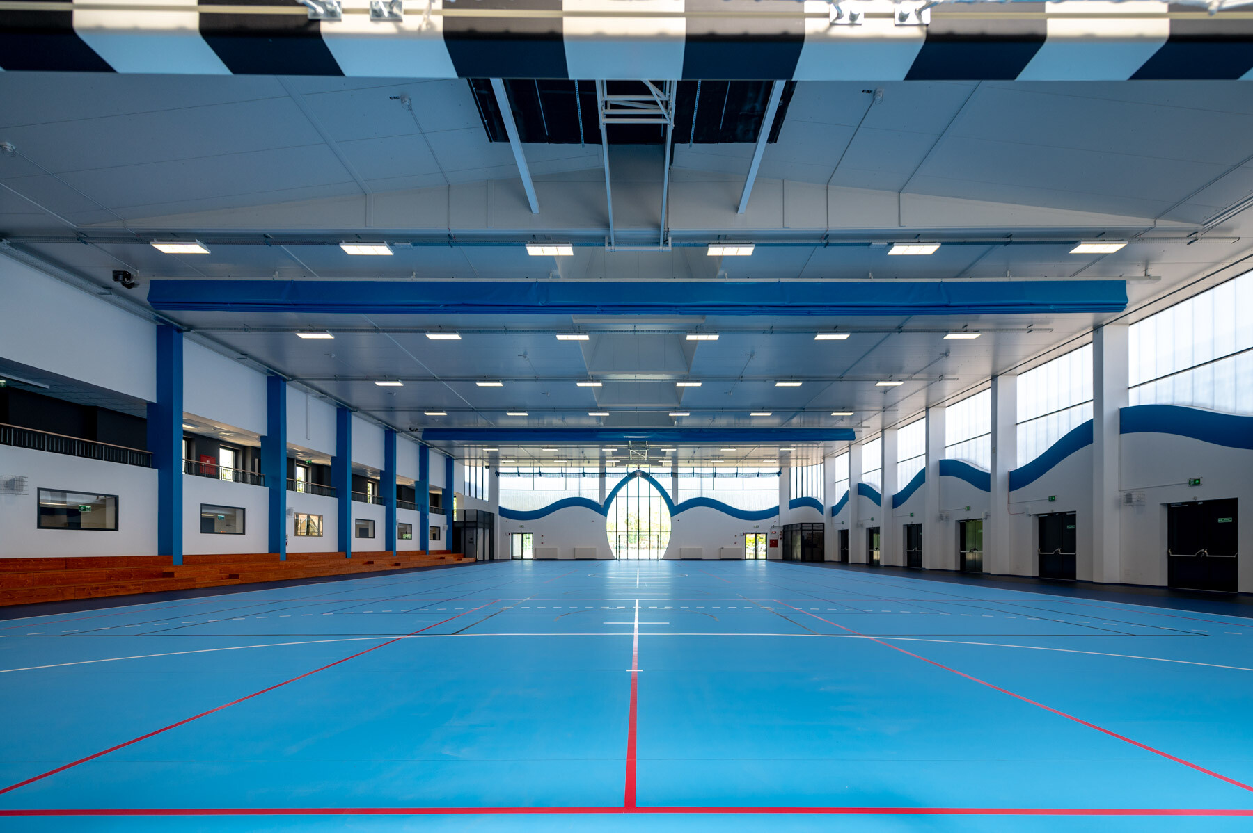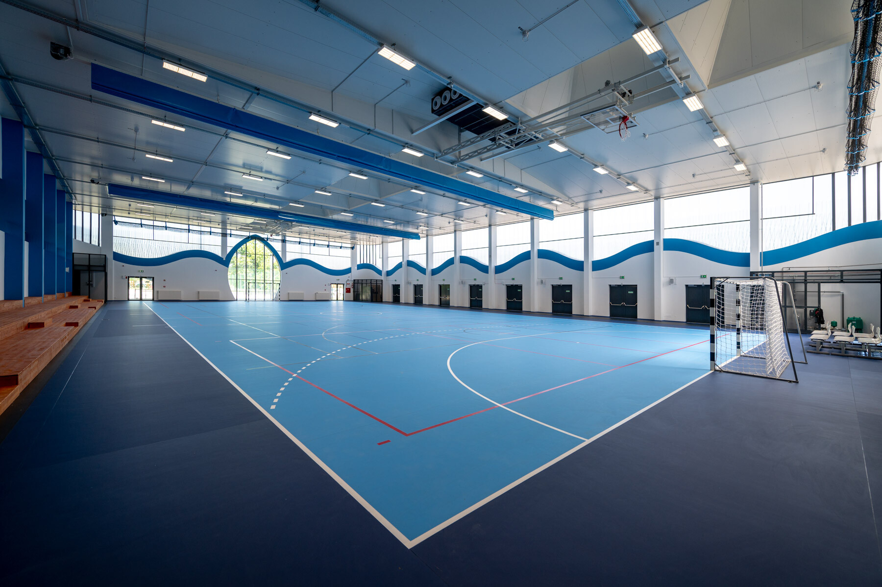 A beruházás elején elbontották a korábban a helyszínen található épületeket és a kész létesítményben egy 20×40 méteres, szabványos méretű küzdőtérrel, 300 fős mobil lelátókkal, öltözőkkel és egyéb kiszolgáló helyiségekkel rendelkezdő sportközpont jött létre. A külső területen egy 1367 négyzetméteres sportpályát is kialakítottak.