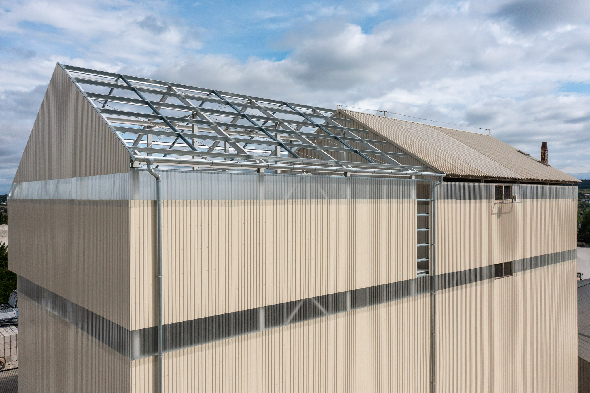 „Szép, kihívásos és komplex feladat ez – összegezte Sajben Tamás –, hiszen a meglévő üzem működésének zavarása nélkül épül a szerkezet, ráadásul a bevilágító trapézlemezen kívül a teljes anyagigény a saját üzemünkben gyártódott (acélszerkezetek, szelemenek, trapézlemezek és élhajlított elemek).