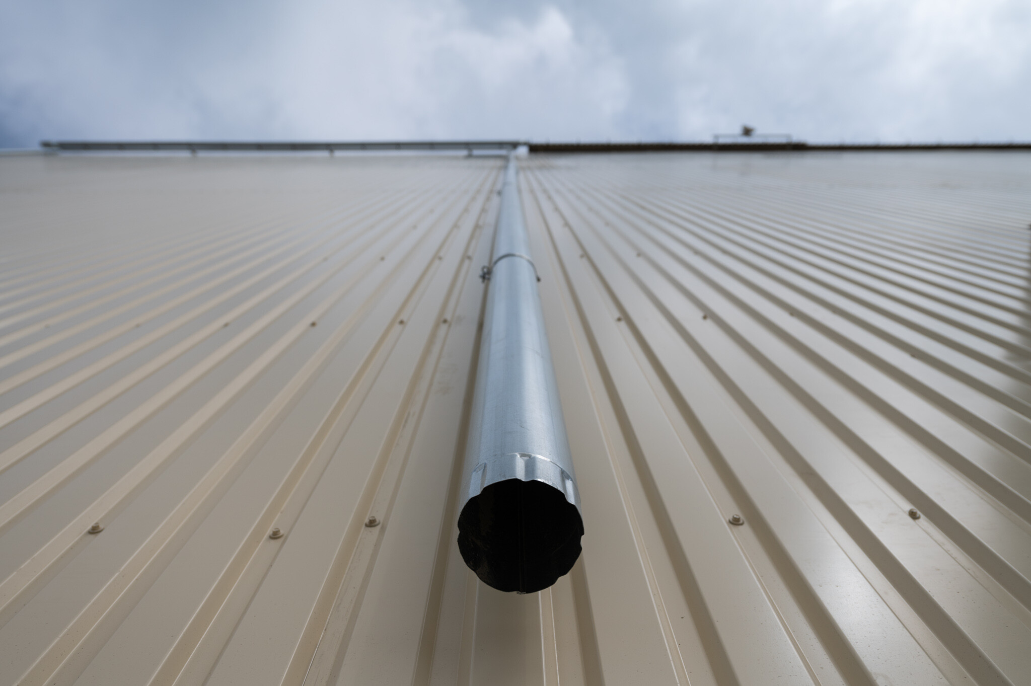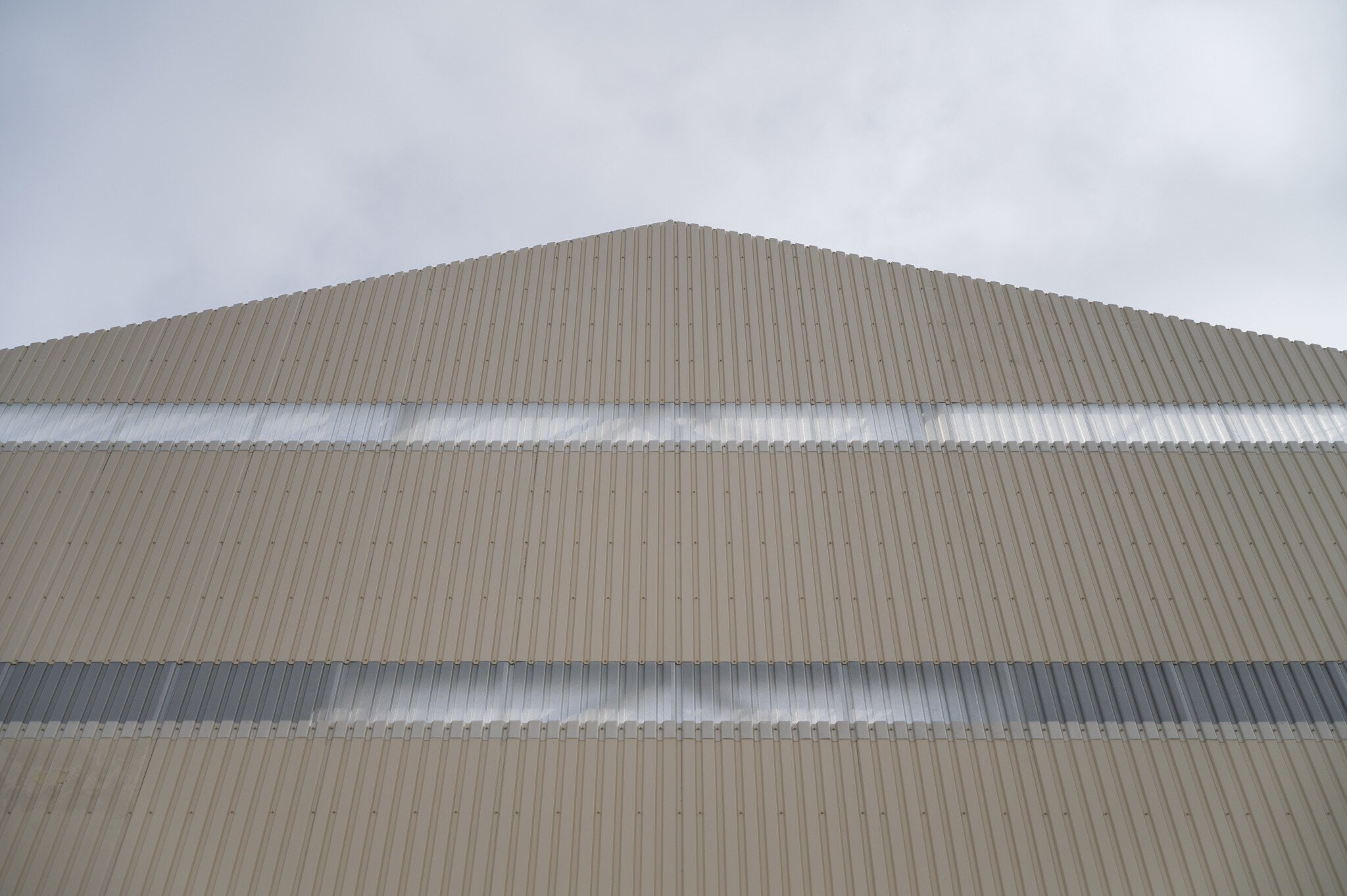 Trapézlemezek burkolják a tetőt és az oldalfalakat is, amelyeket az Orha Művek saját gépsorain gyártottak: az ES.F20 – 20 mm magas falprofilt és az ES.T 35 tetőprofilt 0,63 mm vastagságú lemezből hengerelték. Az épület gerincén sarkain, ormán, valamint nyílászárók környezetében elhelyezett, élhajlított elemeket, illetve a csatorna lefolyóelemeinek szerelését szintén saját gyártásból valósította meg a vállalat.