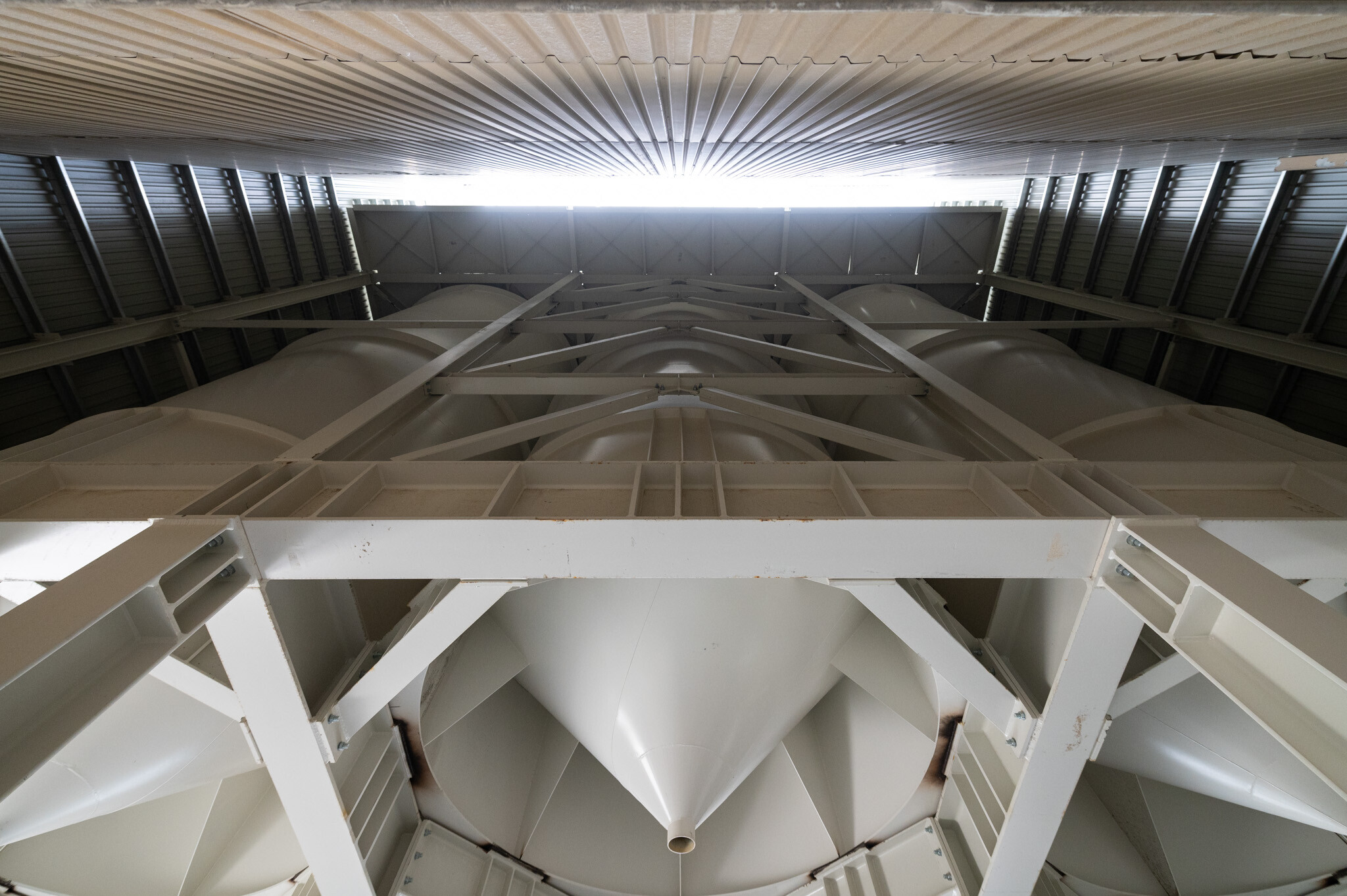 A silók feletti födémszinten, a silók betárolására használt technológiai csövezés geometriai helyének biztosítására járható és egyben nyitható/zárható bordáslemez lefedés készült. A technológiai és tartószerkezeti geometriai ütközések elkerülésére pedig speciális födémsík-merevítő elemeket alkalmaztak.