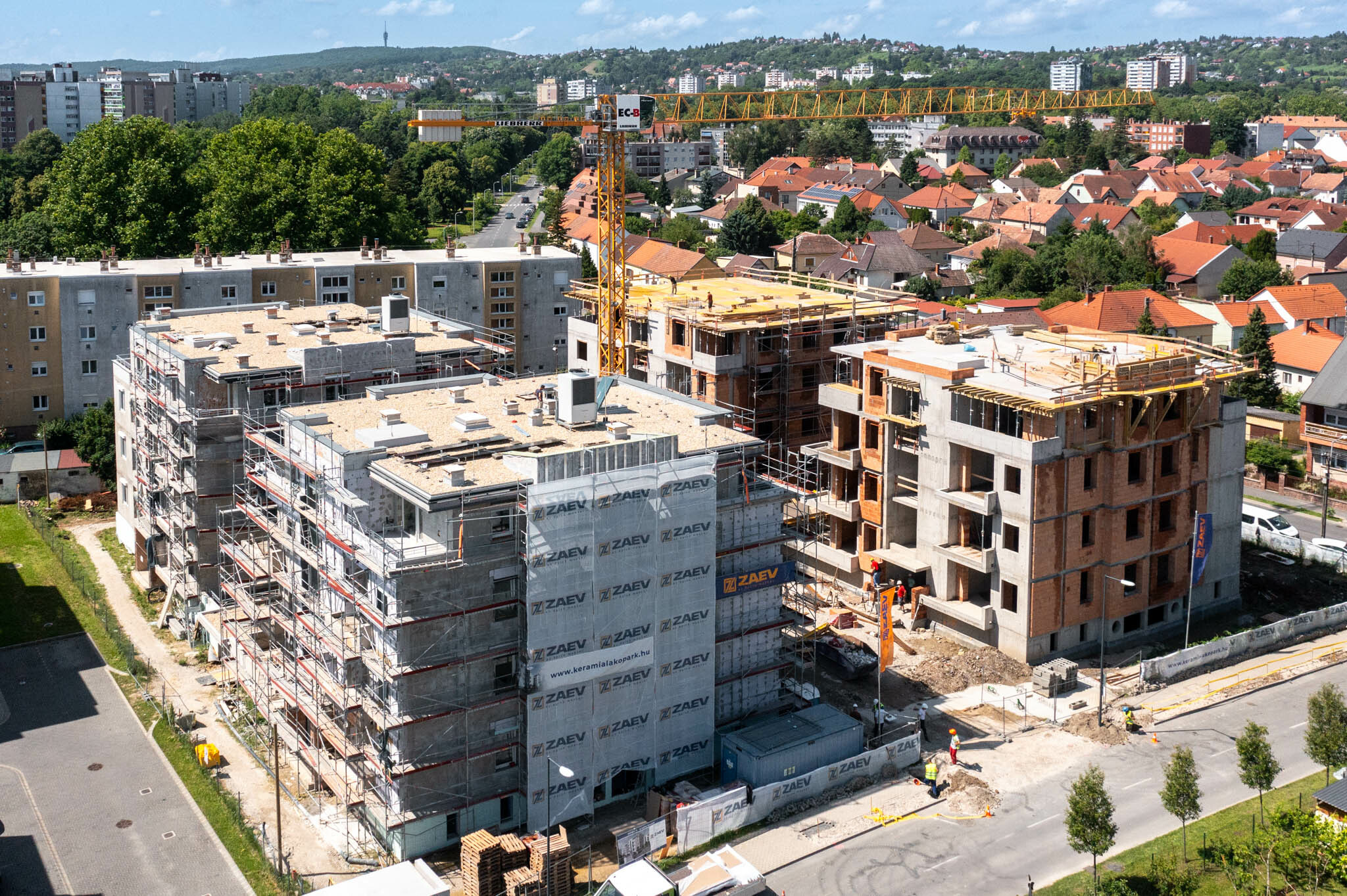A Kerámia utcai ingatlanberuházás korábbi szakaszában két lakótömb már felépült. A projekt III. ütemének kivitelezése 2023 elején kezdődött el, amelyben két újabb épülettömbben, 30 új otthon létesül – tájékoztatta portálunkat Mihócs Krisztián, a ZÁÉV projektvezetője. A két lifttel felszerelt lépcsőházzal rendelkező társasház alagsorában teremgarázs kapott helyet, felette magasföldszintet és további három emeletet építettek fel.