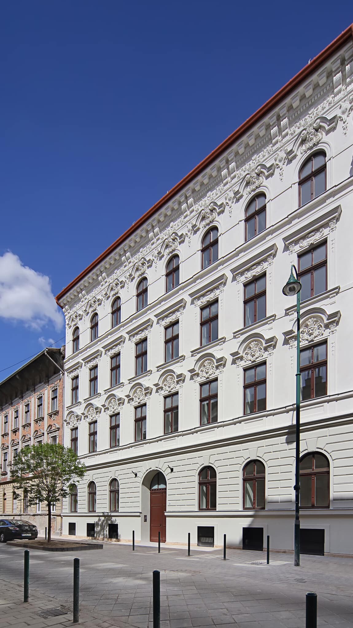 A FEV IX. Zrt. megbízásából kivitelezett tömbrehabilitáció eredményeként az eklektikus épület 27 lakásnak és 2 irodának ad helyet. Teljesen felújított, világos lakások állnak mára az önkormányzat rendelkezésére a megújult épületben, ahol az udvari szárnyak elbontásával alakíthattak ki értékes belső udvart az Épkar munkatársai. Az épület zárófödémének és tetőszerkezetének komplett cseréjét követően a tetőteret is beépítették, figyelmesen megőrizve ugyanakkor az utcai homlokzat jellegzetes jegyeit és kialakítását. A teljeskörű építészeti, gépészeti és elektromos felújítás mellett felvonót is létesítettek.