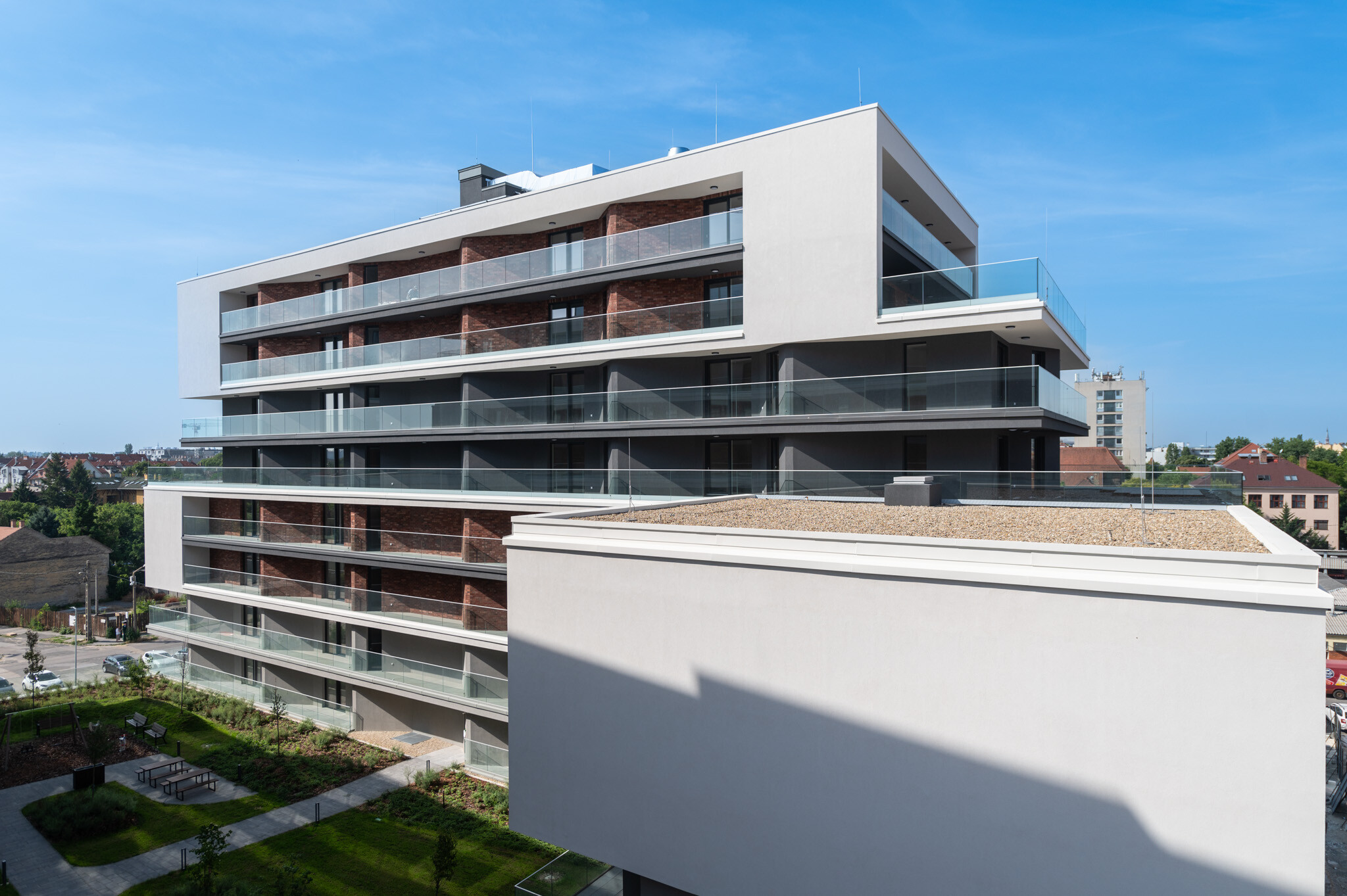 A penthouse lakásoknál a födémterhelést, a víz-és elektromos kiállásokat úgy alakították ki, hogy jakuzzikat is használhassanak a lakói. Így a terasz valódi kert és szabadidős funkciókat kap. A földszinti lakásoknál mintegy 40 négyzetméteres kertek kapcsolódnak az otthonokhoz.
