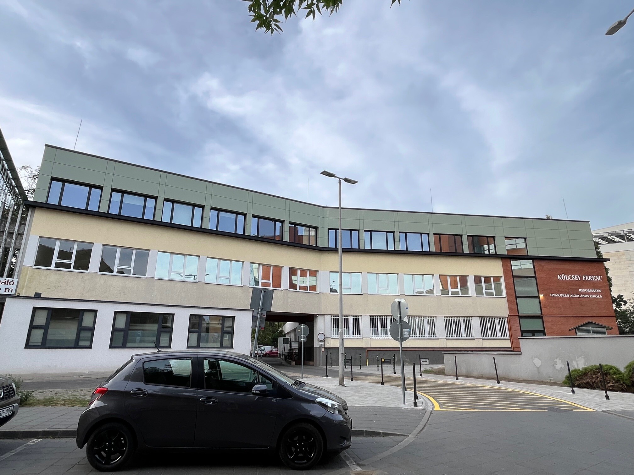 Új tantermek, irodák, valamint zsibongó is helyet kapott a debreceni Kölcsey Ferenc Református Gyakorló Általános Iskola újonnan épült, legfelső szintjén – derül ki a projektet kivitelező Dryvit Profi Kft. Facebook-posztjából. A Tisza András tervei alapján elkészült 600 m2 alapterületű bővítésnek köszönhetően elkészült új tantermeket