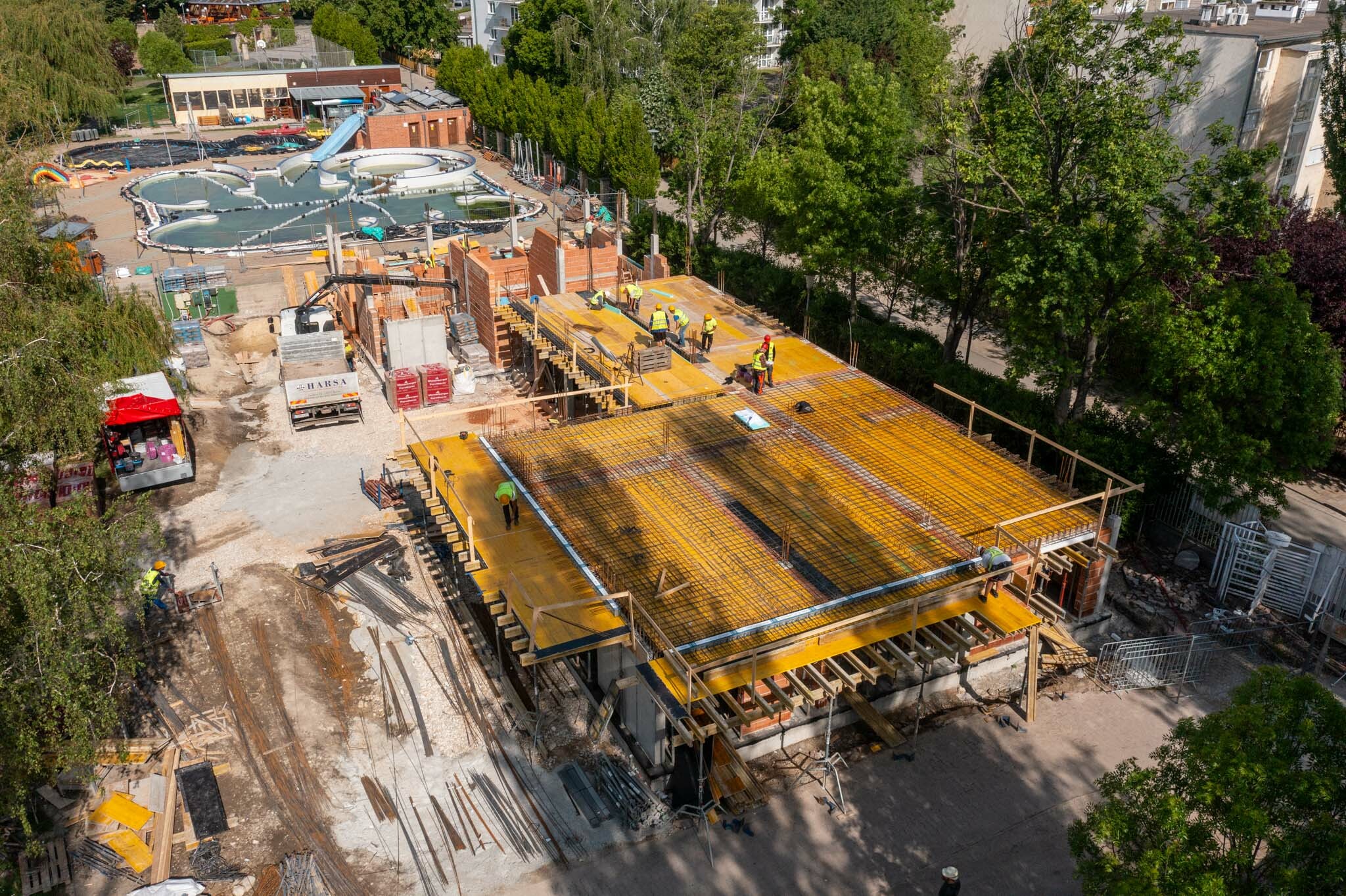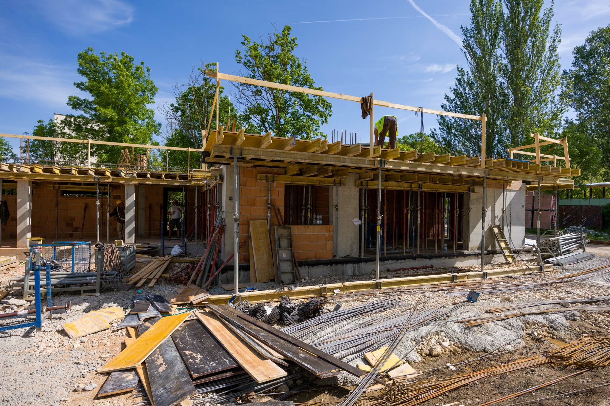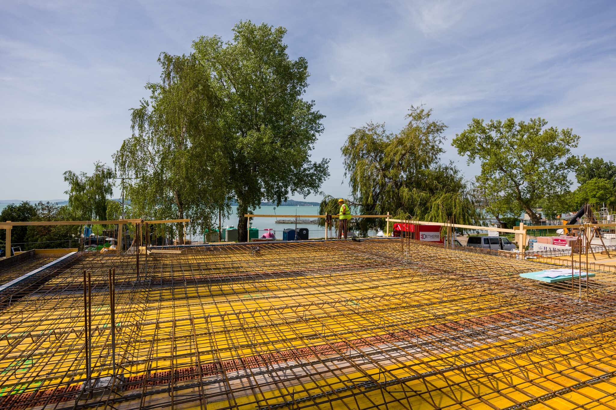 Jelenleg a keleti szárny és a központi épületrész záró vasbeton födémének betonozási munkáihoz kapcsolódó előkészítő munkák, zsaluzások és betonacél szerelések zajlanak a megrendelő a balatonfüredi PROBIO Zrt. megbízásából, de mint megtudtuk: