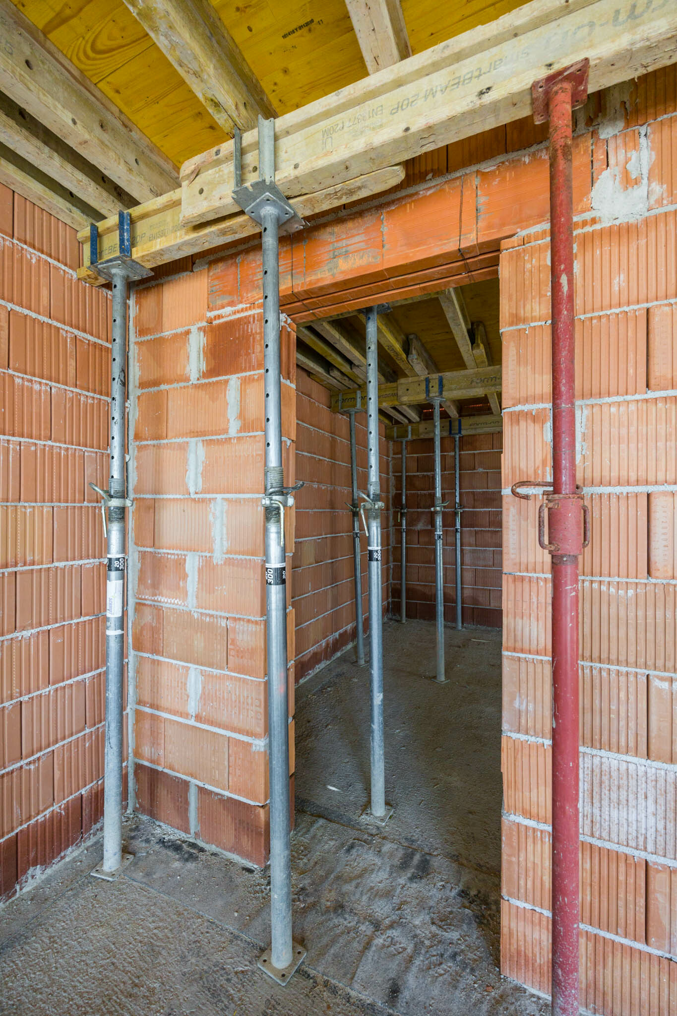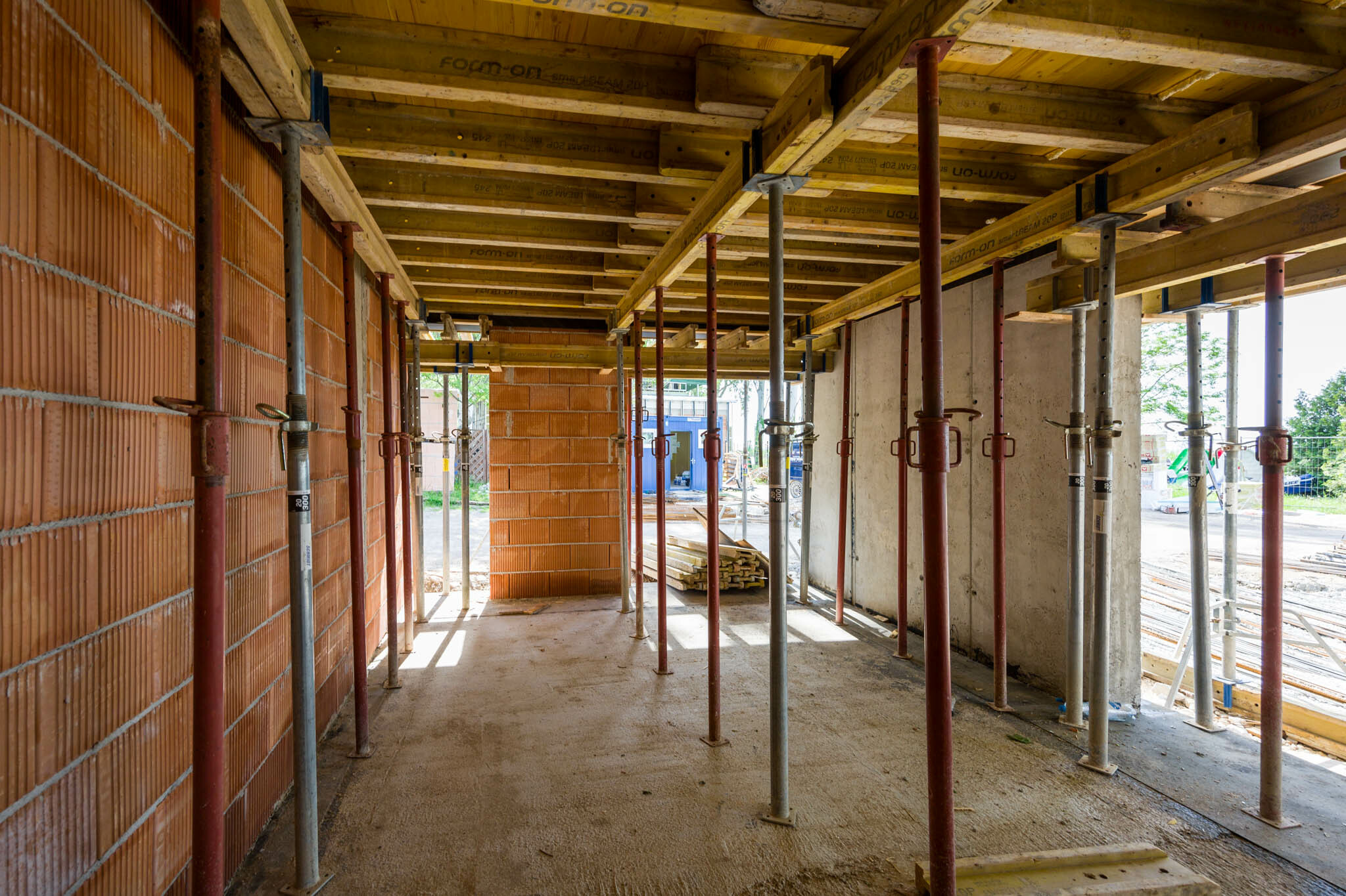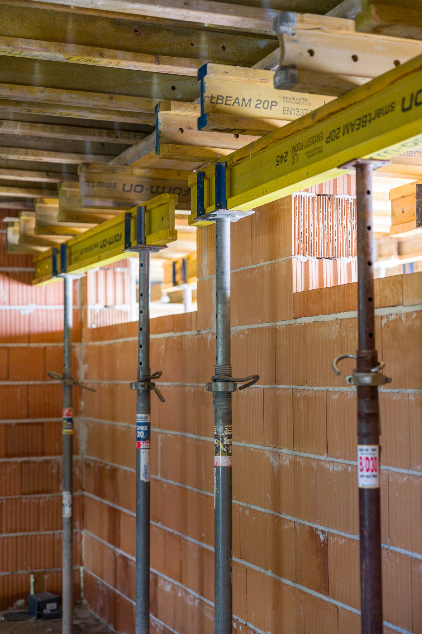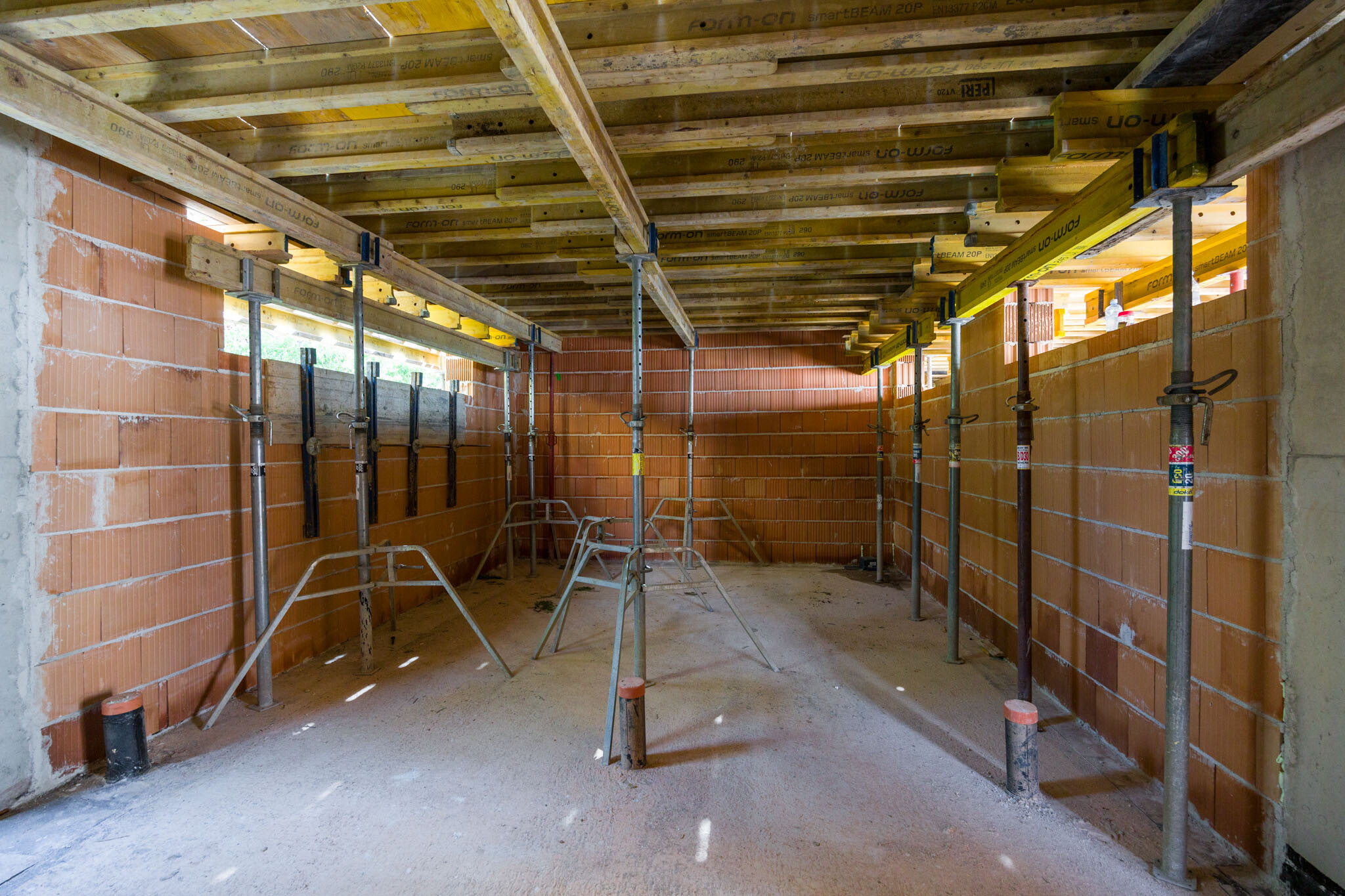 „a nyugati szárny emeleti vasbeton szerkezeteinek (pillérek és falak) betonozási és a szerkezeti kerámia falak falazási munkái is folyamatban vannak. Elindult a keleti szárny földszinti válaszfalak falazása és a villamos alapszerelés is.”