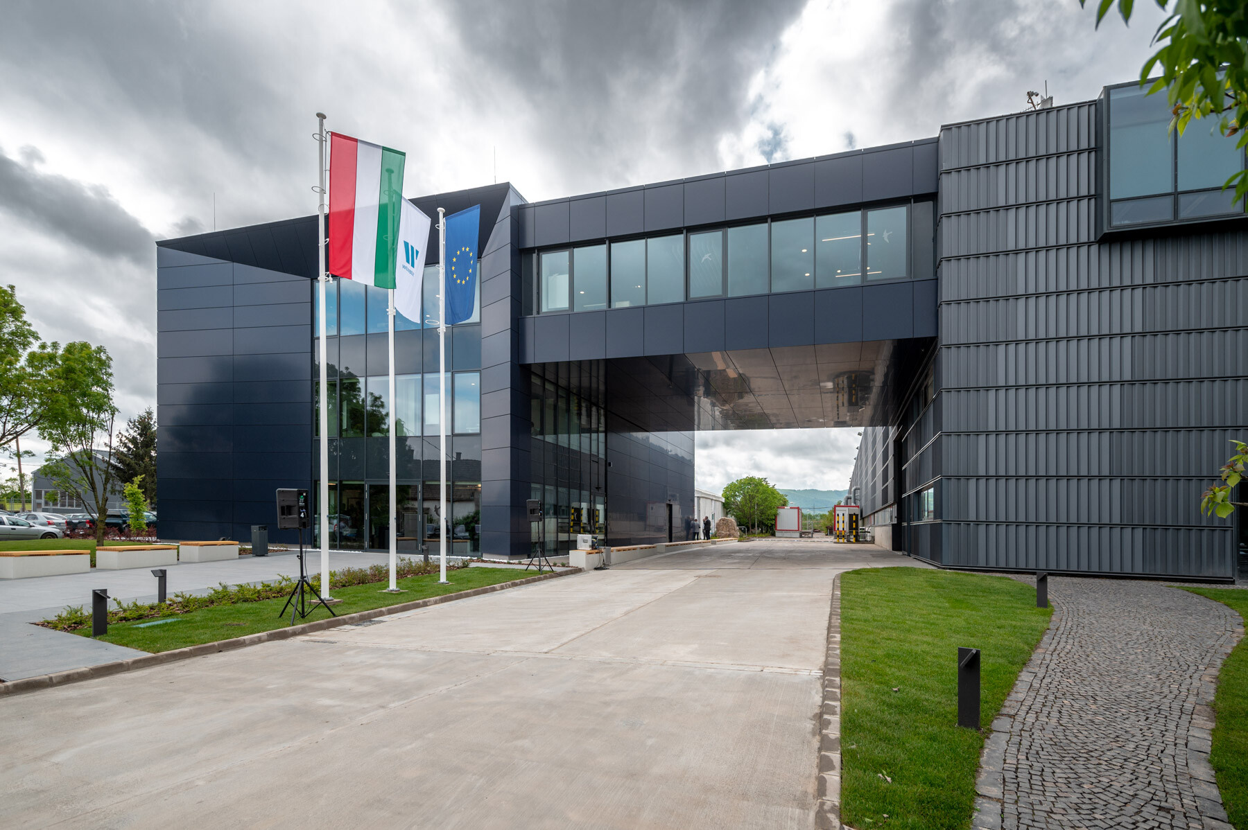 Új épületük a korábbi irodaházzal nem konkurál, helyette a cég szellemiségét is megjelenítve összefog azzal, egy híd segítségével. A közösen alkotott kapumotívum nyitja meg a cég ipari területeit az ide érkezőknek.