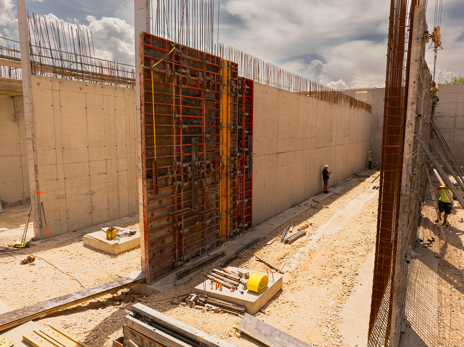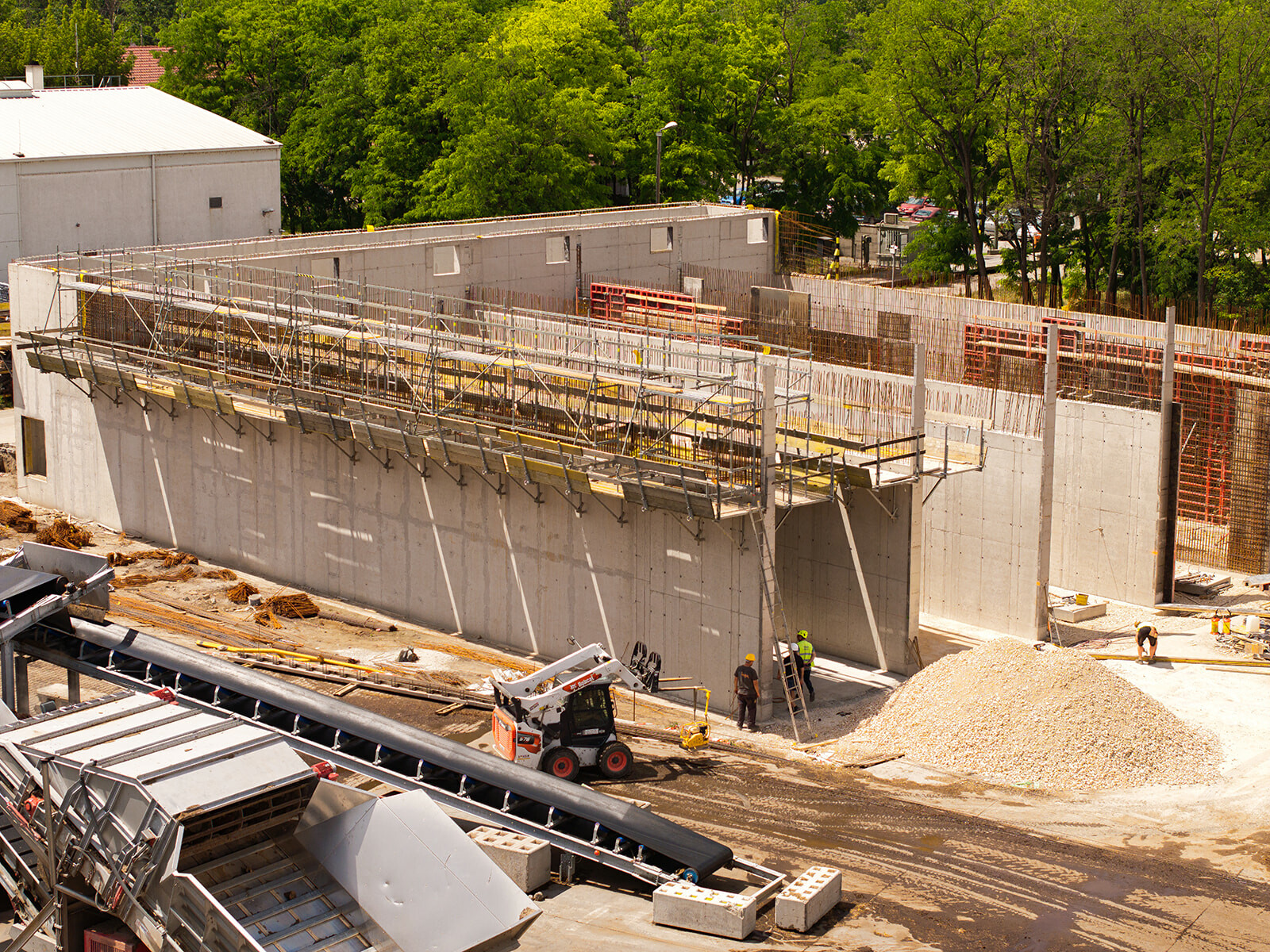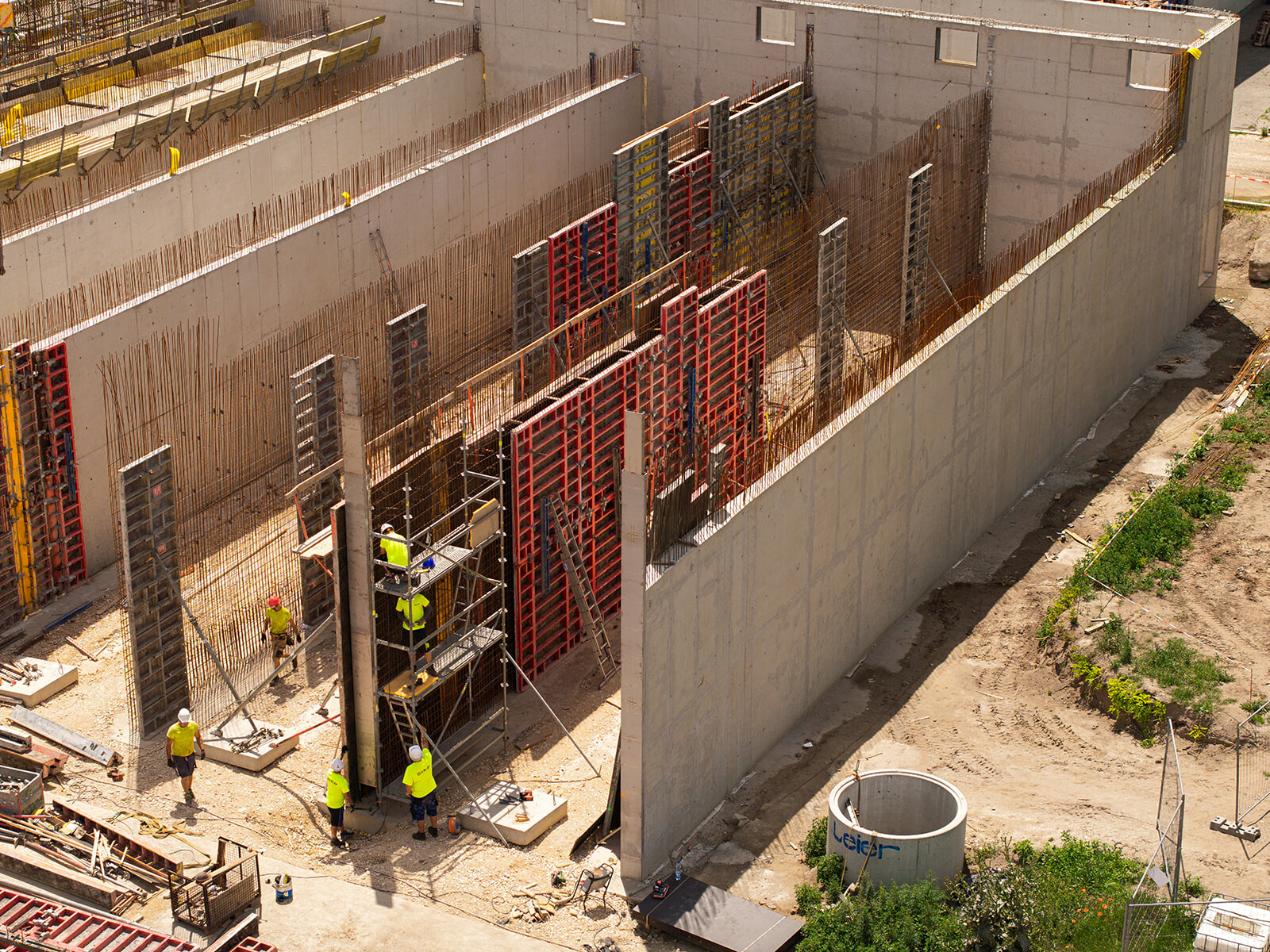A falakhoz a Magyarországon már jól ismert TRIO keretvázas zsalurendszert használták: az egyszerű zsalutechnológia és a rövid szerelési idő jelentősen gyorsította a kivitelezést. Az építést tovább egyszerűsítették emellett a BFD kapcsok, amelyek a táblák összehúzására és egyben síkba rendezésére is szolgáltak.