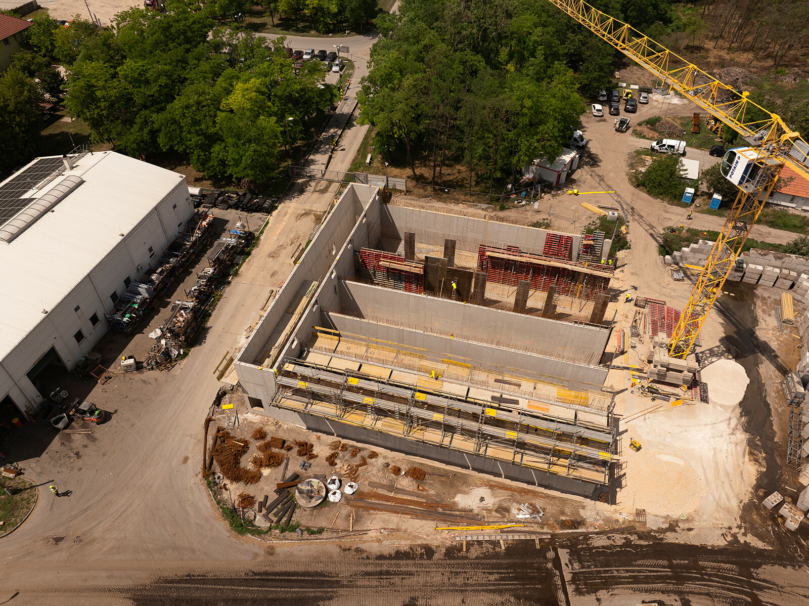 Jelenleg a laskakomposzt előállítására szolgáló bunker kivitelezése zajlik, ahol utolsó üteméhez ért a közel nyolc méter magas vasbeton falak zsaluzása és betonozása