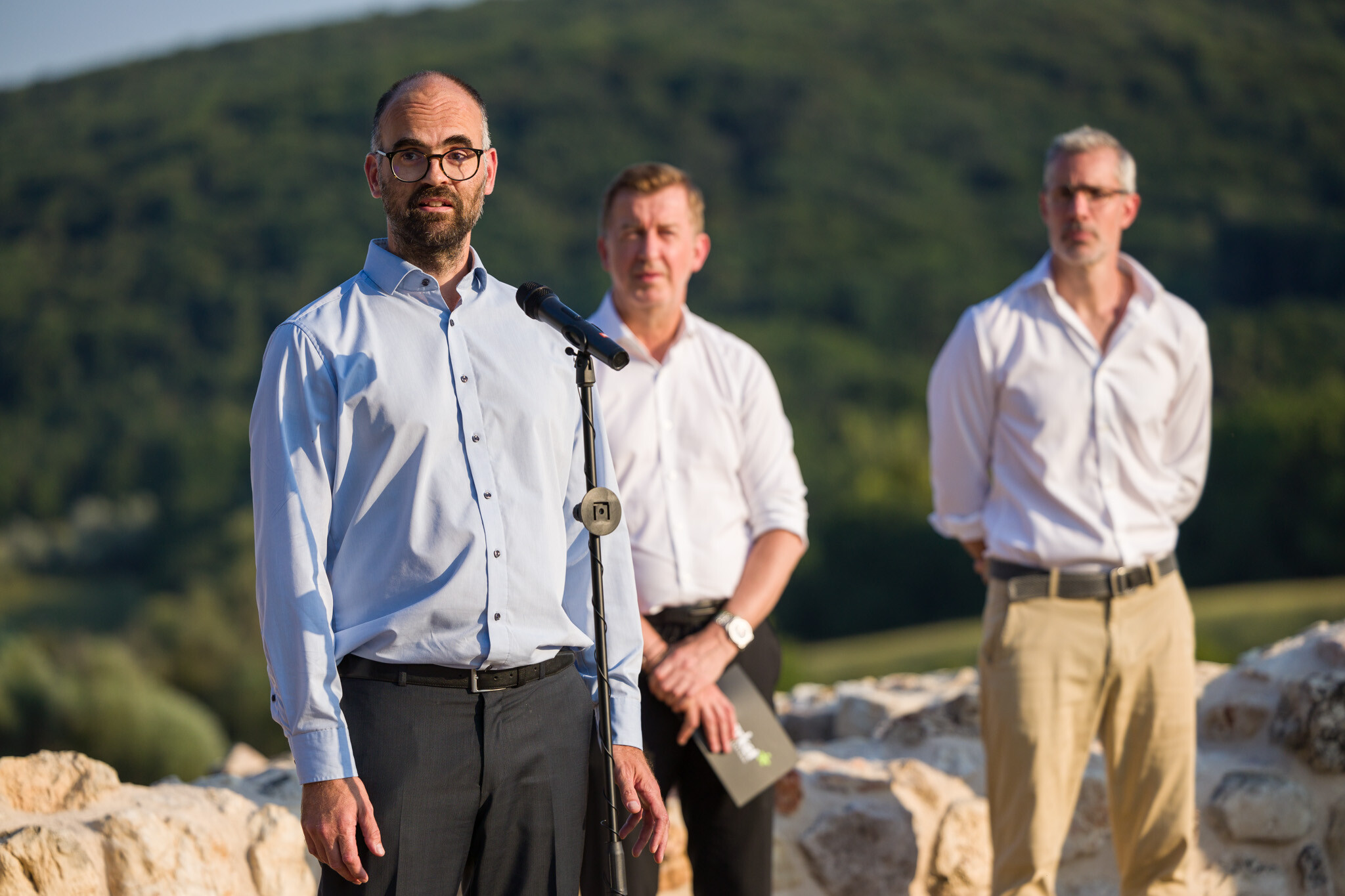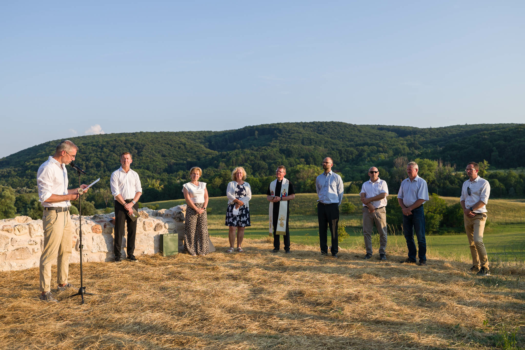 A Market Építő Zrt. vezérigazgatója köszöntetét fejezte ki a cég valamennyi munkatársának, a KÖZTI Tervező Irodának és a MAPEI-nek, amely szakértelmével és felajánlott építőanyaggal is segítette a munkálatokat, valamint Sármán Zoltán Györgynek, aki magántulajdonából ajánlotta fel a közösségnek a romtemplom területét.