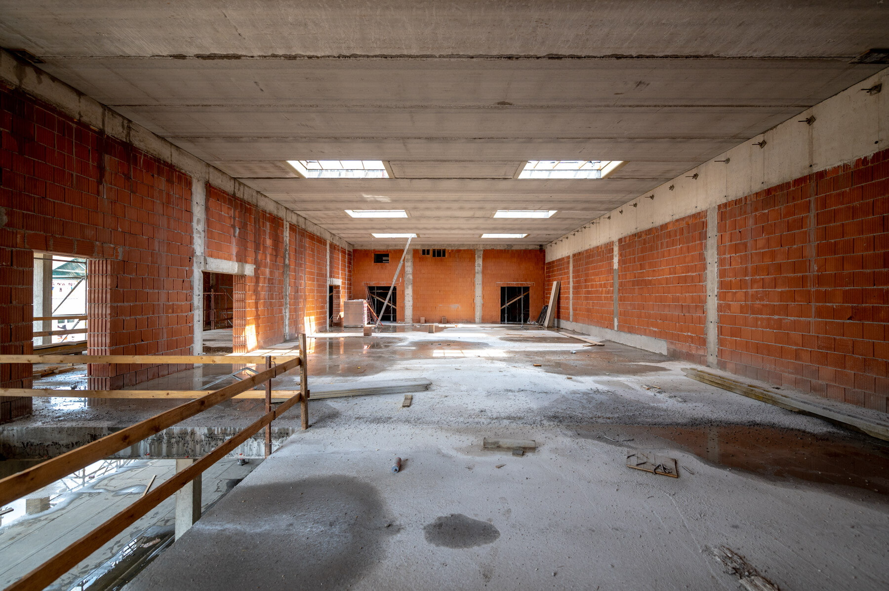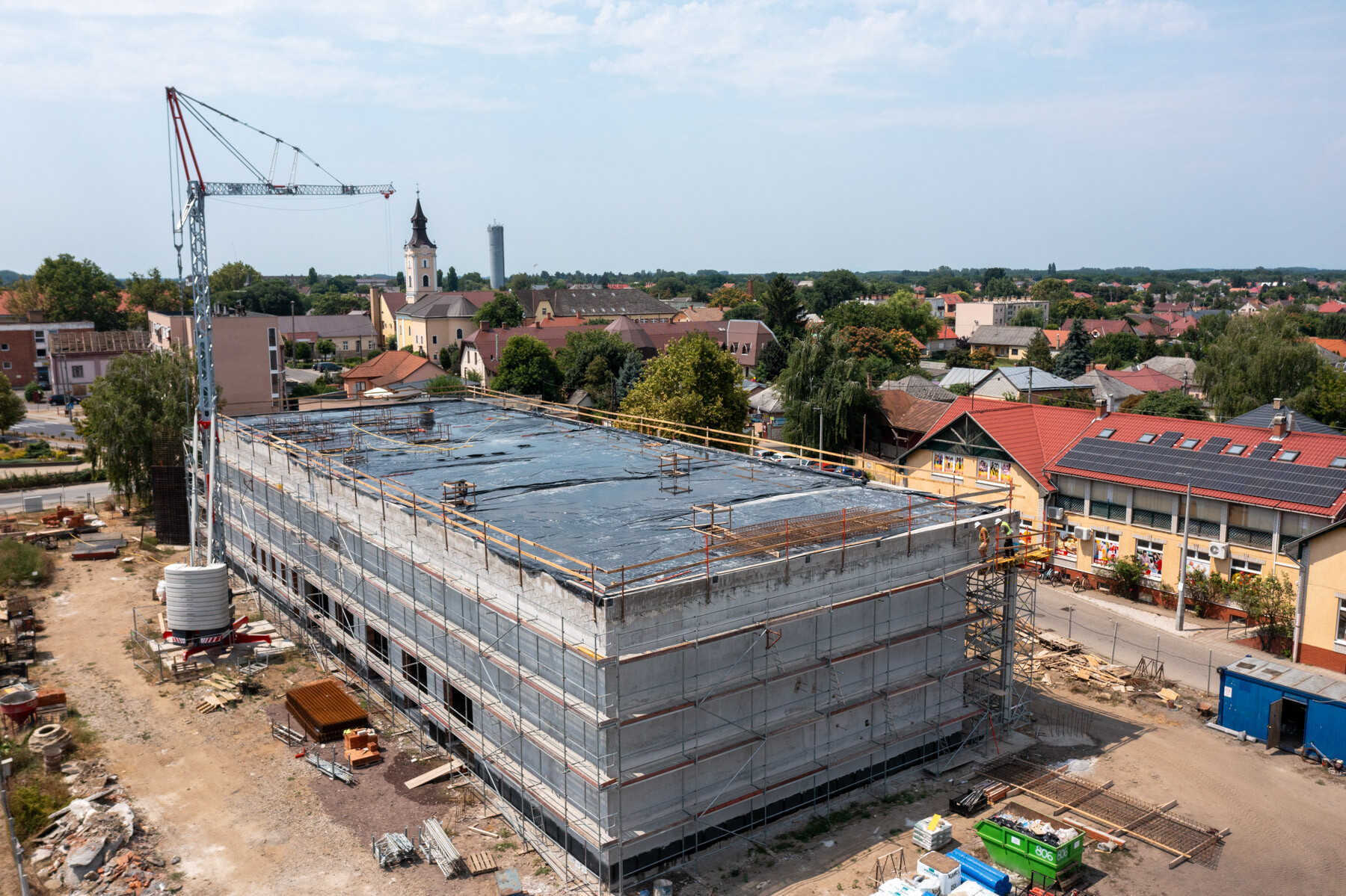 Jelenleg az épület acélszerkezeti munkái készülnek, majd a lapostető hő és vízszigetelése. Illetve ezzel párhuzamosan a belső szakipari munkák következnek.