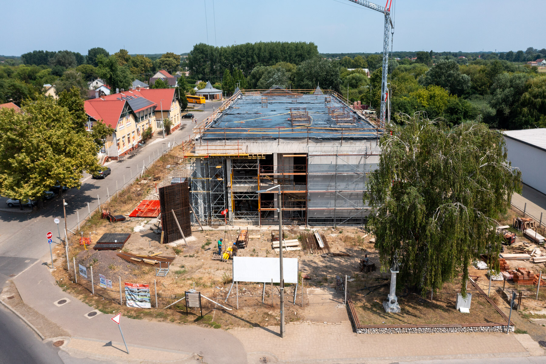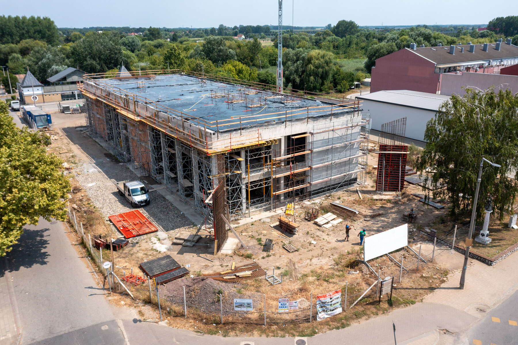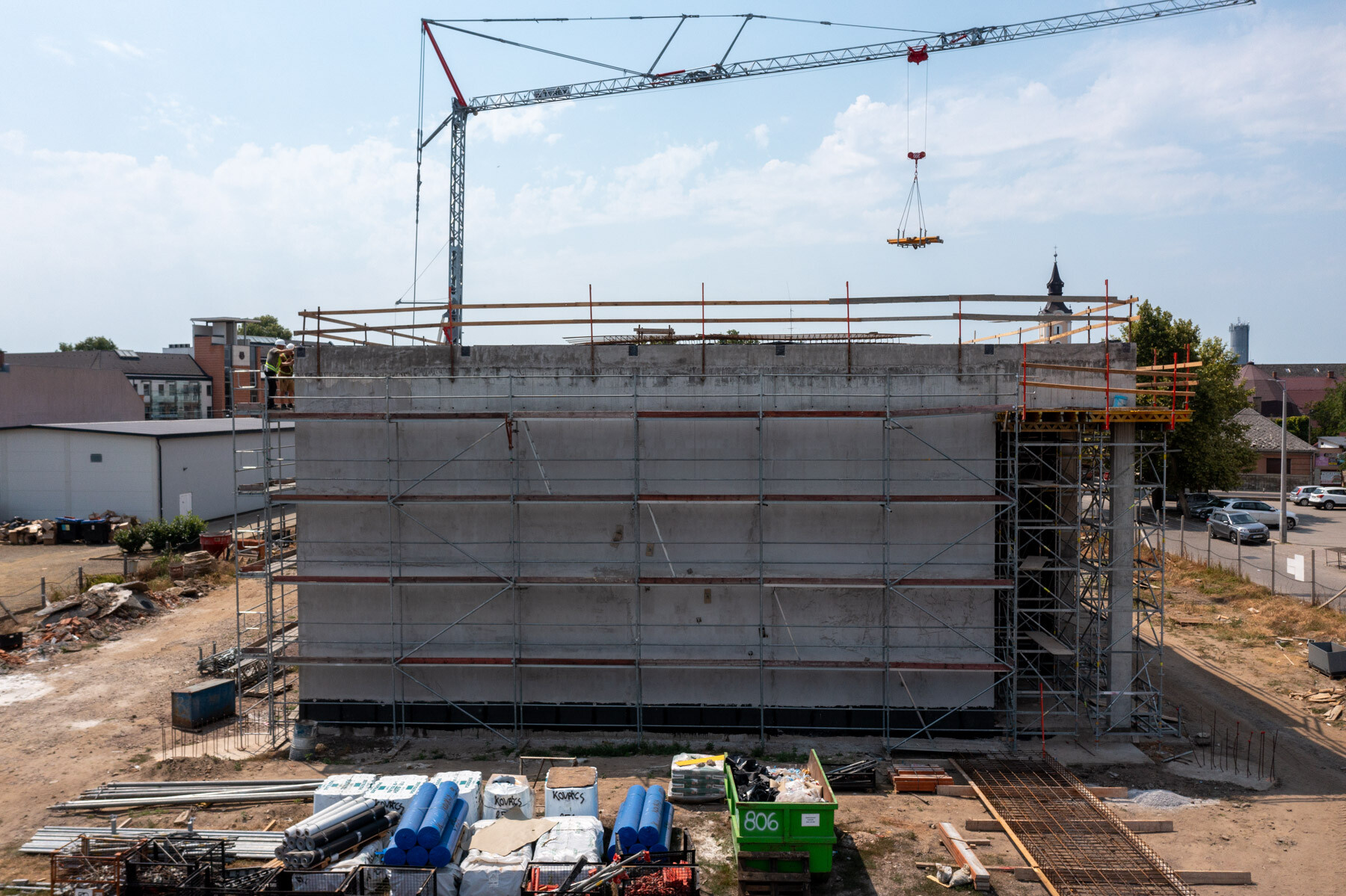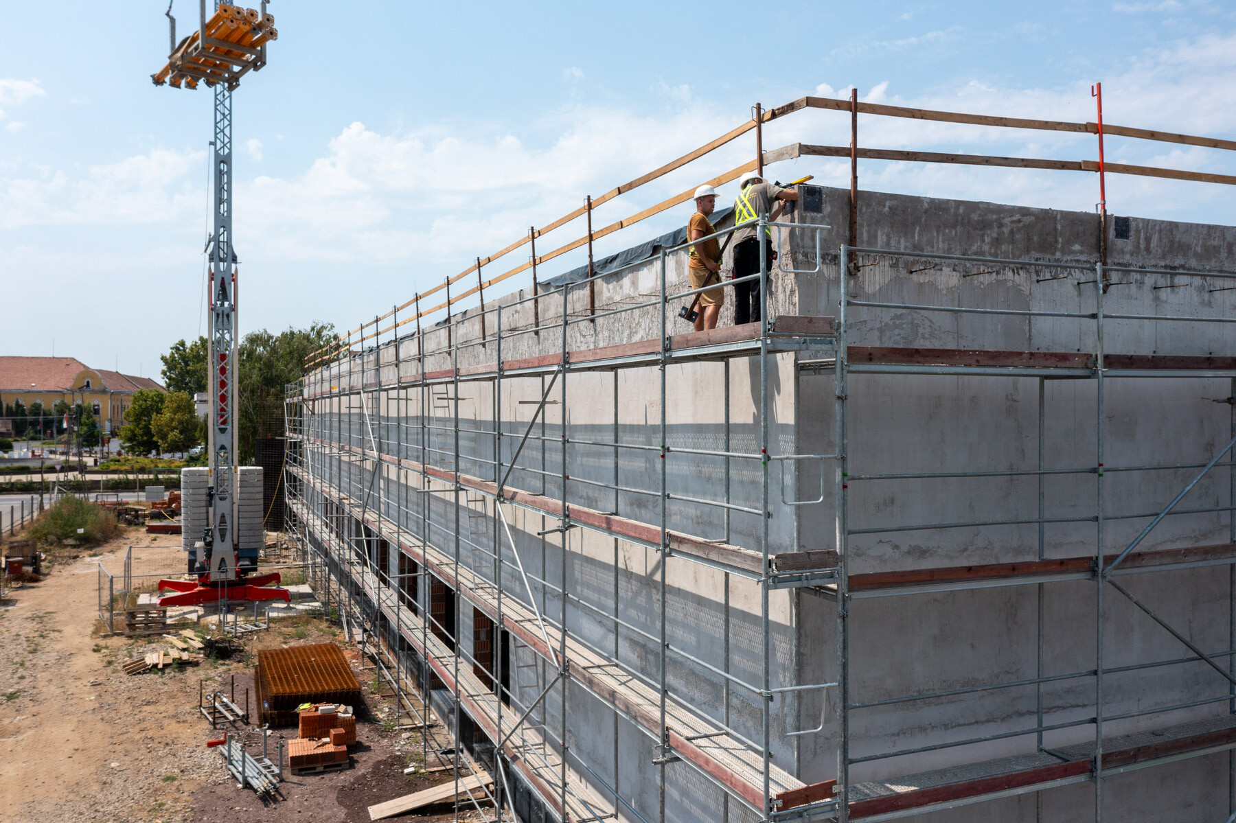 Az elmúlt időszak időjárási körülményei nehezítették, korlátozták a munkavégzést hiszen a hőségriadó több héten keresztül elhúzódott. Ebben az időszakban készült a zárófödém monolit vasbeton szerkezete, így