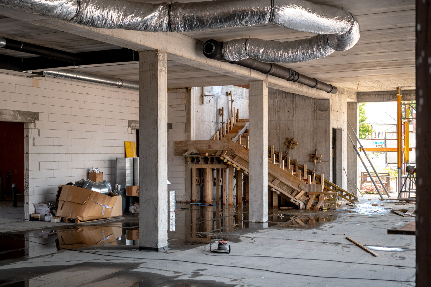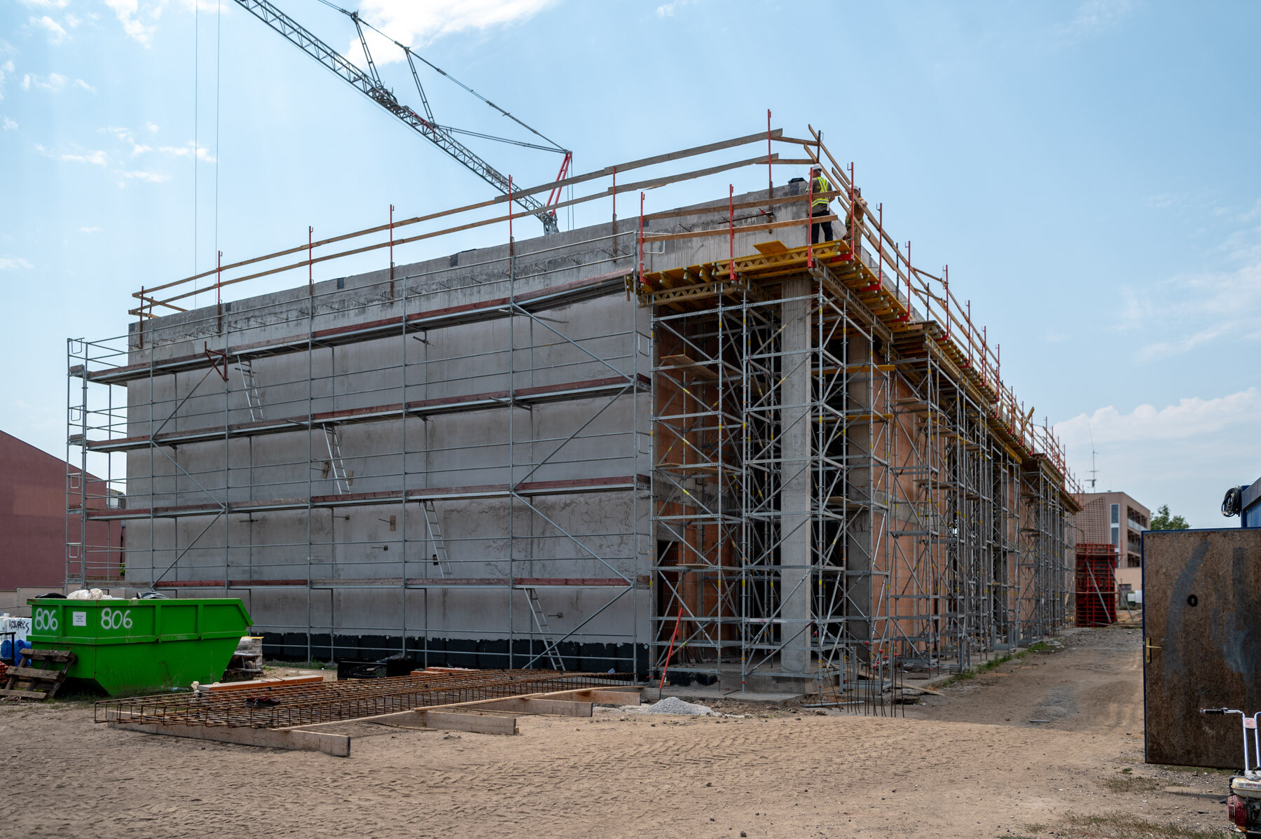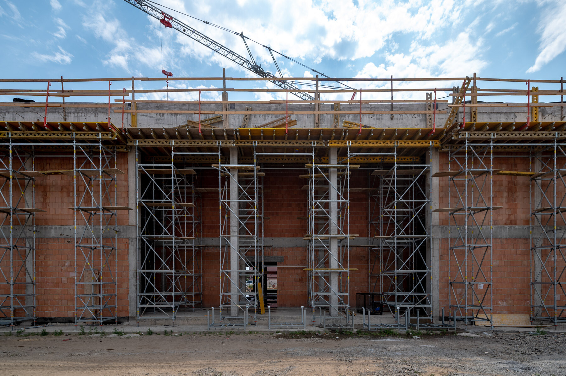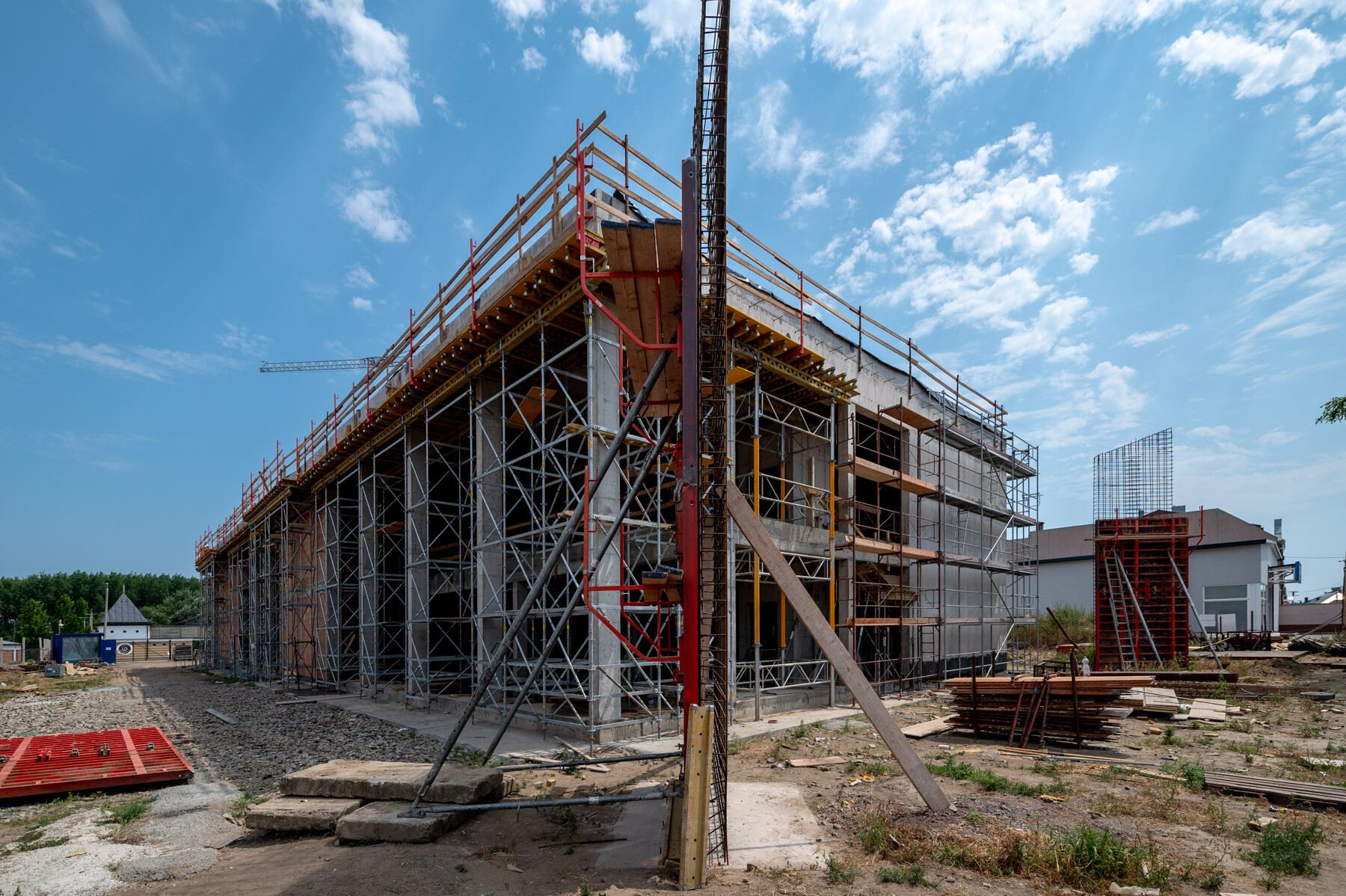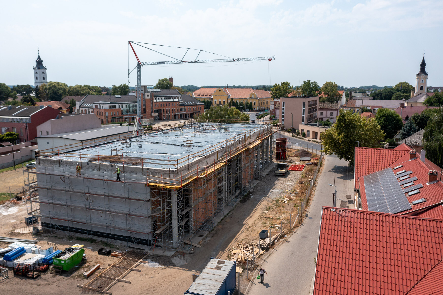 Az elmúlt időszak időjárási körülményei nehezítették, korlátozták a munkavégzést hiszen a hőségriadó több héten keresztül elhúzódott. Ebben az időszakban készült a zárófödém monolit vasbeton szerkezete, így