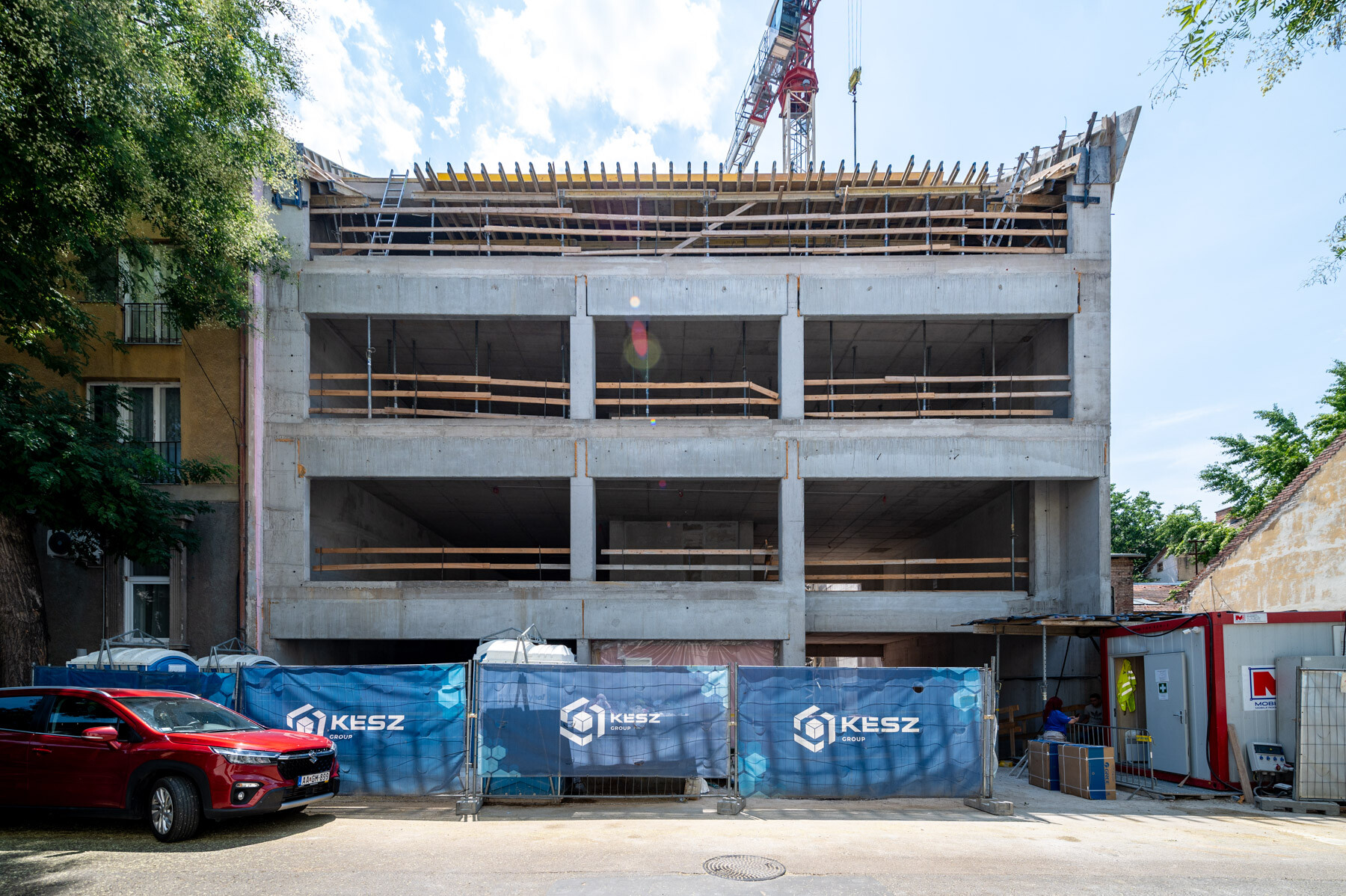 Szeged legmodernebb irodaháza júliusban elérte a legmagasabb pontját. Az új irodaépület a város történelmi értékeinek megőrzését és modern építészeti, valamint fenntarthatósági megoldások integrálását tűzte ki célul. A projekt a KÉSZ Csoport beruházásában, a társaság tagvállalatainak és stratégiai partnereinek közös munkája által valósul meg, az átadás 2025 második negyedévében várható.