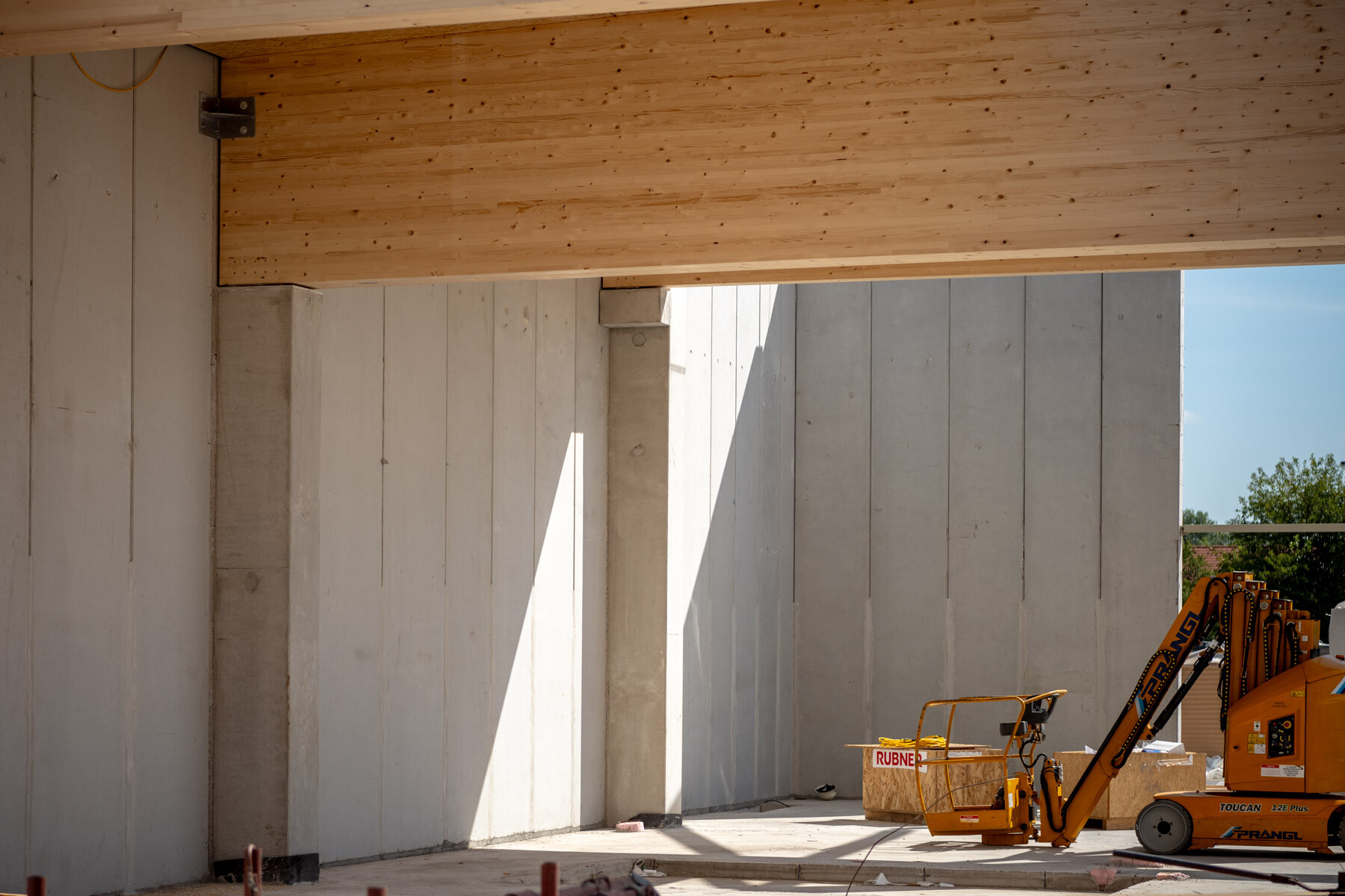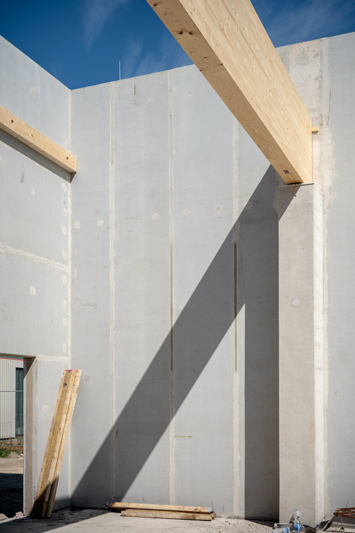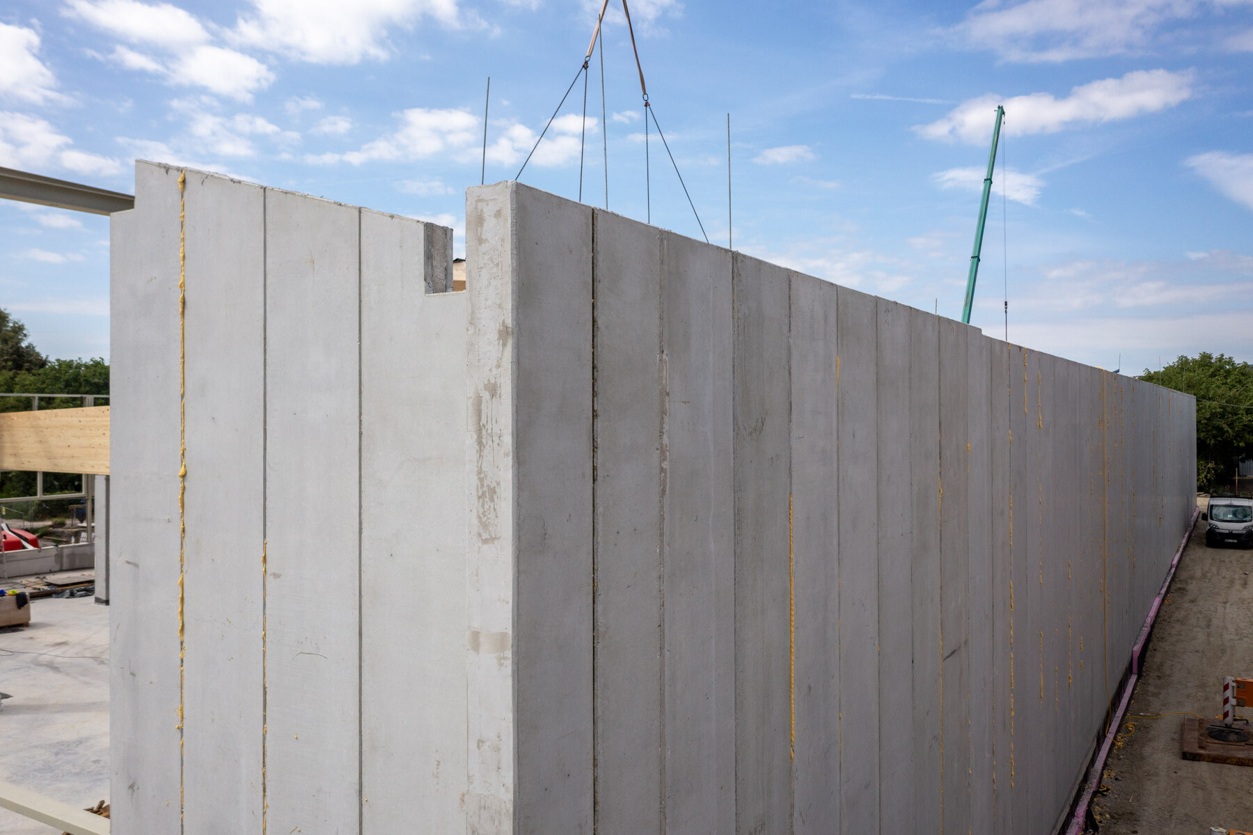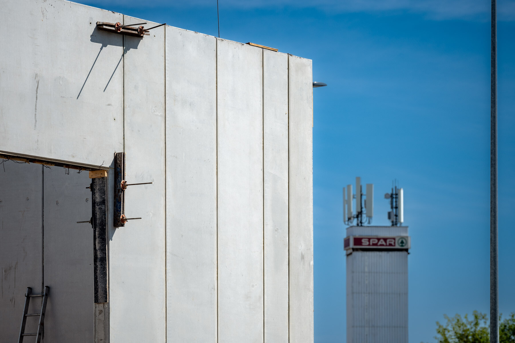 A projektnél a Leier előregyártott vasbeton kéregfal elemeit alkalmazták, amelyre a helyszíni kivitelezés időtakarékos megvalósítása és a felület minősége miatt esett a választás.