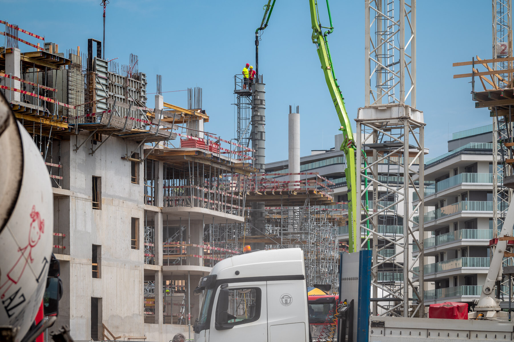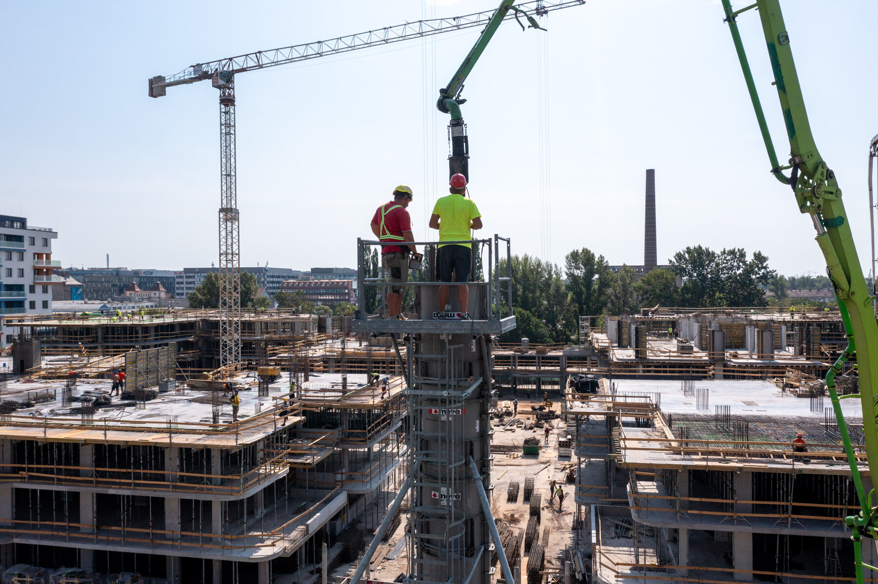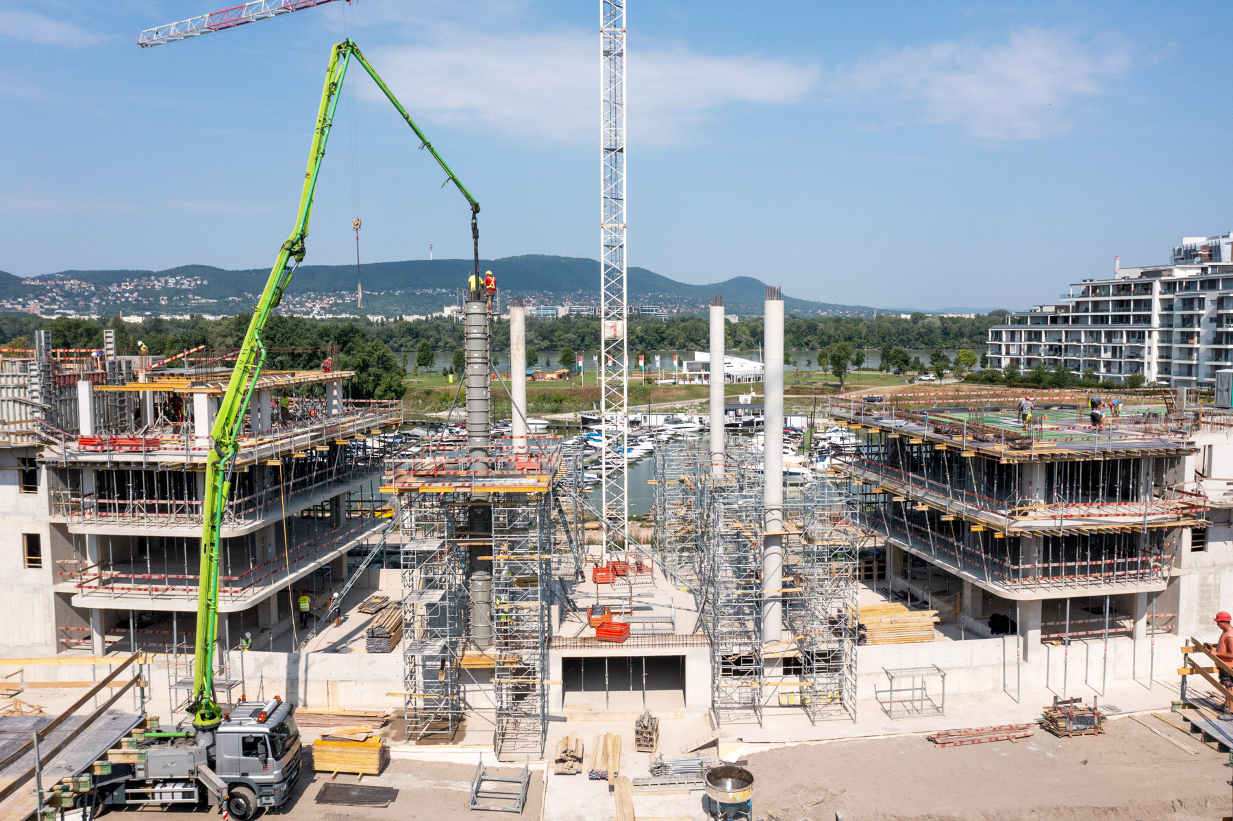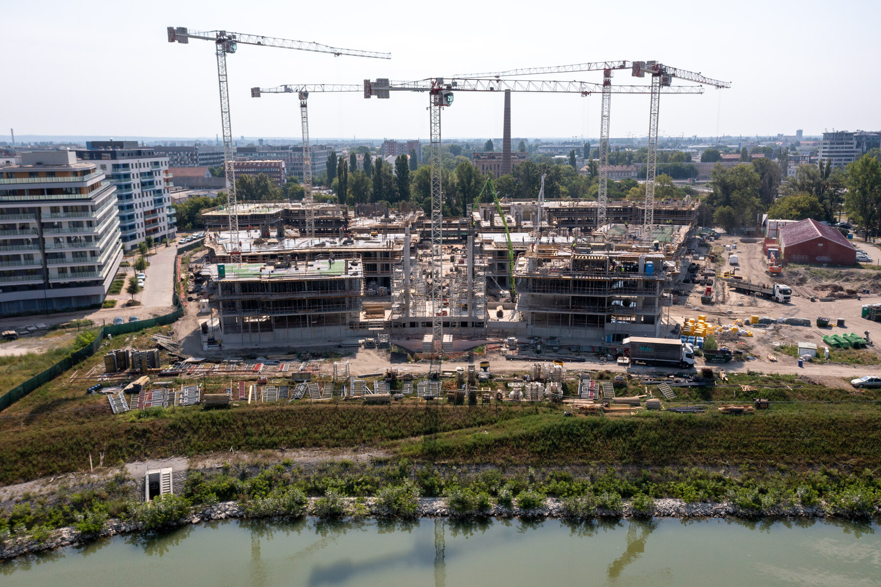 Nyolc lépcsőház került a pince, földszint és kilenc emelet magas épületekbe, amelyek szintterülete 74.500 m2, hasznos alapterülete pedig 37.200 m2. A kivitelező DVM januárban vette át a munkaterületet, átadása pedig 2026 júliusában várható. Négy hatalmas pillér is része az épületegyüttesnek