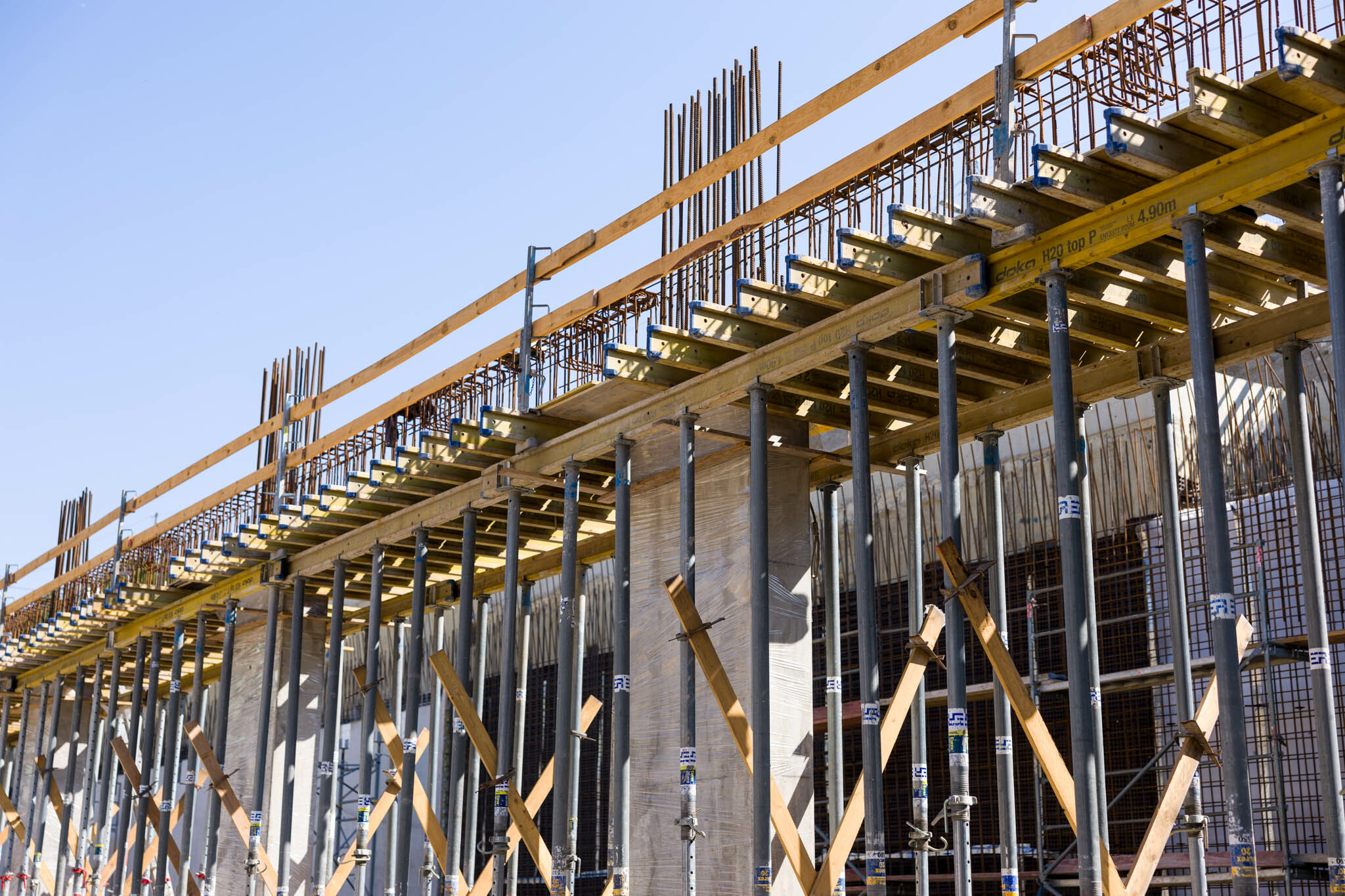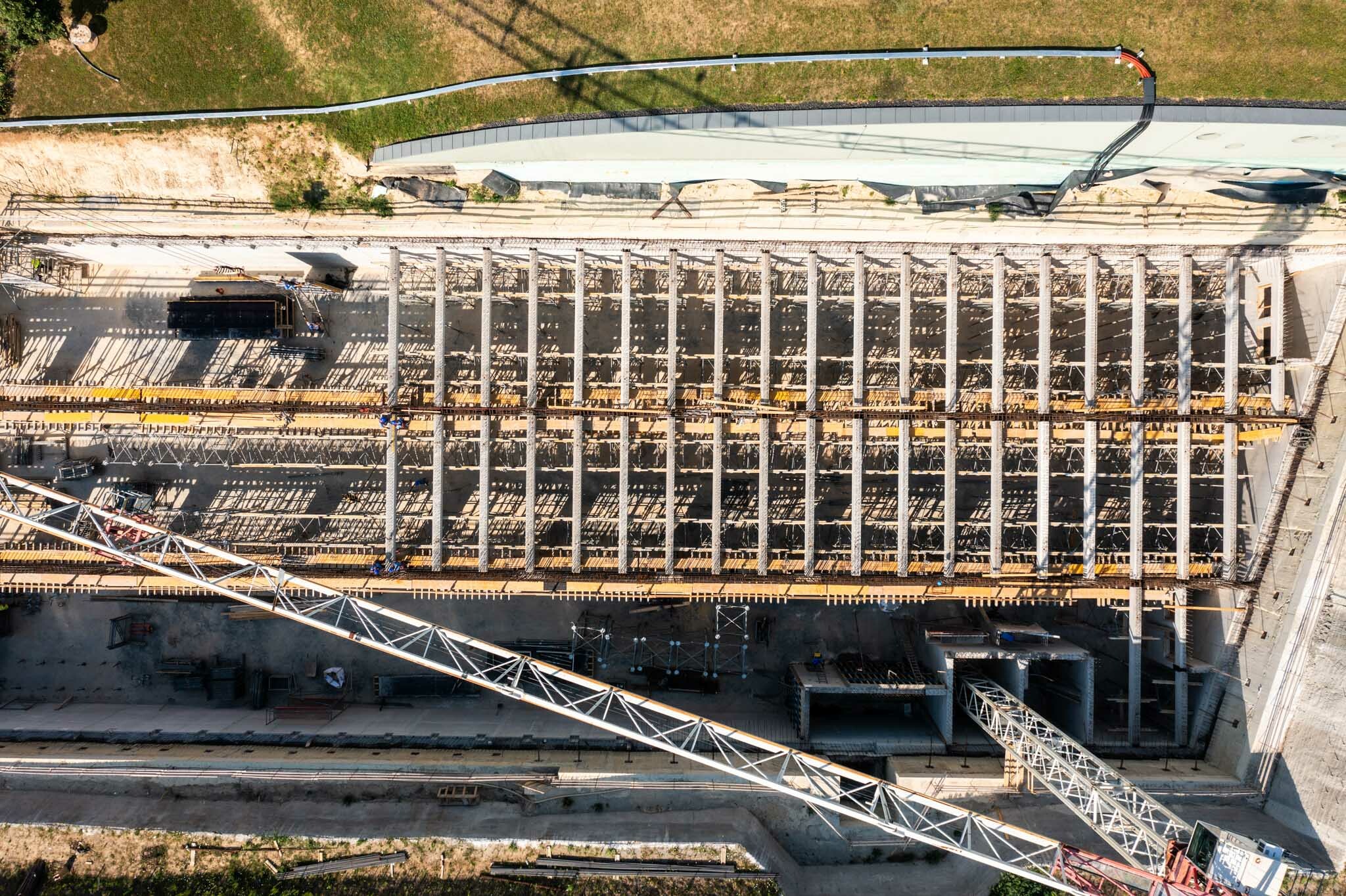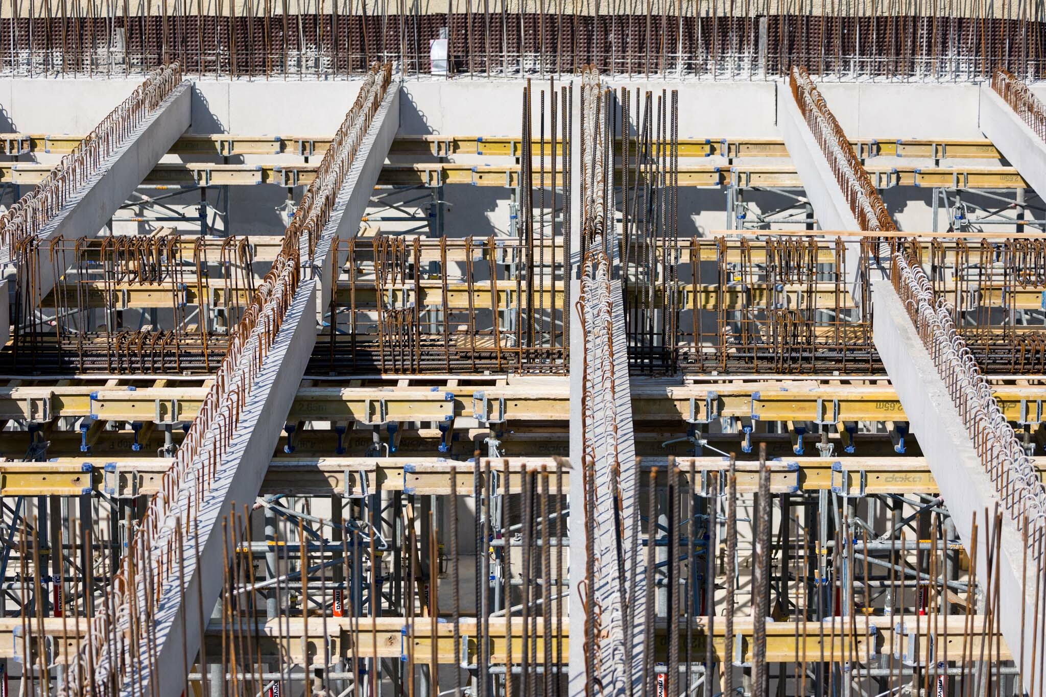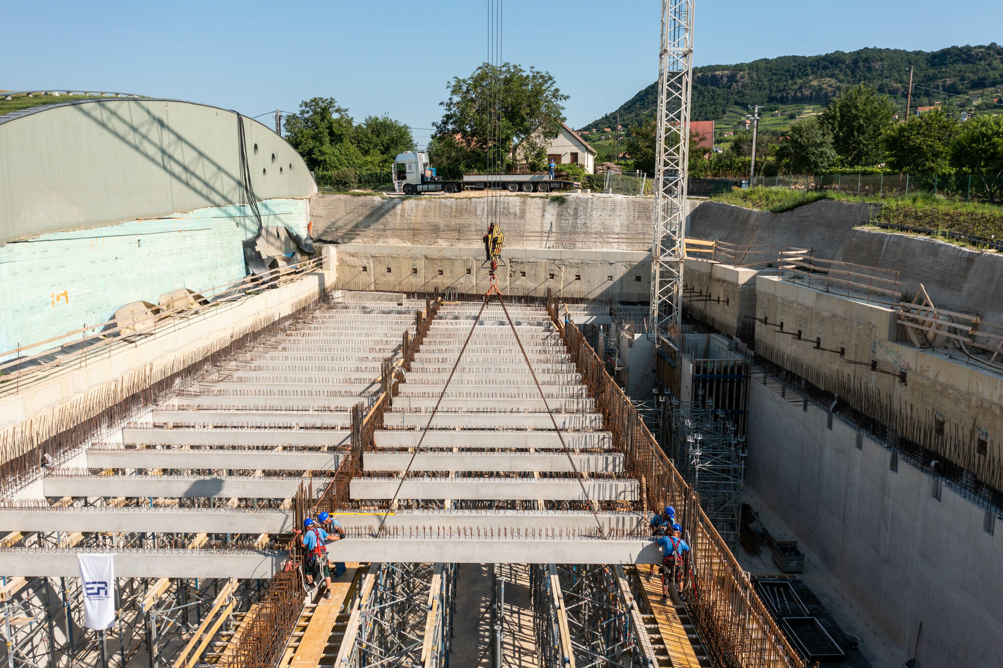 Az ÉPI már P2 szint feletti födém monolit főtartó gerendáinak zsaluzási és betonacél-szerelési munkáit végzi, amelyekhez szorosan kapcsolódik az előregyártott gerendák és a födémpanelek elhelyezése. Az előregyártott födémgerendák és a bélésfalak kapcsolata során különös figyelmet kellett fordítani a vízzáróságra, hiszen a pinceszinteken porszárazsági követelményeknek kell megfelelnie a kivitelezőknek.