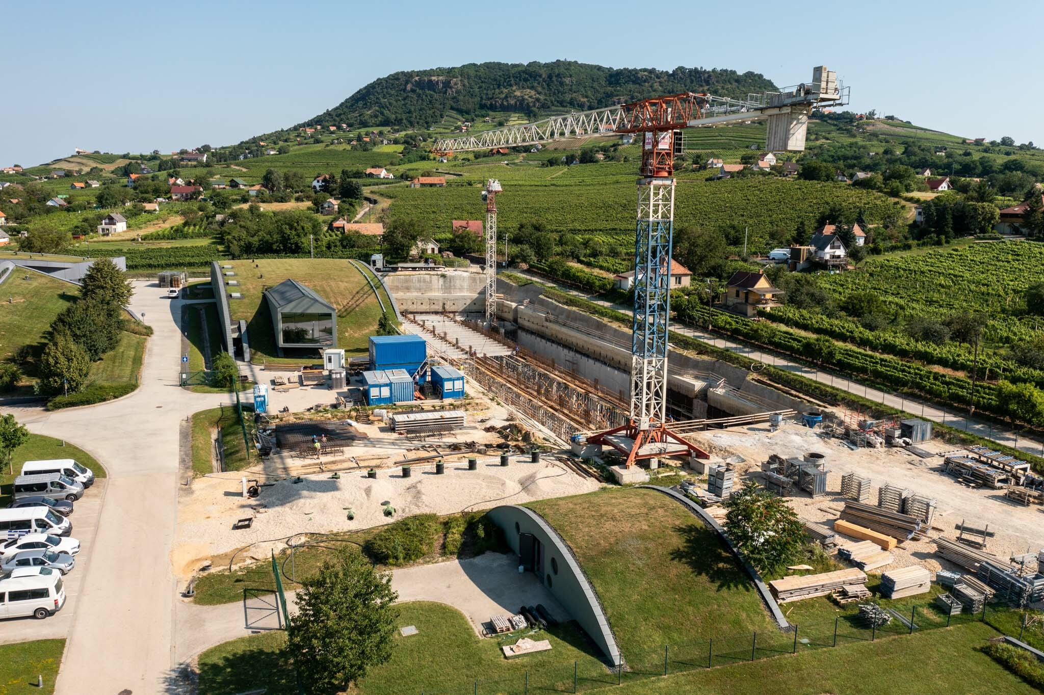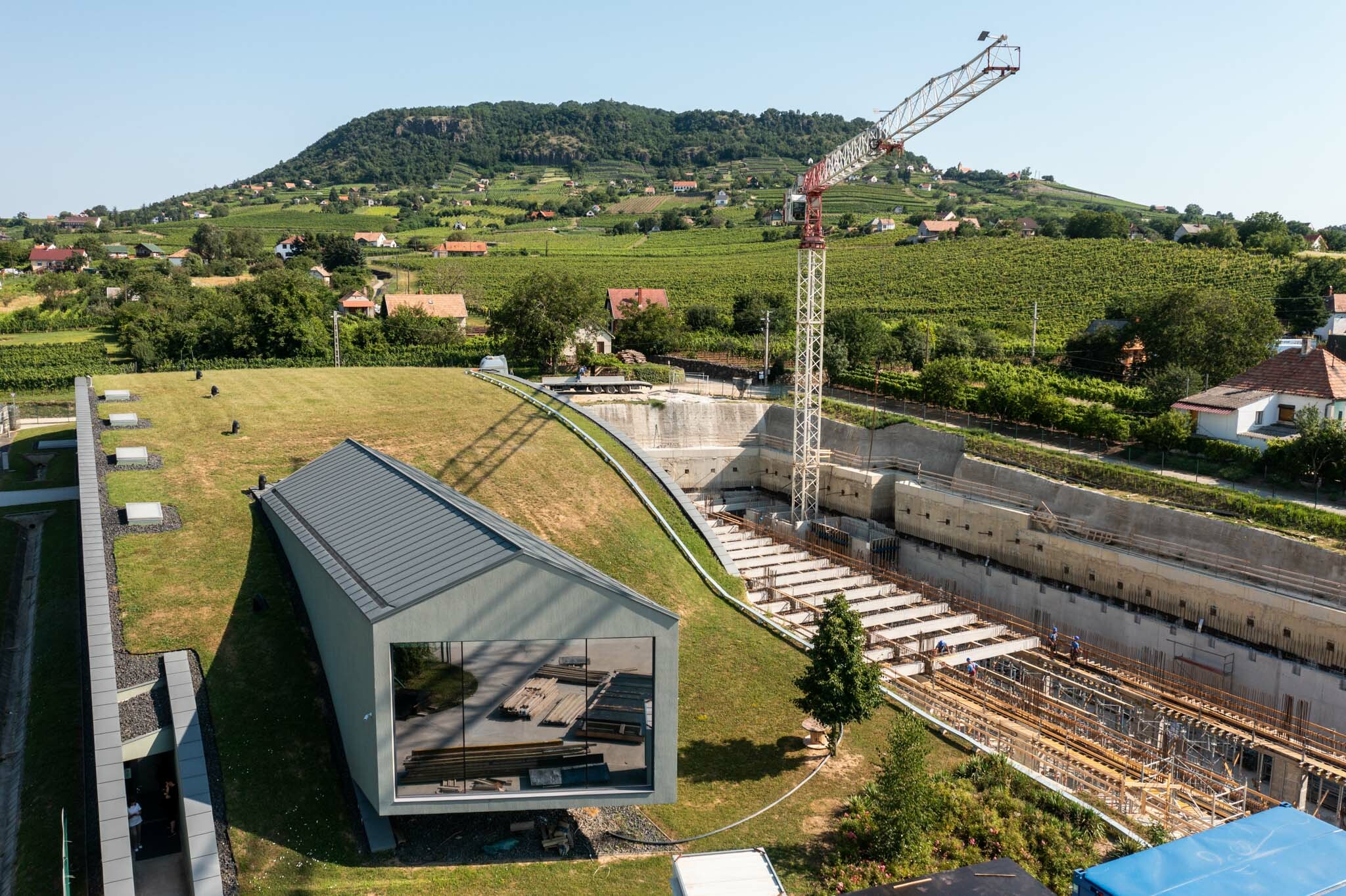 A Birtok új pezsgőérlelő üzeme a Rekontir Architects Tervező Kft. tervei alapján készül, melynek során egy mélyen a földbe süllyesztett, zöldtetős épület létrehozása a feladat. Badar Péter, az ÉPI létesítmény főmérnöke segített több részletet megismerni.