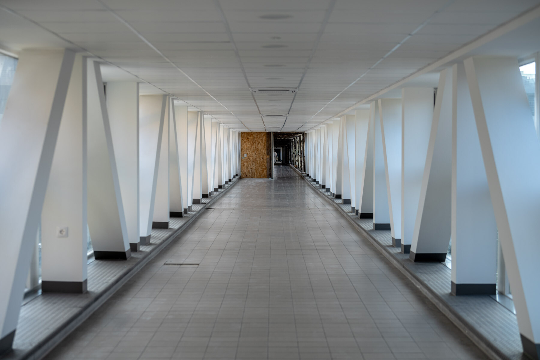 Az összekötő folyosó „Hotel” és „DT” épület közötti, valamint a „C” és „DT” épület közötti szakaszai is elkészültek, a külső állványbontás is megtörténhet szeptember elejére.