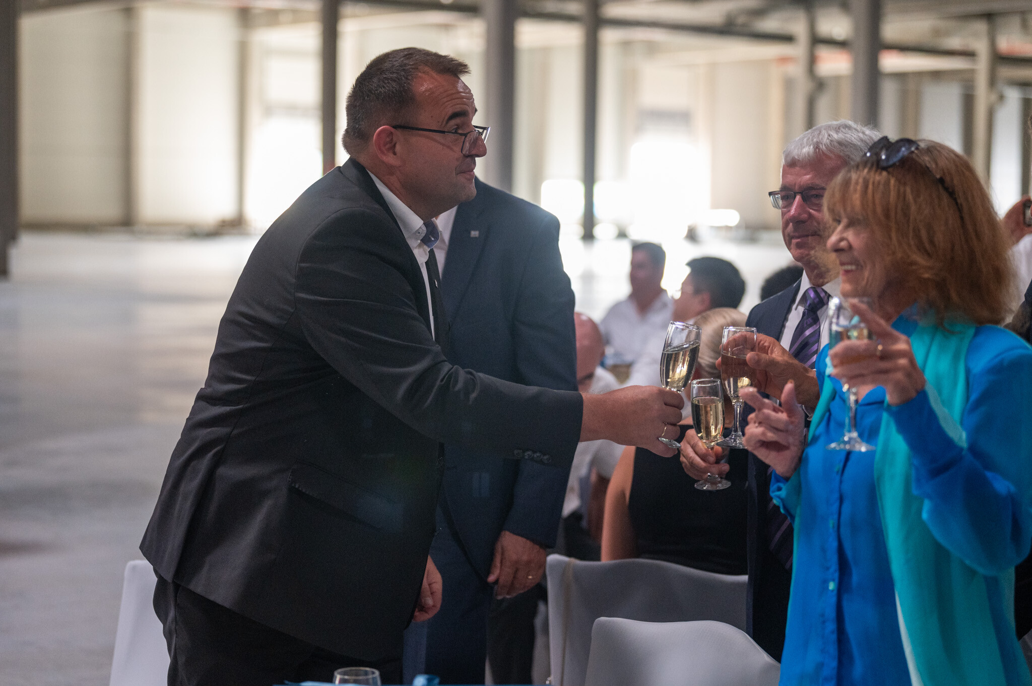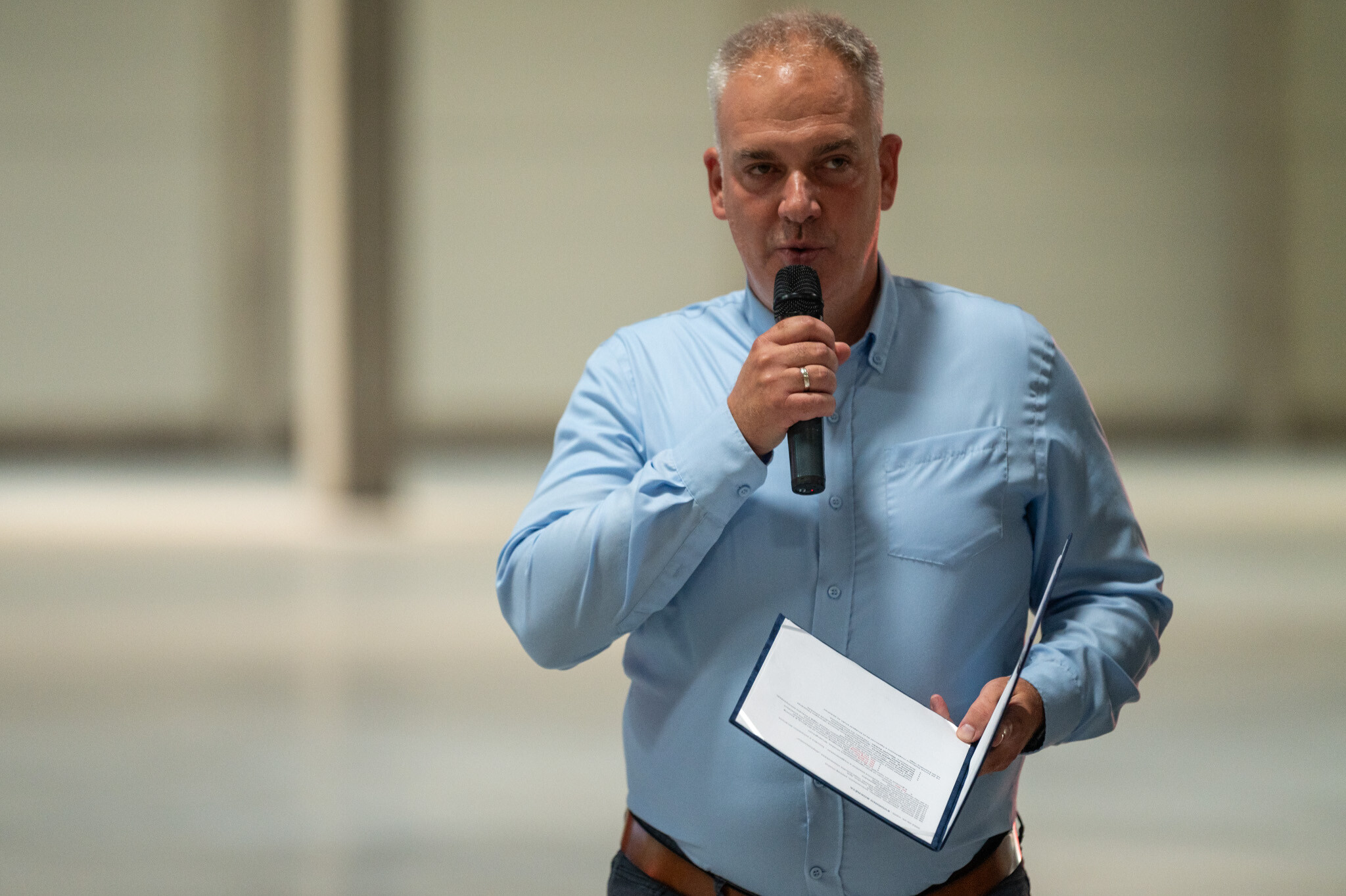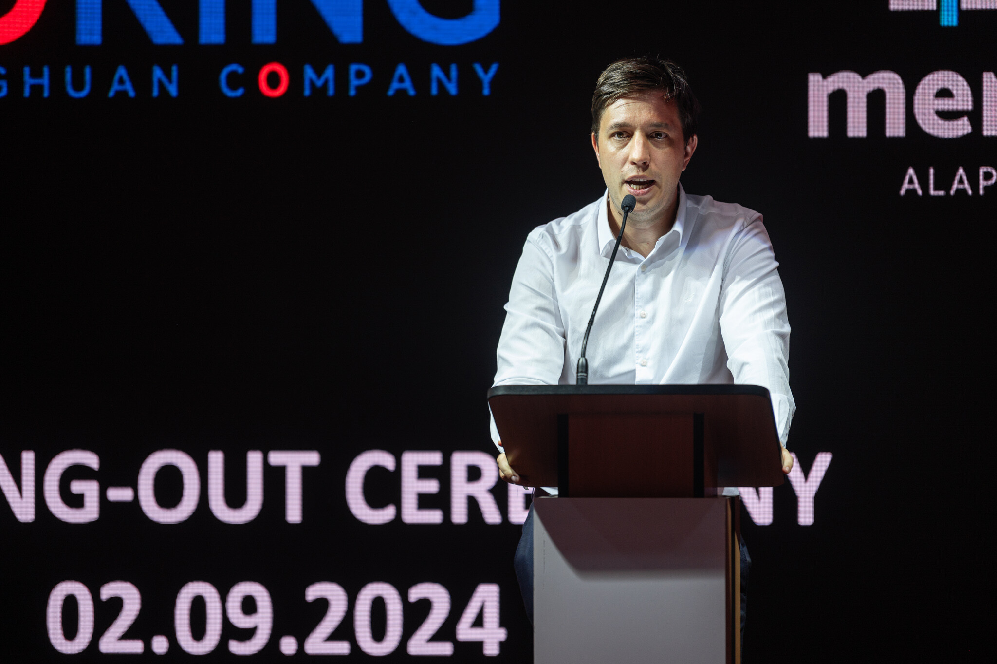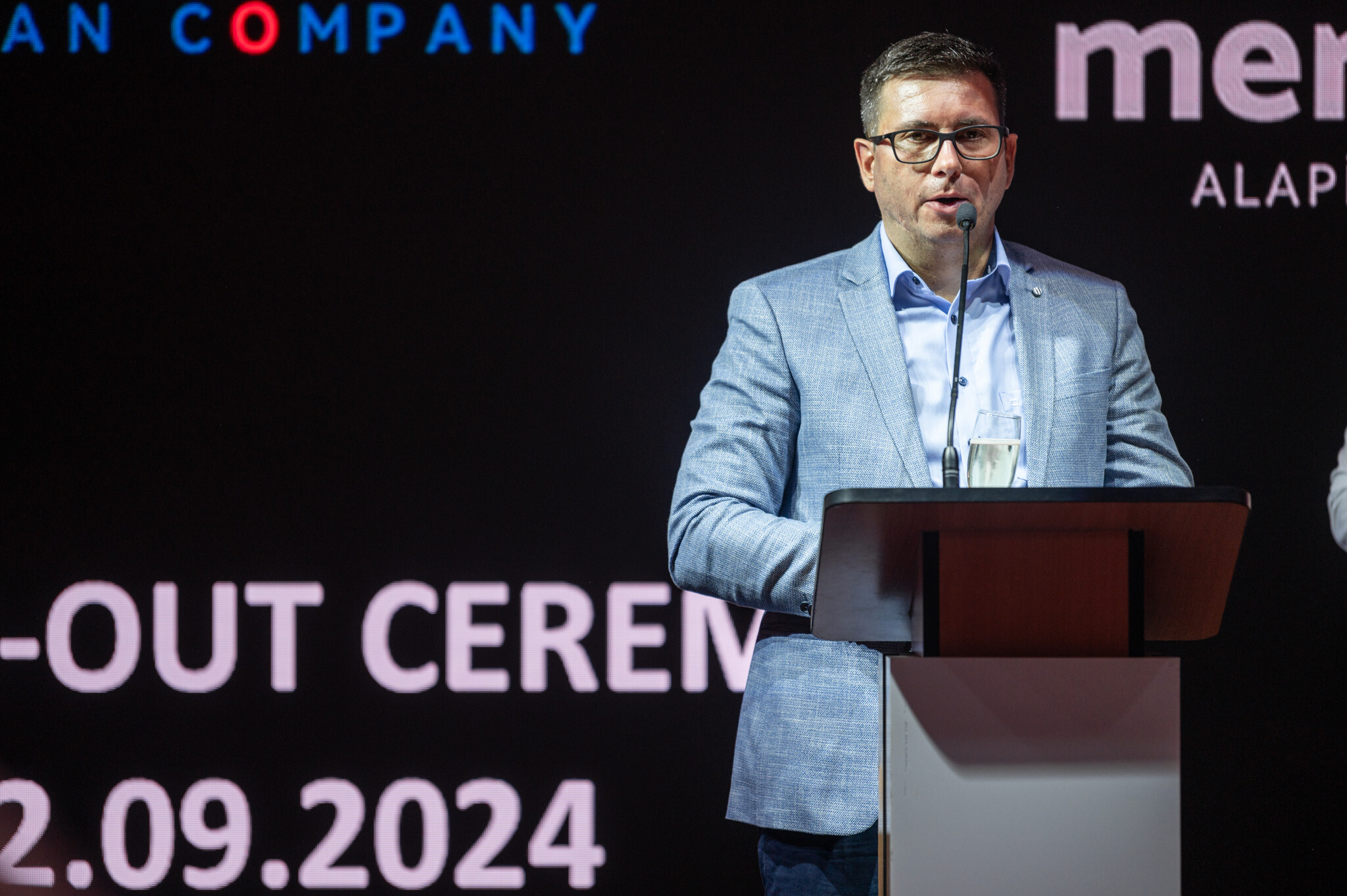 Petróczy Attila a MERKBAU Zrt. vállalkozási igazgatóhelyettese felszólalása elején emlékeztetett: a cég több mint 30 év alatt több száz épületet adott már át. „Ezek közül persze az a legkedvesebb mindig, amiben éppen állunk” – tette hozzá és kiemelte: