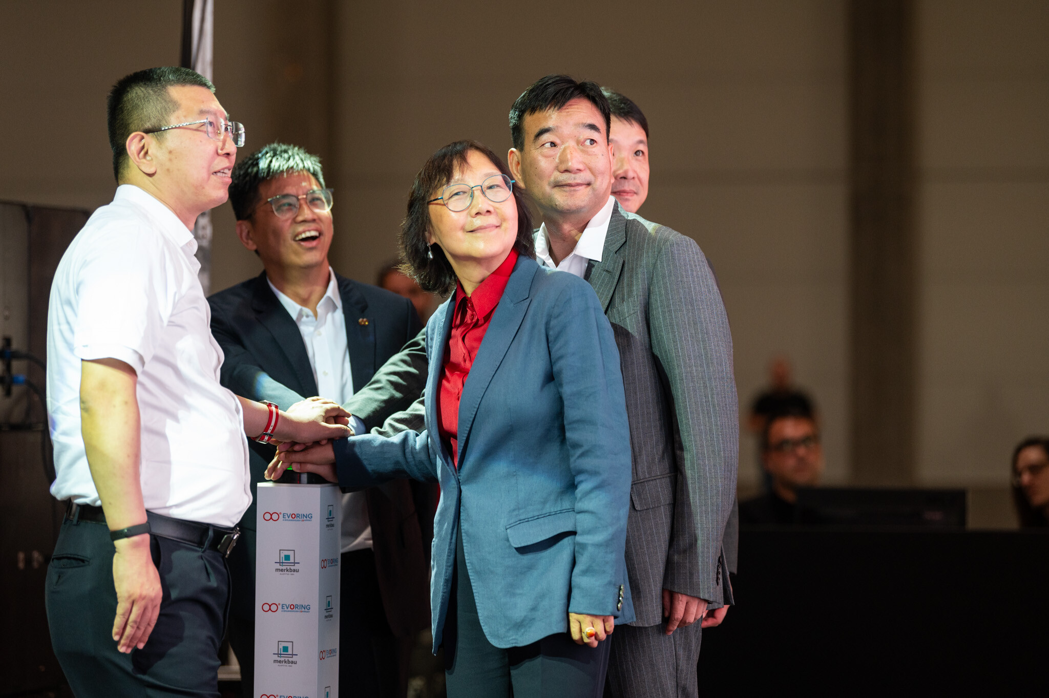 Most a kivitelezők évszázados hagyományt képviselő eseményét, a bokrétaünnepet tartották meg, illetve közös vendégséggel és beszédekkel tették még emlékezetesebbé a napot. Először az ünnep nevét adó bokrétát helyezték fel, mely azután került a helyére, hogy egy jelképes gombnyomással elindította az emelést Wu Changhong, a beruházó igazgatótanácsi elnöke, Min Zhang ügyvezető igazgató, Li Shuitu operatív igazgató, Jiang Yiqing tulajdonos és értékesítési alelnök, valamint Liu Xiaozhi vezető tanácsadó.
