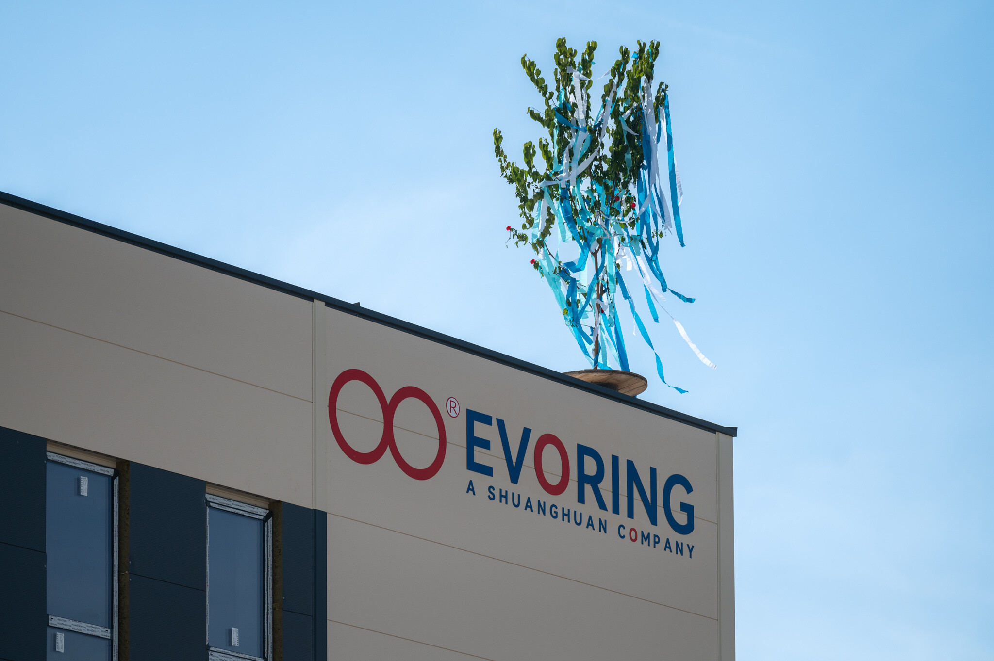Tavaly november 17-én tették le a kínai Shuanghuan Driveline csoporthoz tartozó Evoring Precision Manufacturing Kft. új gyártóközpontjának alapkövét, majd az idei év márciusában át is adták a munkaterületet. Az azóta eltelt időszakban a generálkivitelező MERKBAU Zrt. munkájával elérte szerkezetkész állapotát a 10 hektáron épülő 24 ezer négyzetméteres központ, melynek legmagasabb pontjára fel is helyezték a bokrétát szeptember 2-án.