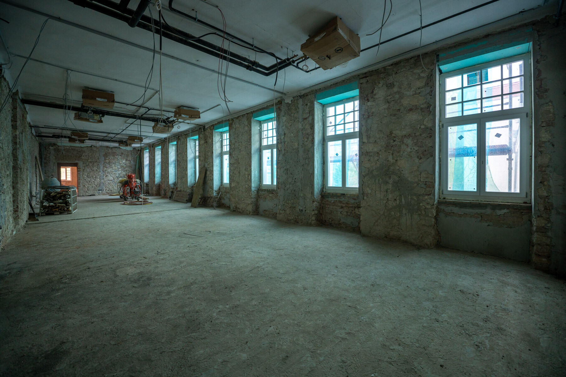 Az épület belső tereiben a vakolási munkákat és a gipszkarton válaszfalak zárását, gipszkarton álmennyezetek készítését, valamint az ehhez kapcsolódó gépészeti, erős- és gyengeáramú szerelési munkák elvégzését tűzte ki célul a kivitelező, amelynek elkészültével igazán látványos szakaszába léphet a felújítás.
