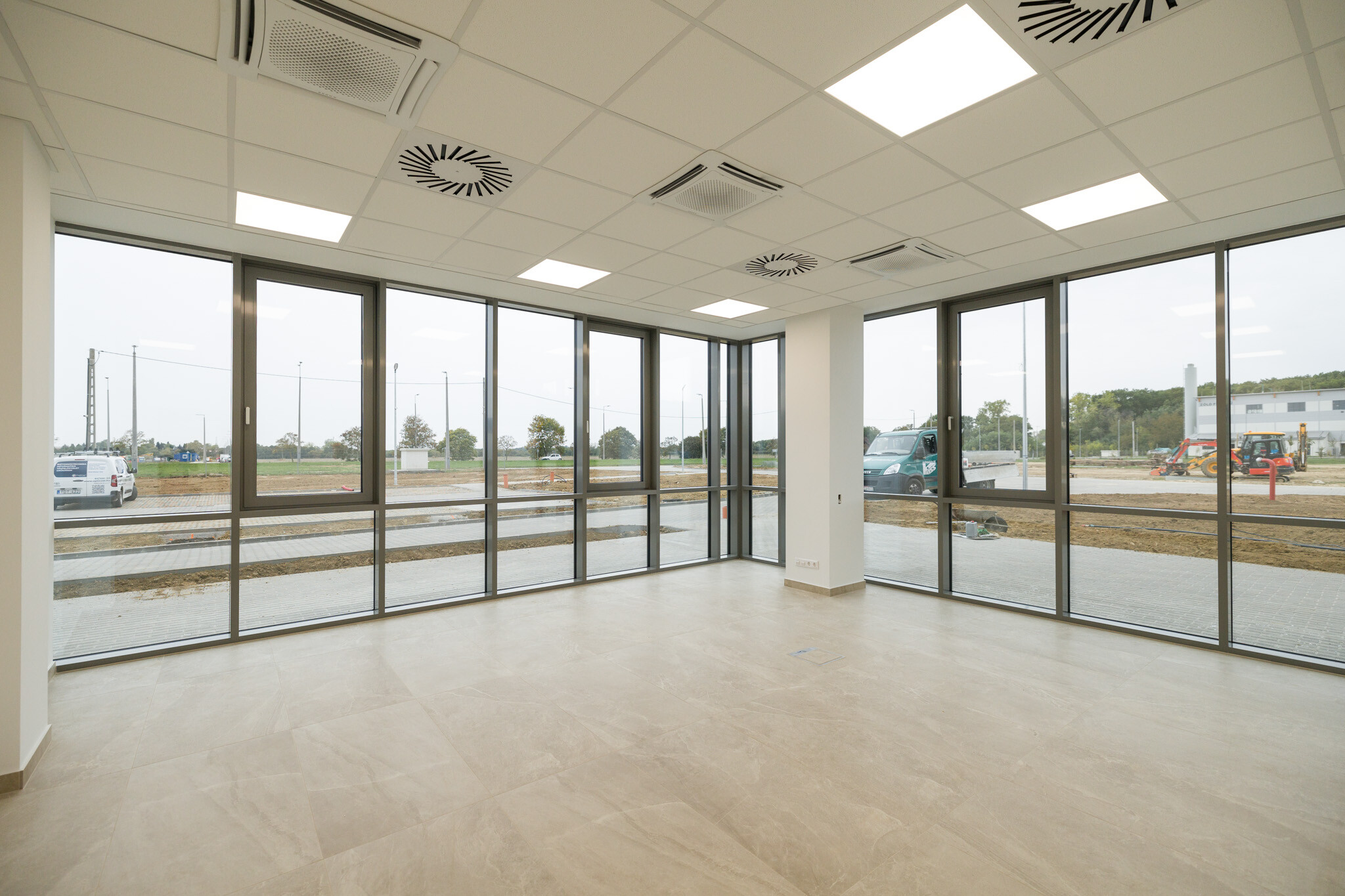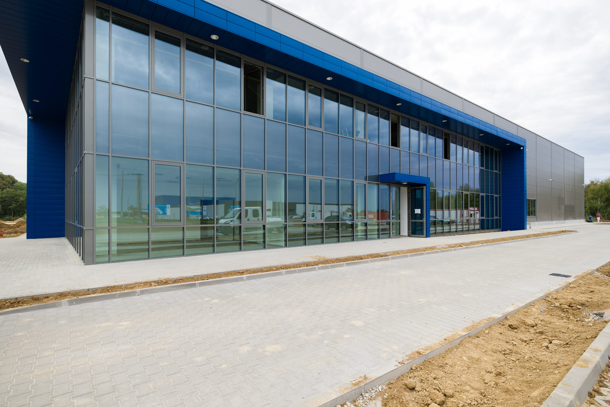 A cég több száz csarnoképület kivitelezését valósította meg fennállása 30 éve alatt. Nem kérdés tehát, hogy itt is a legmegfelelőbb technológiákat alkalmazták. A homlokzatot 10 cm vastag IPN hőszigetelésű szendvicspanellel burkolták le, a kitöltő falazat Porotherm 25NF csiszolt falazóelemmel készült, a belső válaszfalak és a csarnokban levő füstkötény falak gipszkarton szerkezetűek. A homlokzaton az acél tartószerkezetre sávos fémlemez burkolat került.
