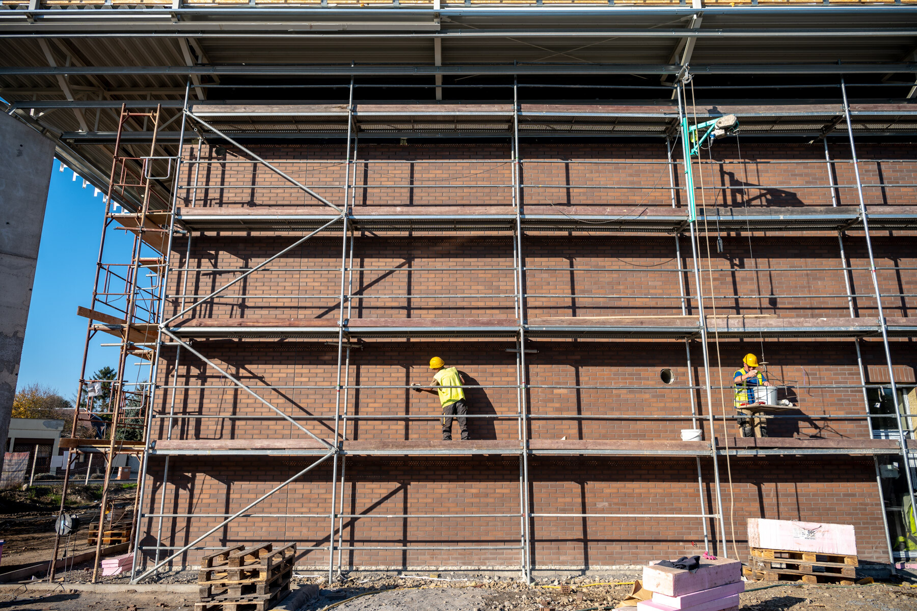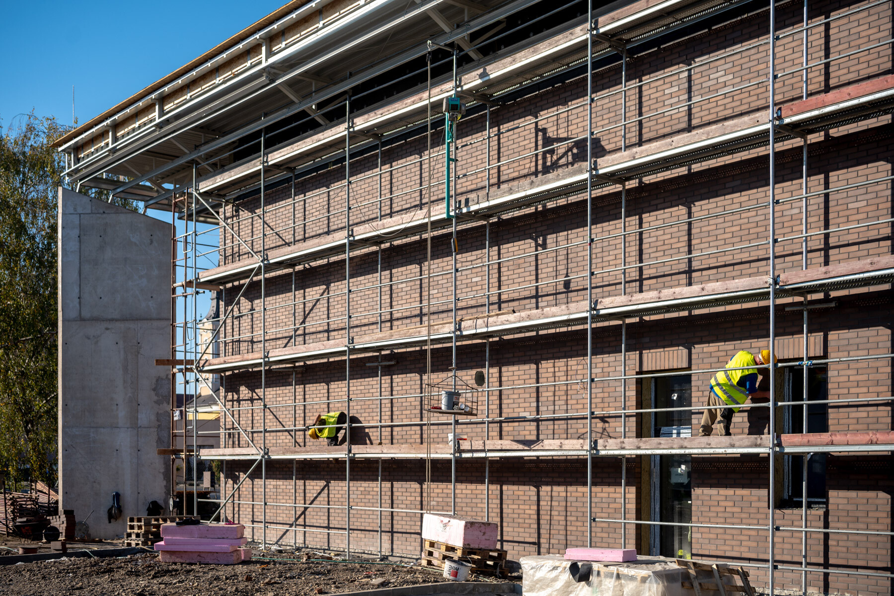 Homlokzatburkolatokat helyez fel a KE-VÍZ a Kállai Kettős Rendezvény- és Konferenciaközpont épületére, így végre megismerhetjük végleges arcát.