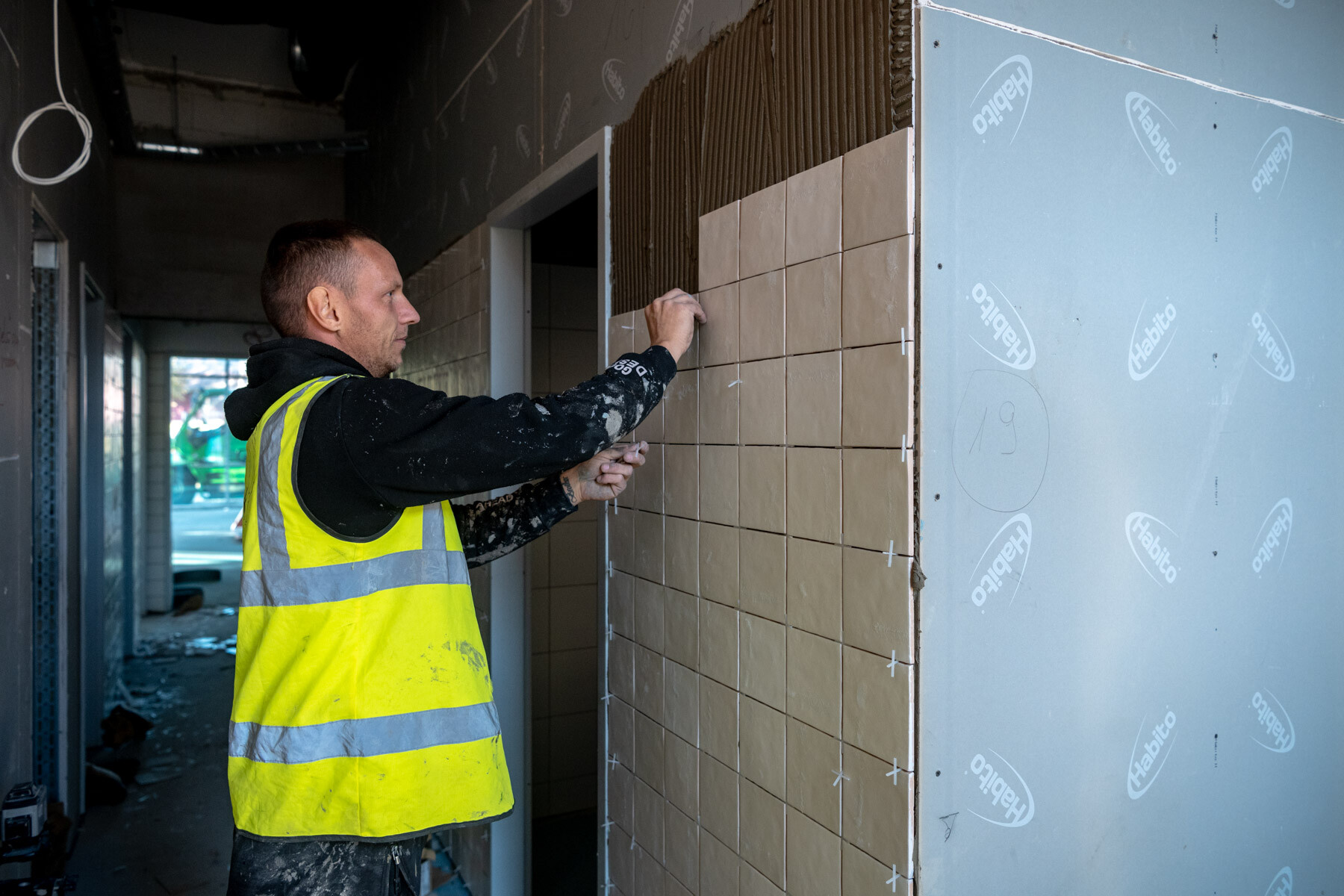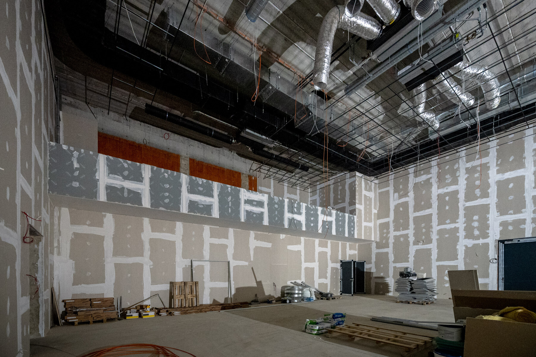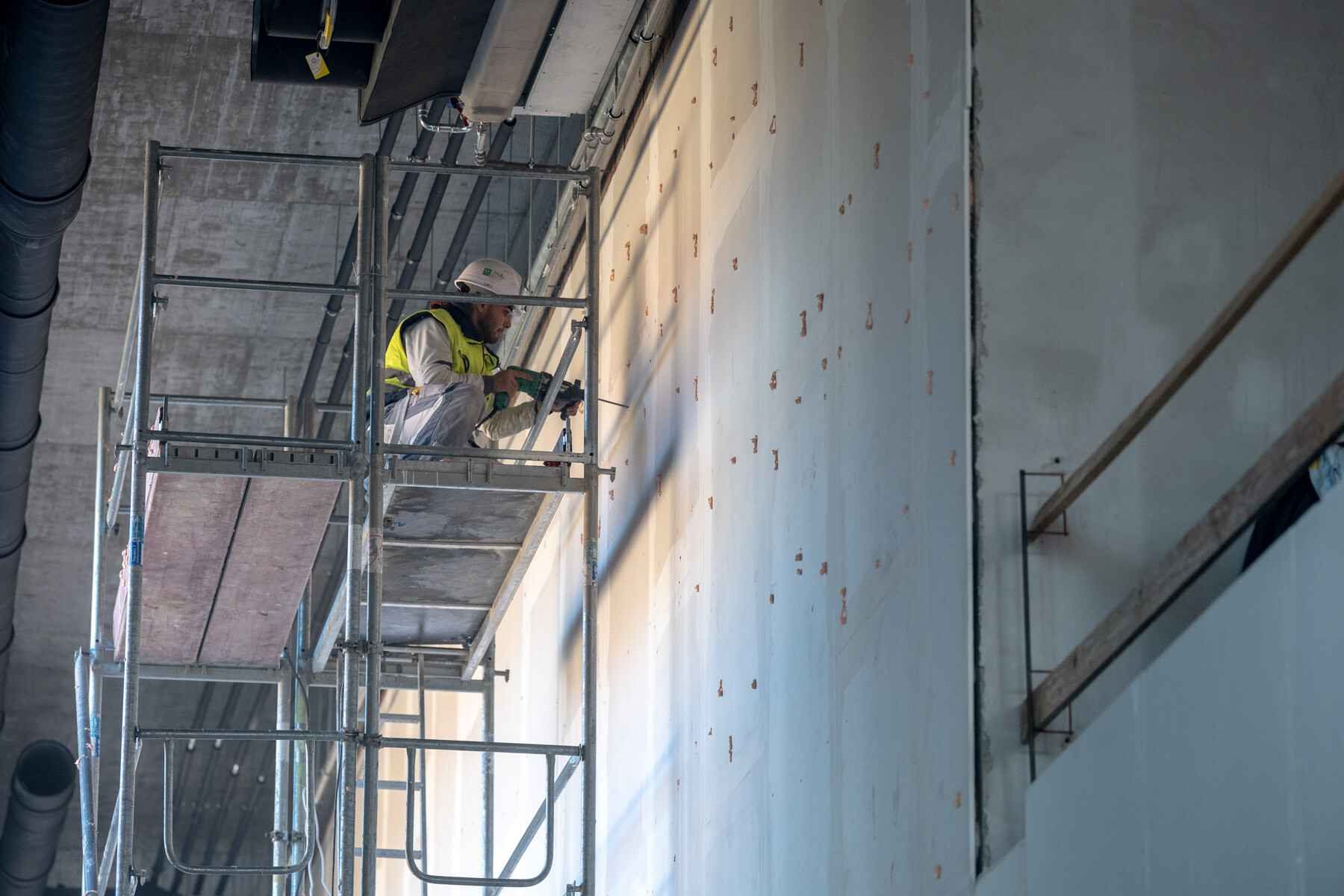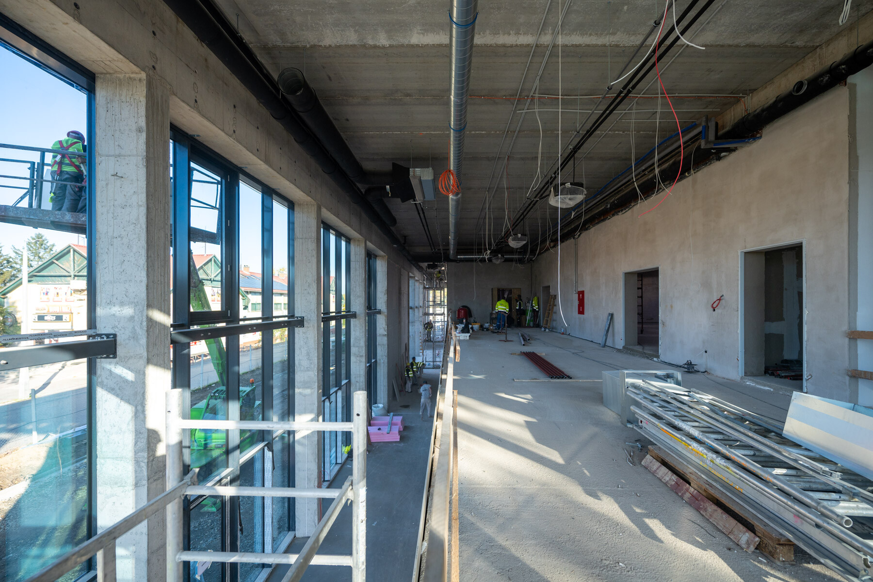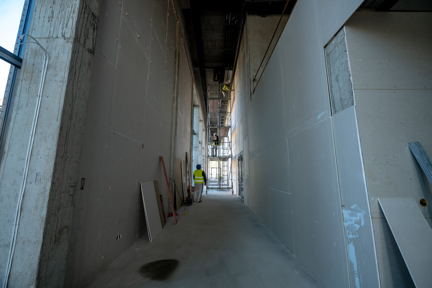 Belső tereiben is elkészültek a gépészeti és elektromos alapszerlések, válaszfalak, vakolatok és aljzatbeton, így a következő szakaszába fordulhatott a kivitelezés: már telepítik a belső hidegburkolatokat, az álmenyezeteket; zajlanak a belső szakipari munkák.