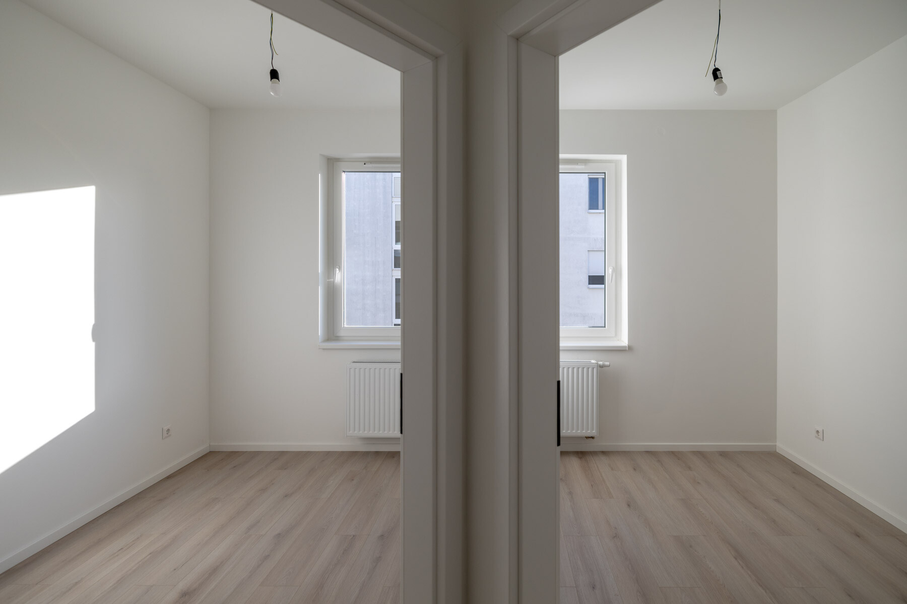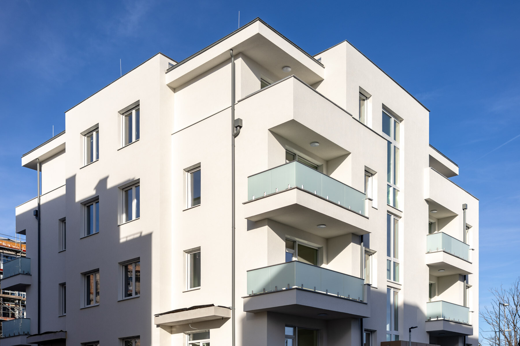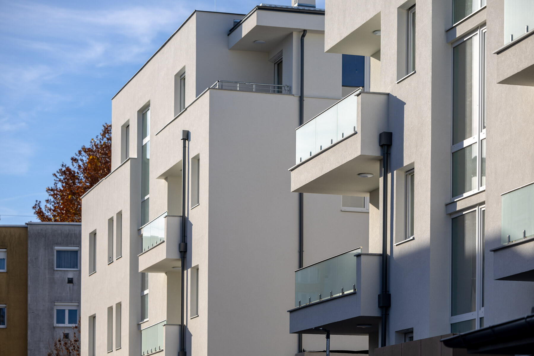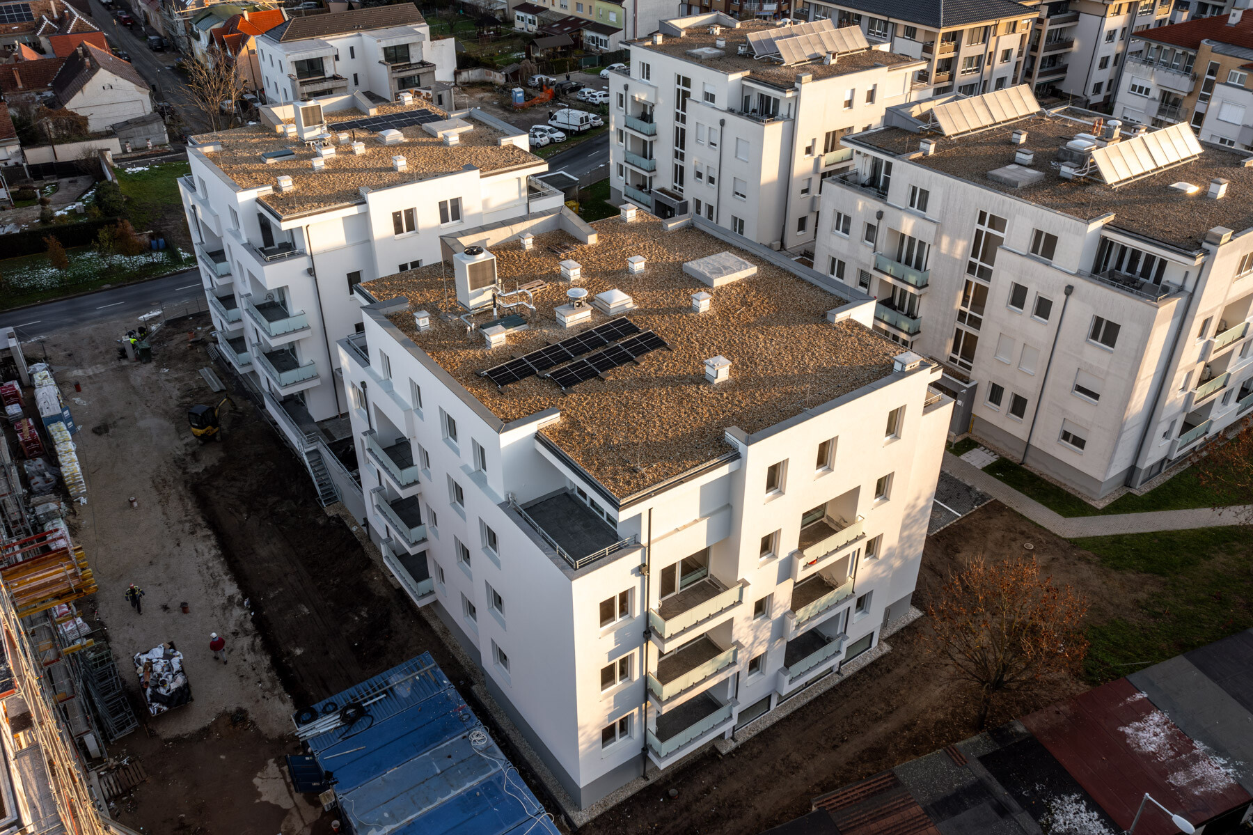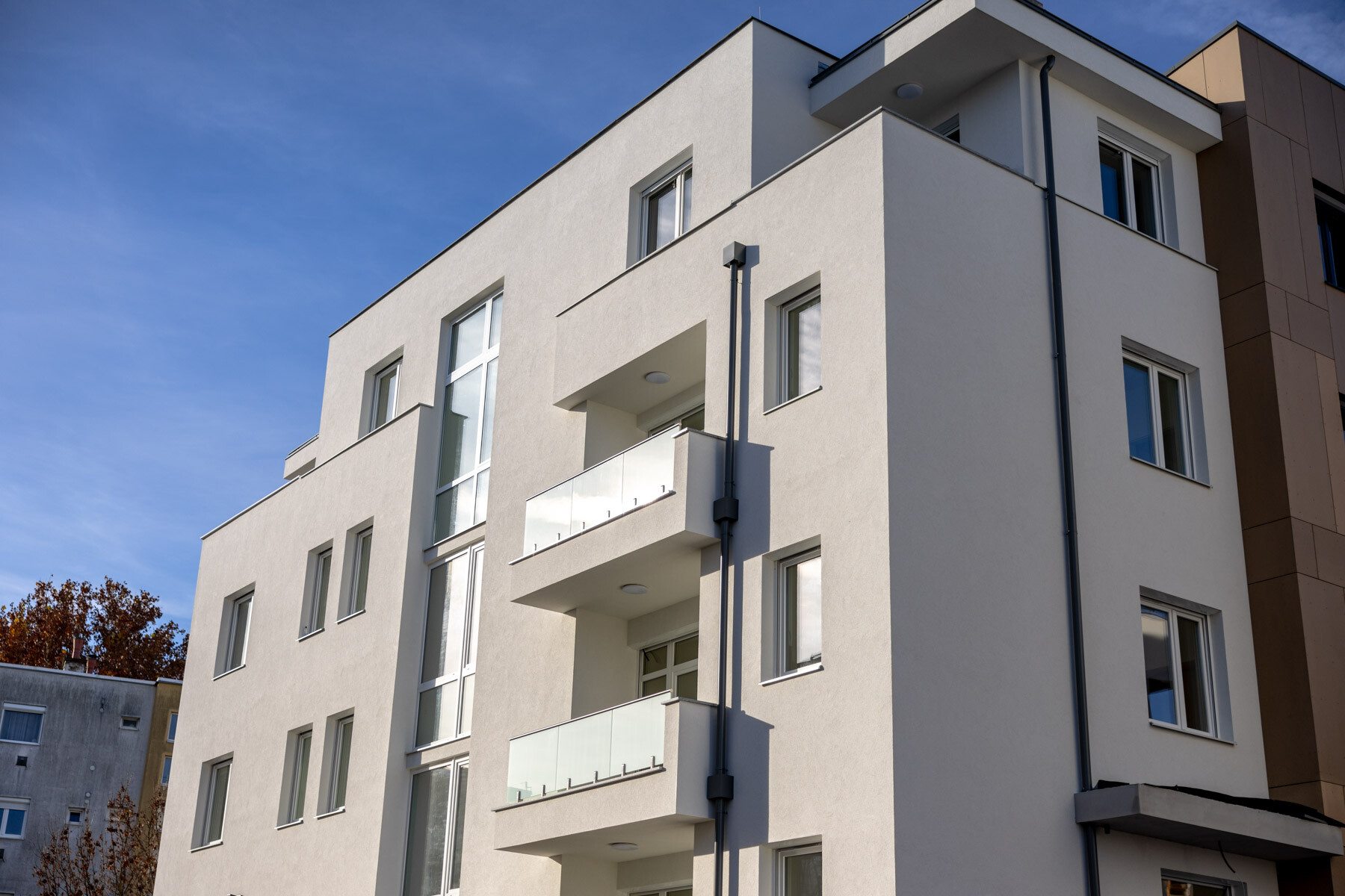 A két új épületben - egy emelet kivitélével - szintenként 4 darab két égtáj felé tájolt lakást alakítottak ki.