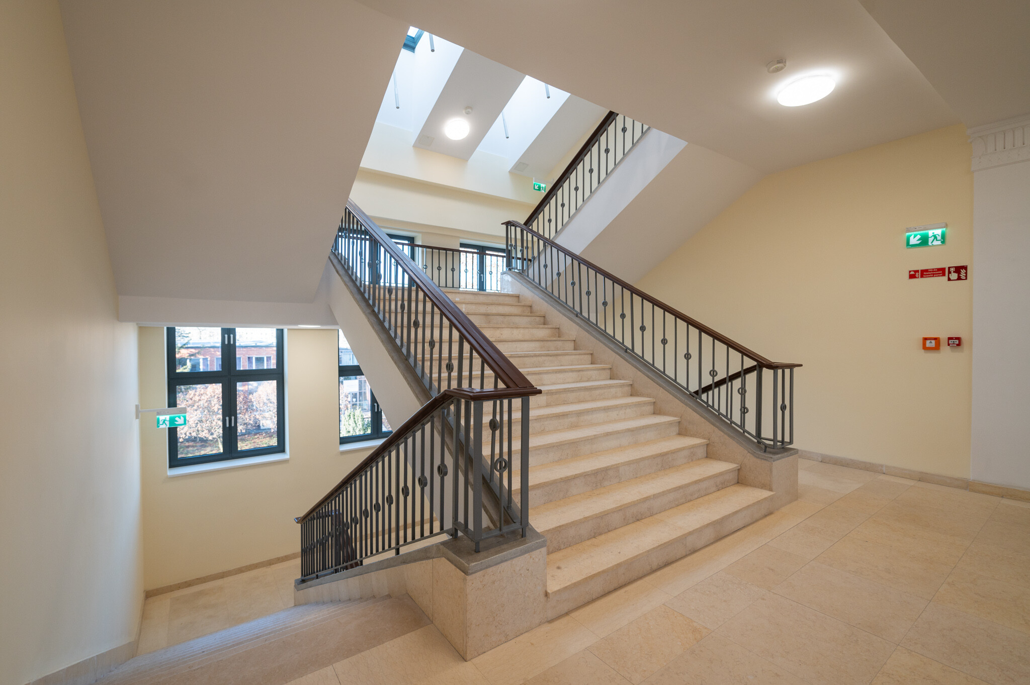 Az aula esetében megőrizték az eredeti karakterjegyeket. Ugyanakkor korszerűsítették a lépcsőházakat és felújították a hatalmas, több mázsás vascsillárokat. A megújult főépületben helyezték el a rektori hivatalt és a tanulmányi osztályt. Ezenkívül tornaterem, öltözők, tárgyalók, tanári szobák, valamint nyolc szemináriumi terem és öt nagy előadó található még itt.