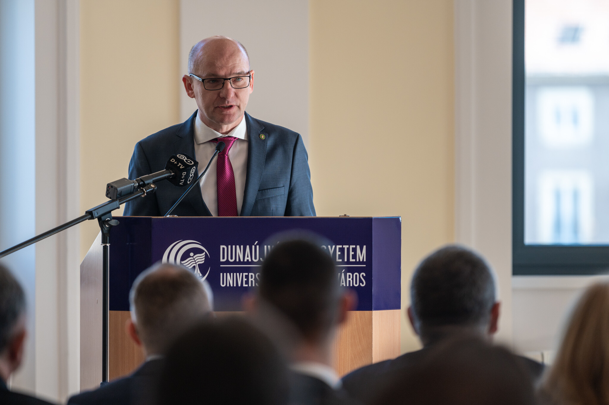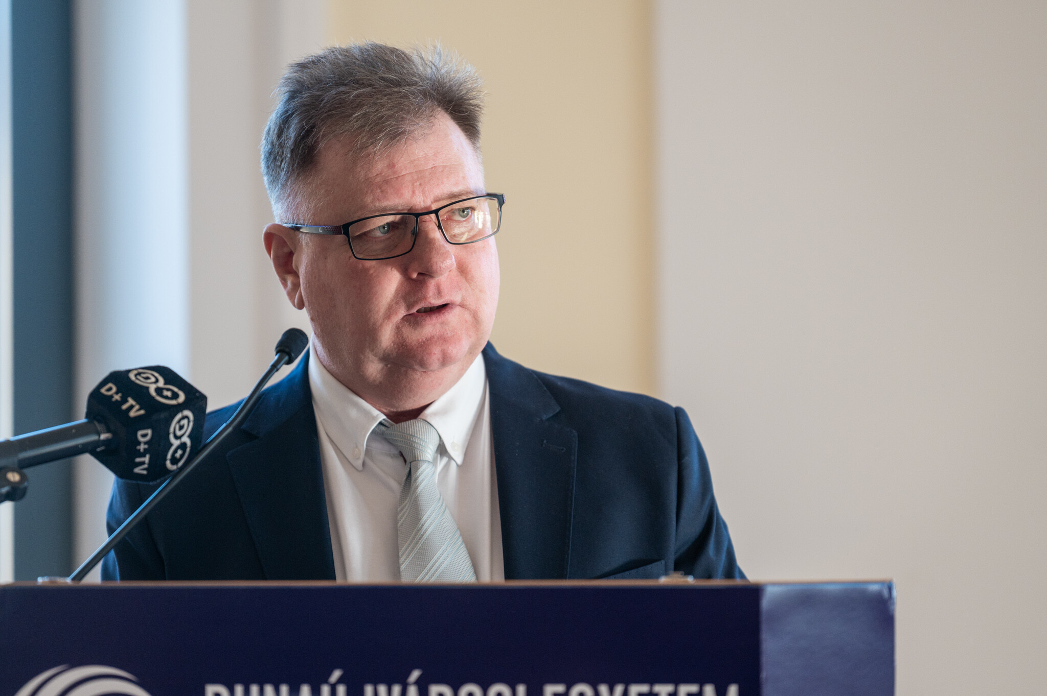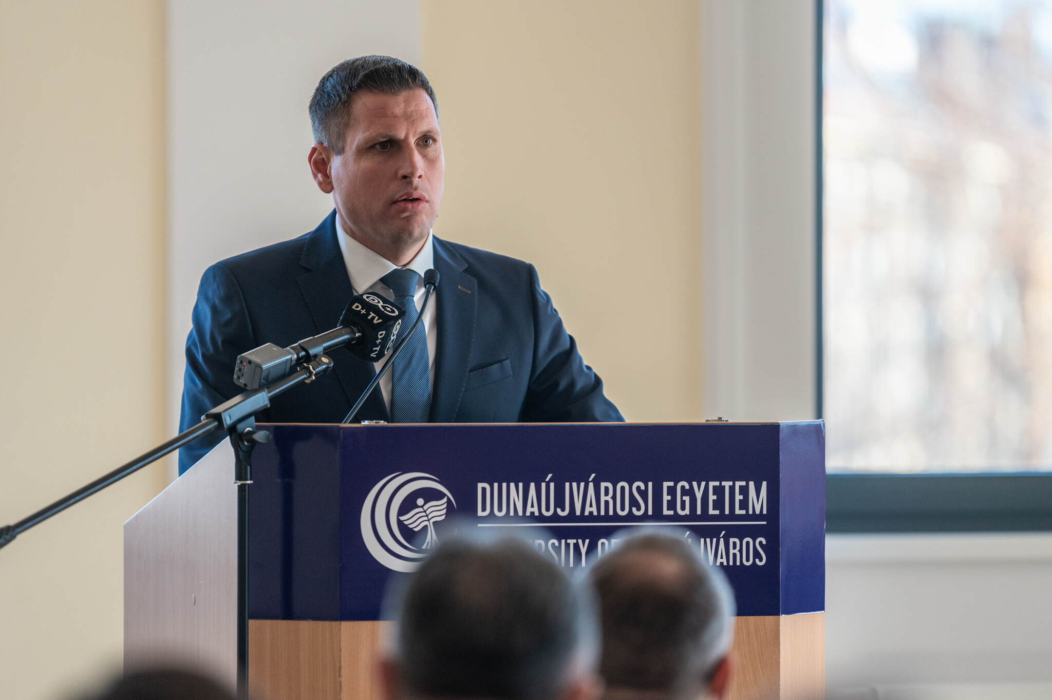 A jeles eseményen elmondott köszöntőjében Hankó Balázs kulturális és innovációs miniszter a magyar egyetemek küldetéséről beszélt. A tárcavezető kitért a Dunaújvárosi Egyetem térségben betöltött kulturális, tudományos és gazdasági szerepére is. Kiemelte, folyamatosan nő a felsőoktatásban tanulók száma és ebben a folyamatban egyre markánsabb részt vállalnak a vidéki, köztük a Dunaújvárosi Egyetem is, amely az elmúlt két évben megduplázta a hallgatói létszámát. Jelenleg 3302-en tanulnak az intézményben, a kétharmaduk műszaki, informatikai szakirányokon folytatja tanulmányait. A miniszter kiemelte, hogy az egyetem nemzetközi viszonylatban is egyre keresettebbé válik, - a hallgatók két százaléka külföldi - ami a képzés színvonalának és az itt megszerzett tudás versenyképességének köszönhető.