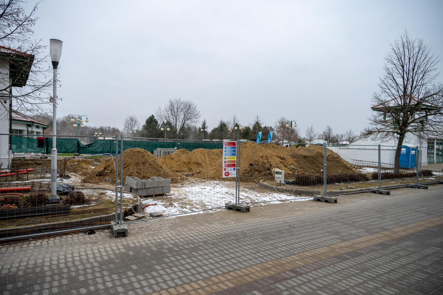 Lapunkat a HÉP munkatársai tájékoztatták a fejlesztésről. Megtudtuk, az új szárnyat a fürdőépület és a 33m-es úszómedence lelátója közötti területen alakítják ki, amit a helyszínen található kerítés elbontása tesz lehetővé.