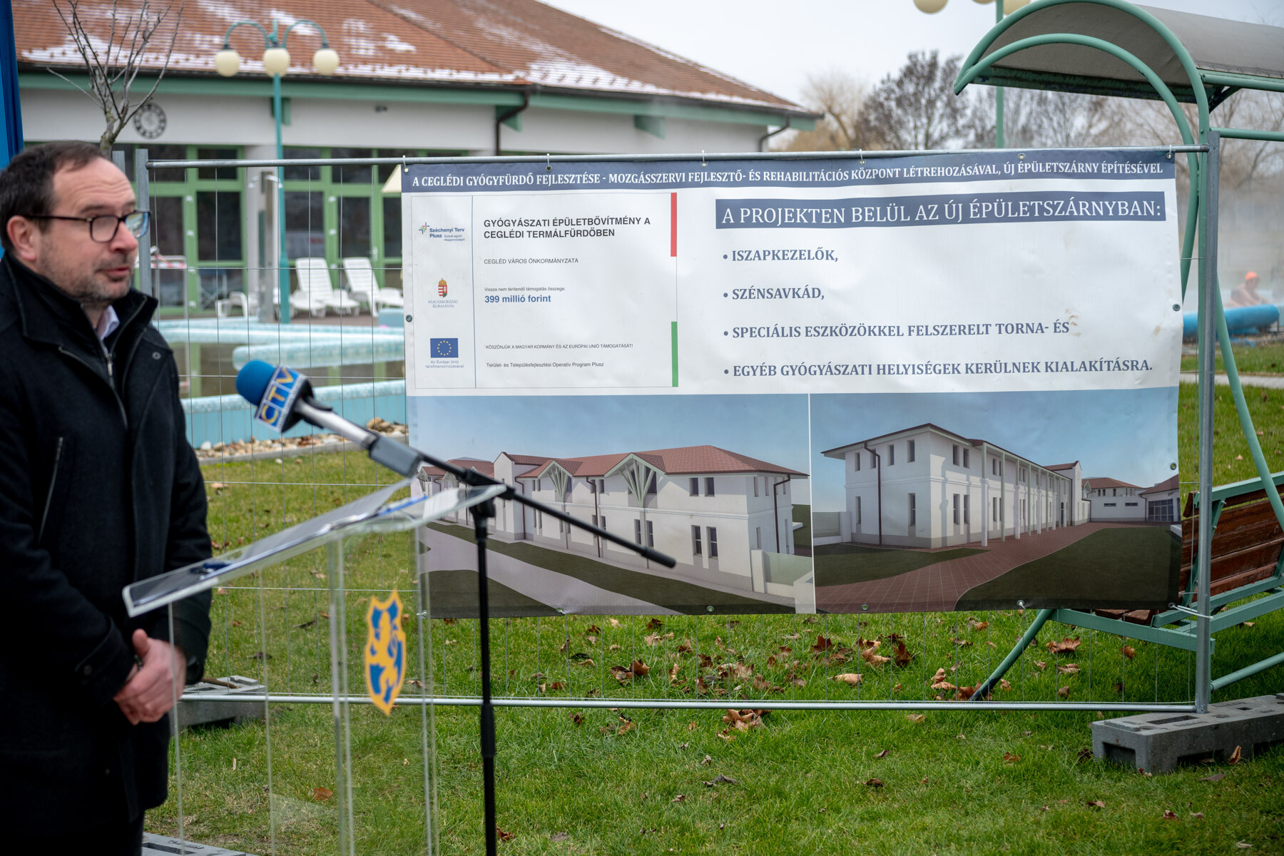 Az eseményen elsőként felszólaló Szűcs Ádám, a Ceglédi Termálfürdő Kft. ügyvezetője egyrészt hangsúlyozta: külön büszkeséget jelent számára, hogy részt vehet az ünnepségen, mivel egy gyógyulást biztosító létesítmény bővítése mindig nagy örömmel szolgál sokak számára.