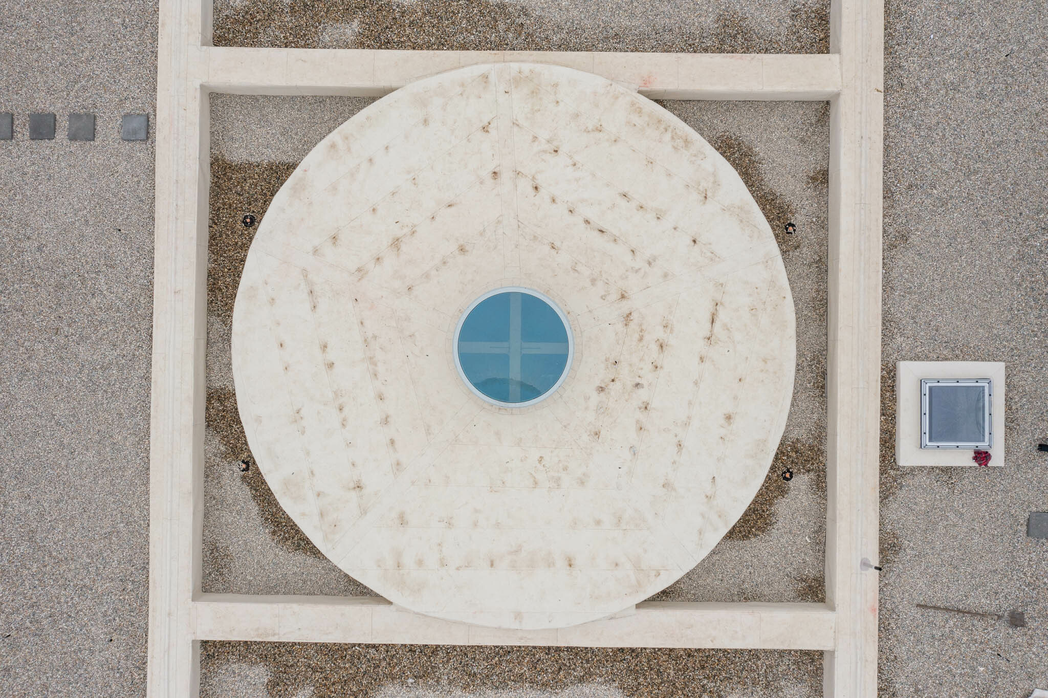 Ihász László külön kitért az épület aulájára az óvoda bemutatása során, amely különleges szerepet tölt majd be az intézmény életében. A katolikus óvodában nem alakítottak ki szakrális teret. A megrendelő és a tervezők szándéka szerint – az anyaghasználat és a fényforrások révén - ezt a szerepet az aula töltené be. A monolit vasbeton szerkezetű aula közepén keresztirányú fatartókra CLT paneleket és egy felülvilágítót helyeztek el. A lucfenyőből készített tömörfa panelek, páratlan számú keresztirányú réteggel készülnek és különleges látványt nyújtanak. Az intézmény központi tere sávos álmennyezetet kapott.
