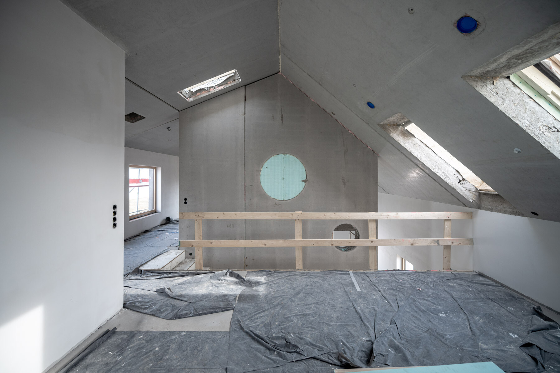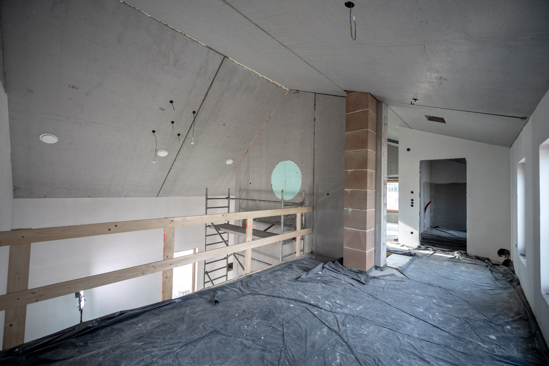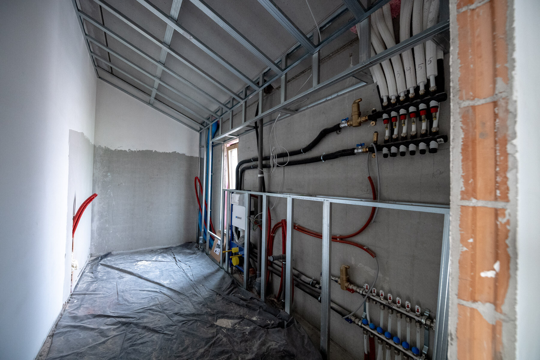 Februárban nagy lendületet vett az építkezés: gipszkarton álmennyezetek és előtétfalak építésével, villamos és gépészeti szerelvényezésekkel, kandallóbeépítéssel, felületelőkészítésekkel, aljzatbetonozással, hideg- és melegburkolatok kialakításával, festéssel lépett előre a kivitelezés.