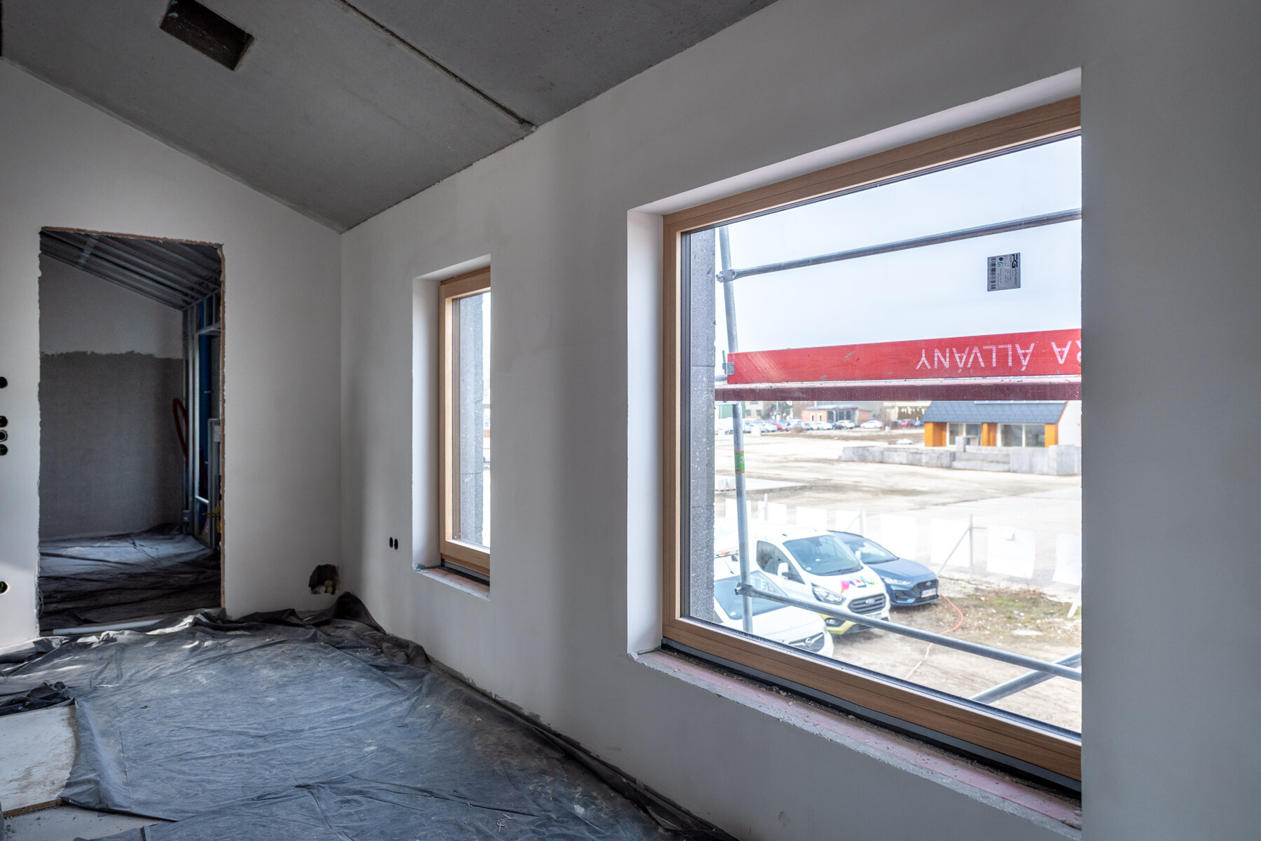 „Az időjárás függvényében a napokban kezdődhet a homlokzat végleges felületképzése, a Hella árnyékolók beépítése és a bádogos elemek elhelyezése után a homlokzati szín kialakítása a Baumit anyagainak felhasználásával.”