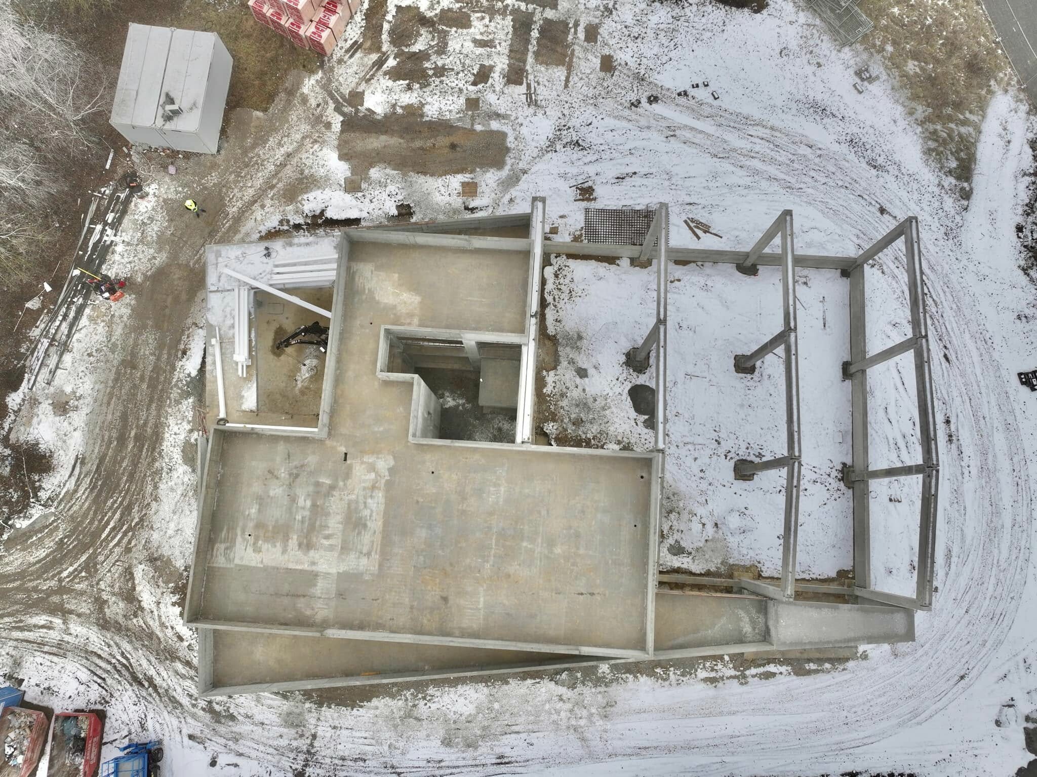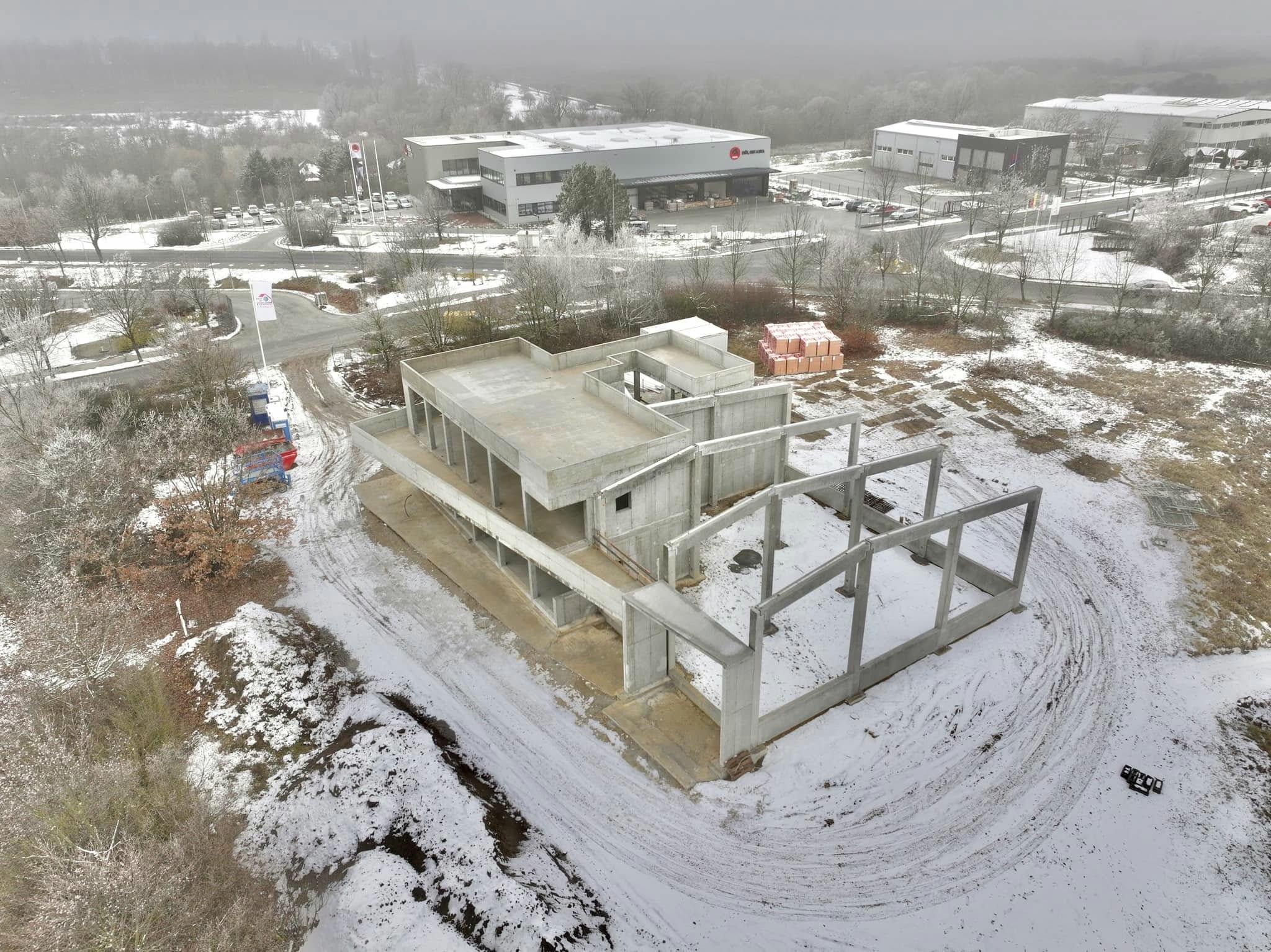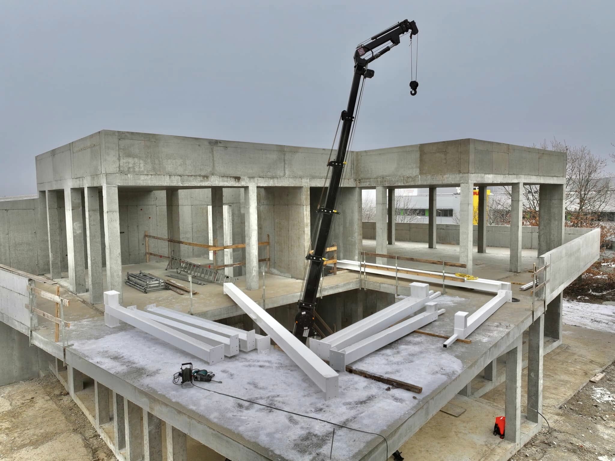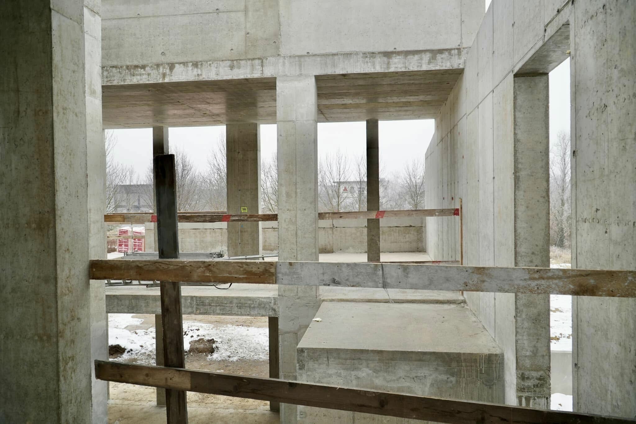 Beszámolójuk képeiből jól látszik: a 6532 m2-es telekre kerülő 700 m2-es épület vasbeton szerkezeteit, benne pedig a 400 m2-es kétszintes irodát és a 300 m2-es kapcsolódó raktárt eltérő szerkezettel hozzák létre.