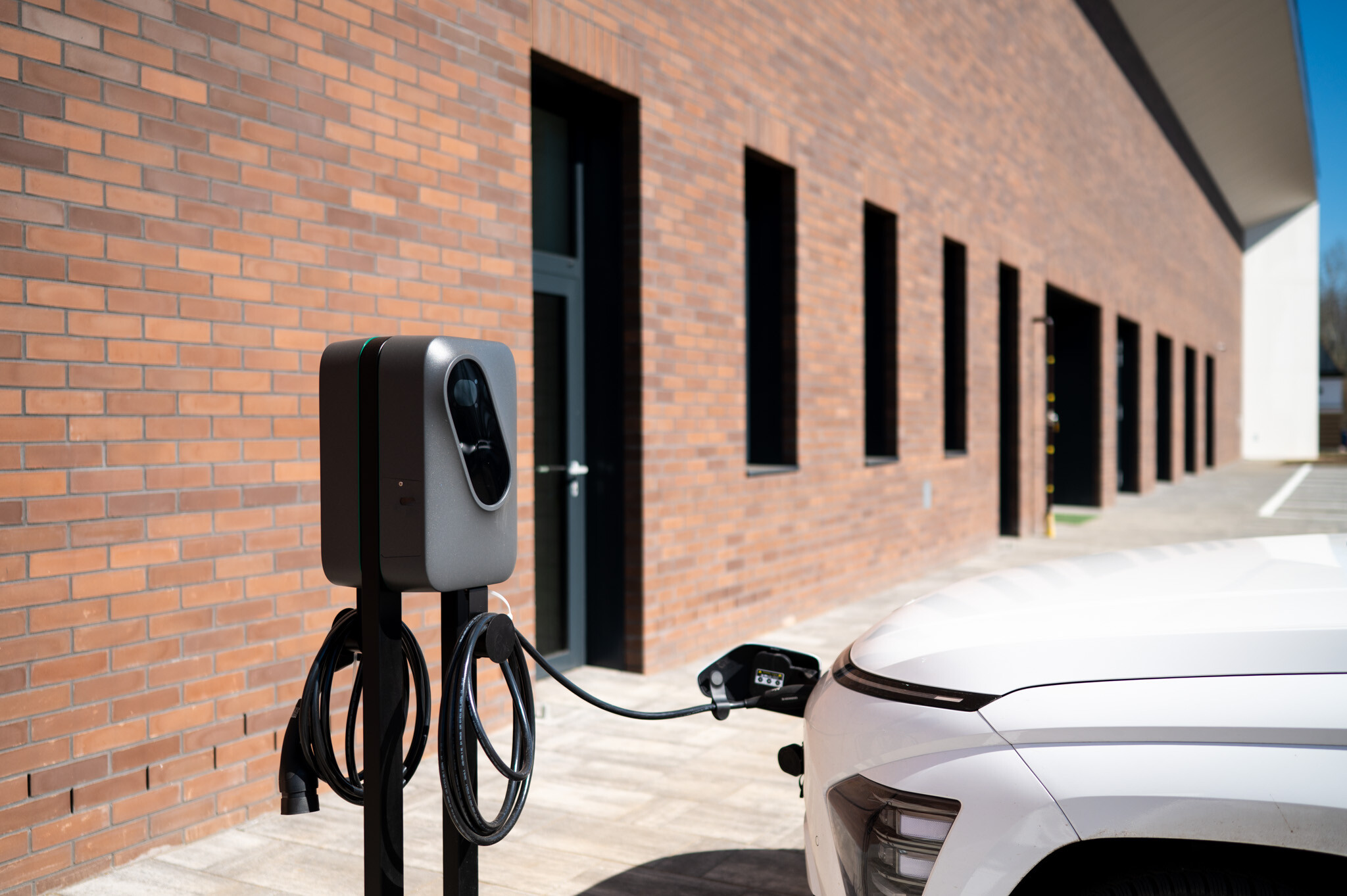 Legutóbbi cikkünk óta elkészült az épület külső homlokzati burkolata, külső térburkolata, sőt, a füvesítés és fásítás is. A parkolóban már telepítették a két AC autótöltőt. Amint Héver Gábor projektvezető tájékoztatta lapunkat: