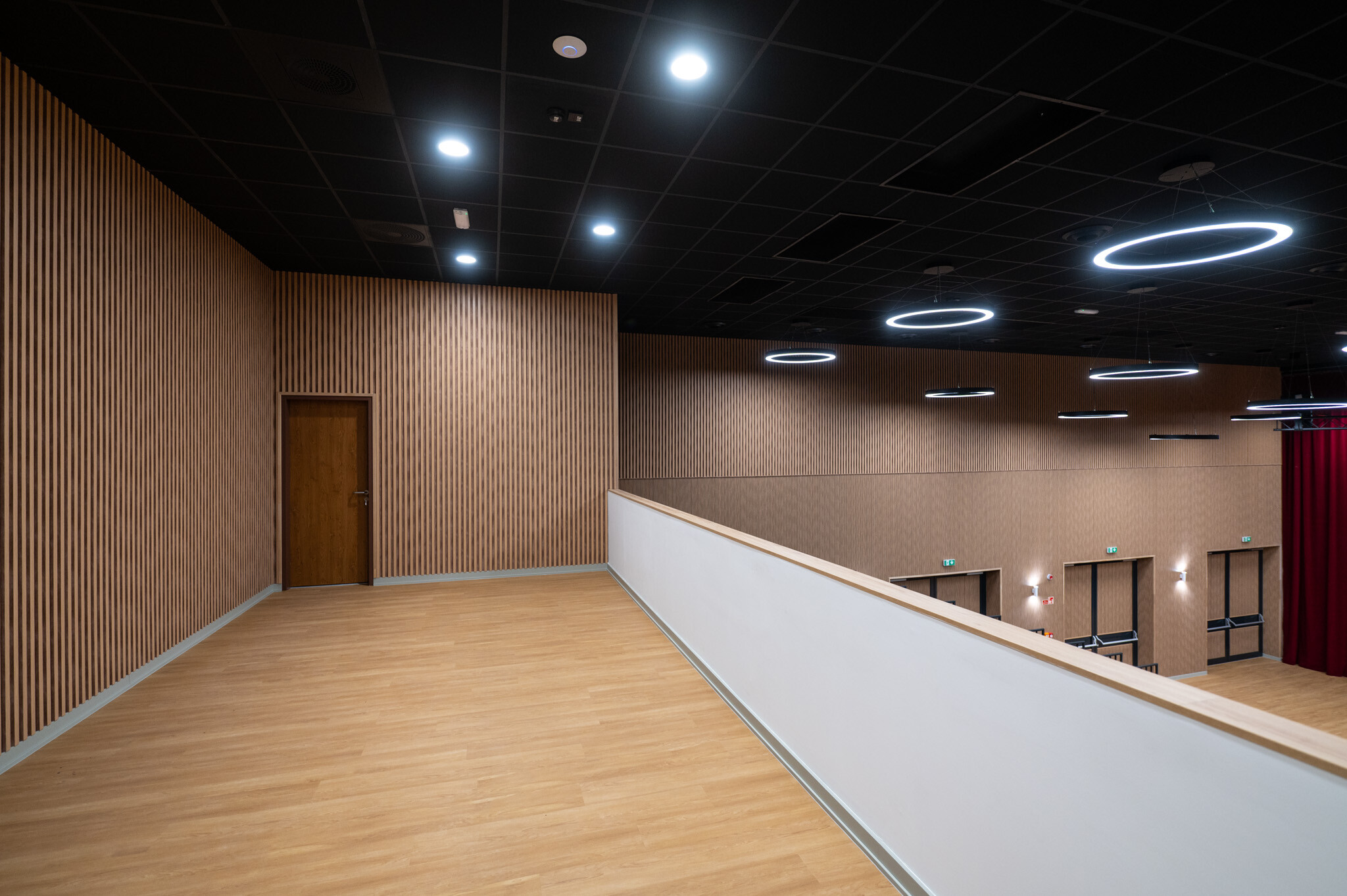 „Egy mobilszínpad és további színpadtechnikai elemek beépítése támogatja emellett az épület multifunkcionális jellegét” – hangsúlyozta a projektvezető.