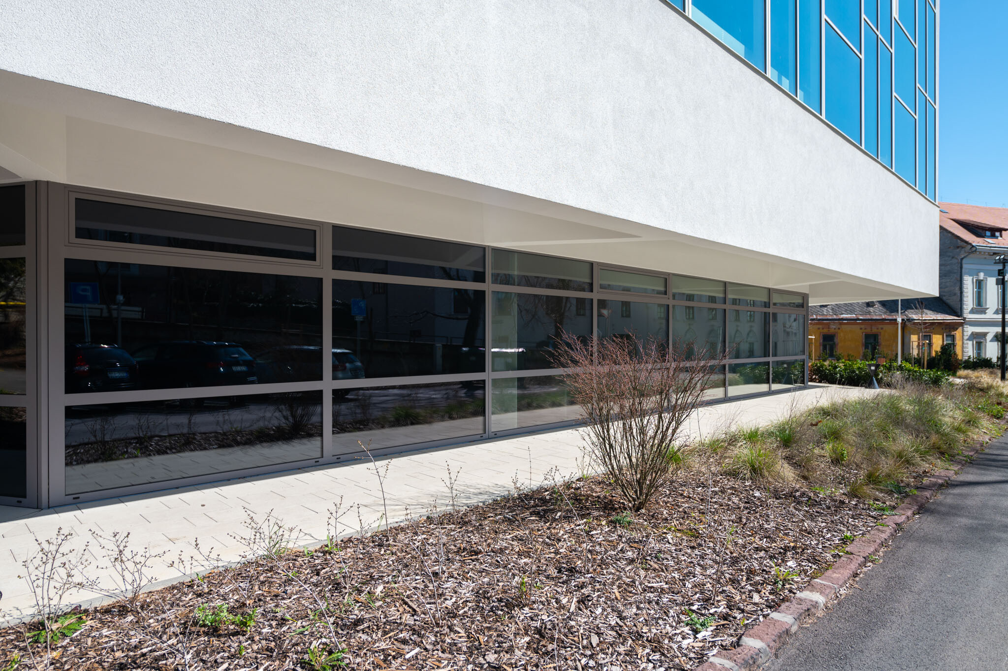 A szakember elmondta, hogy a szilikonos vékony vakolat kötőanyagában a műgyanta mellett a szilikongyanta is megtalálható, ami biztosítja a páraáteresztést, ugyanakkor megnehezíti az algák és gombák megtelepedését a felületen. Ezáltal tartósabb homlokzatok alakíthatóak ki, amelyeken a környezeti hatások miatti felületi elszíneződések, - vagyis a bezöldülés - megjelenése időben jelentősen kitolhatóak. Az épület - tette hozzá a projektvezető - olyan mikroklímájú környezetben található, ahol ezekkel a folyamatokkal számolni kell, de a szilikongyanta alkalmazásával ez a probléma kiküszöbölhető.