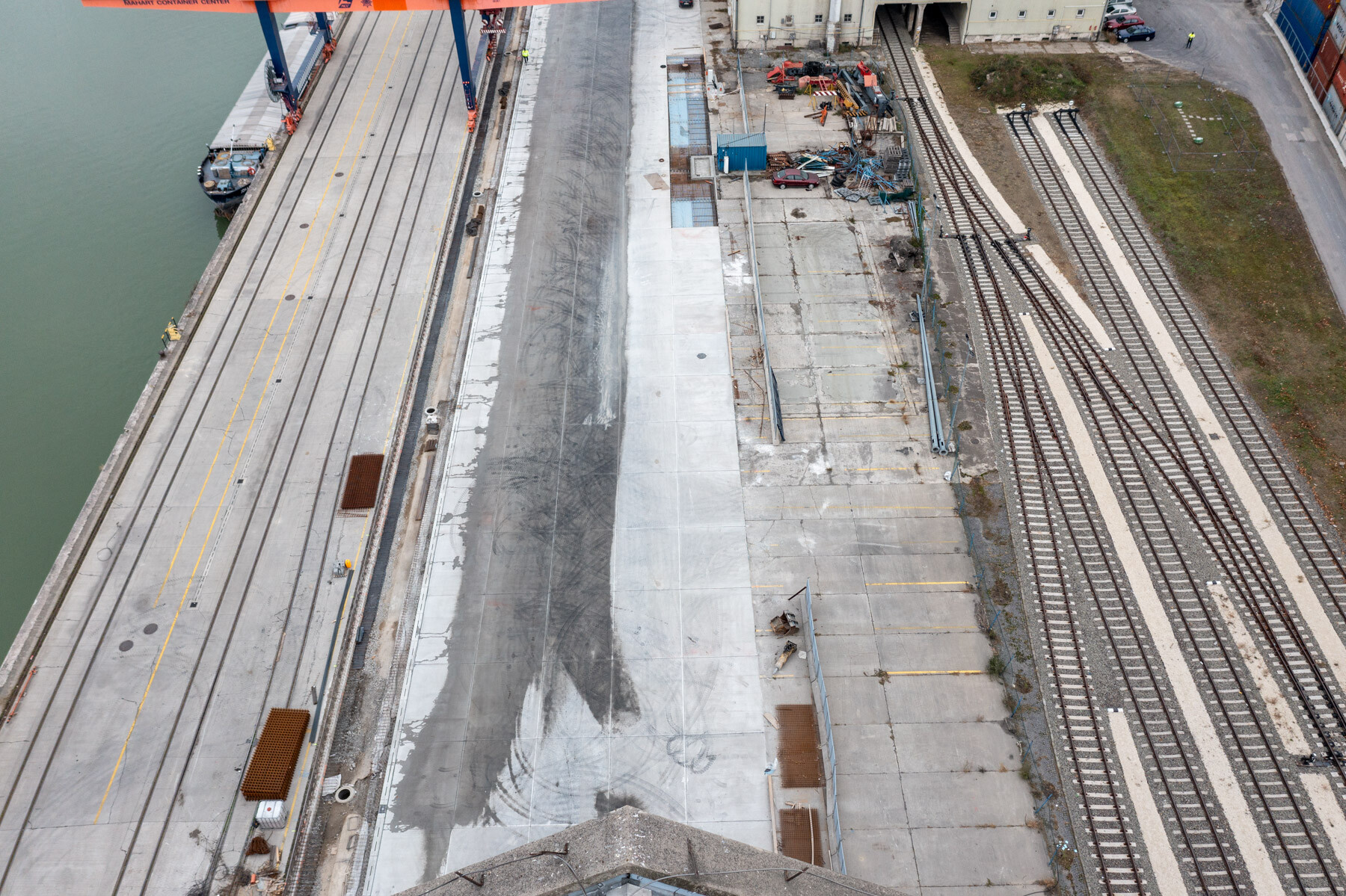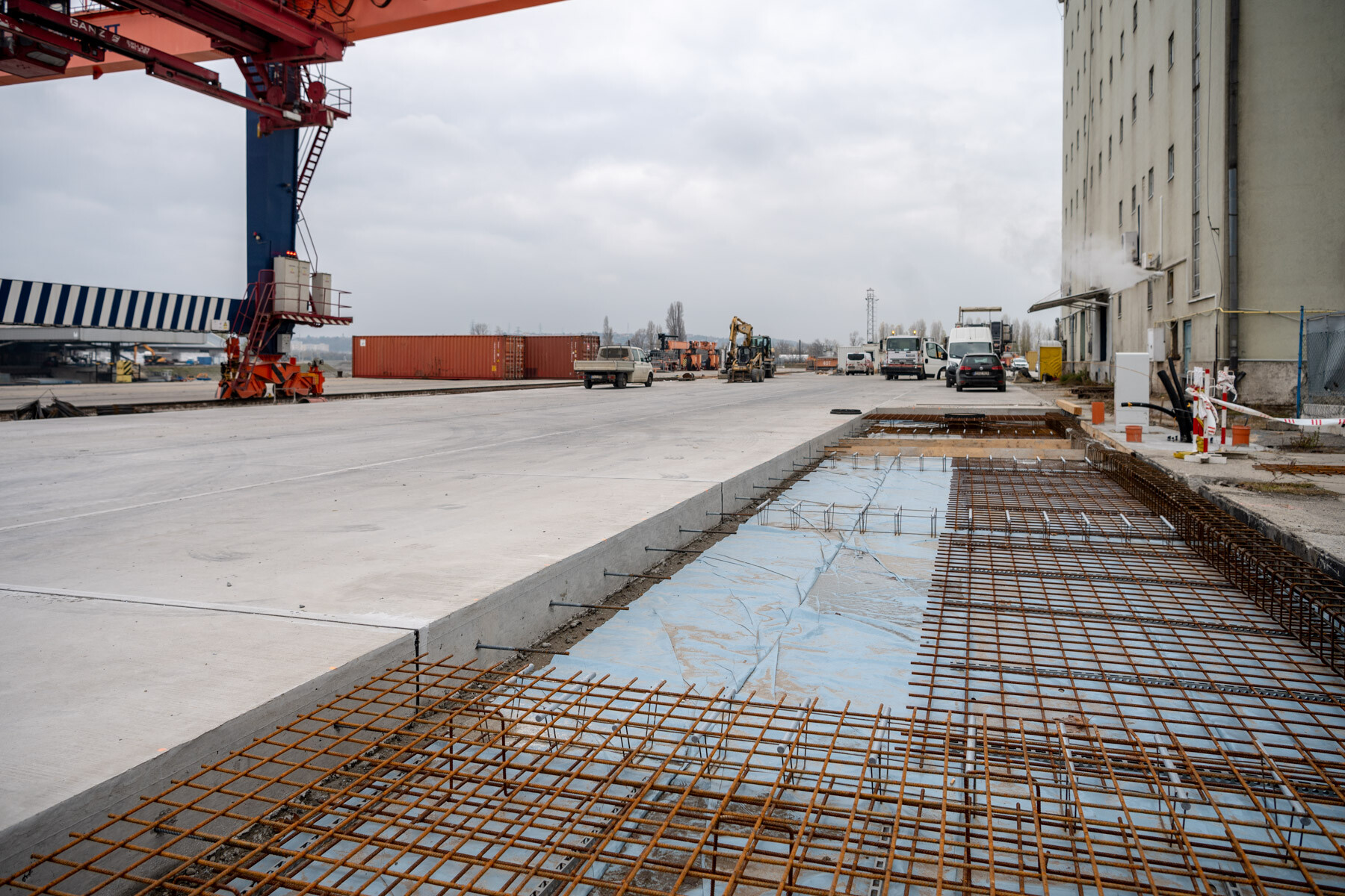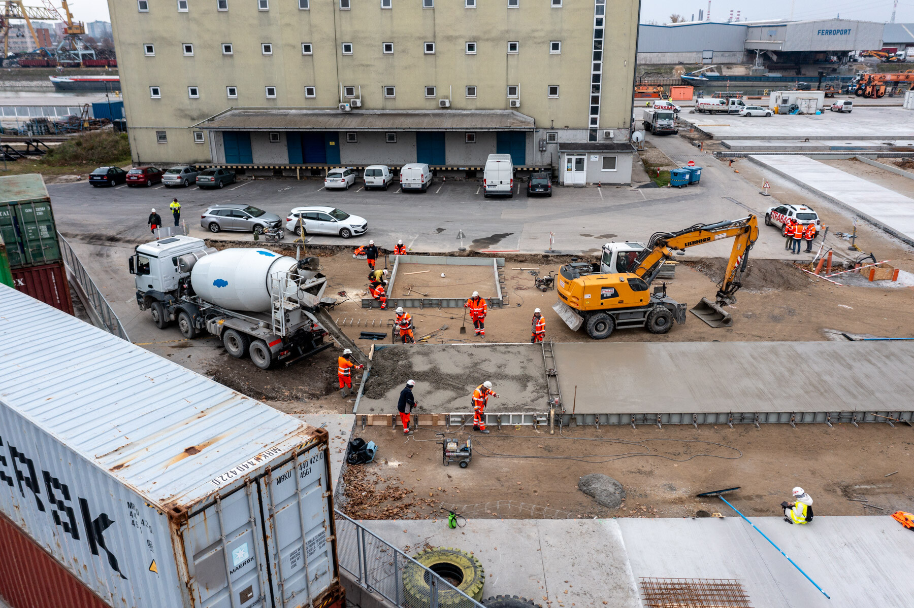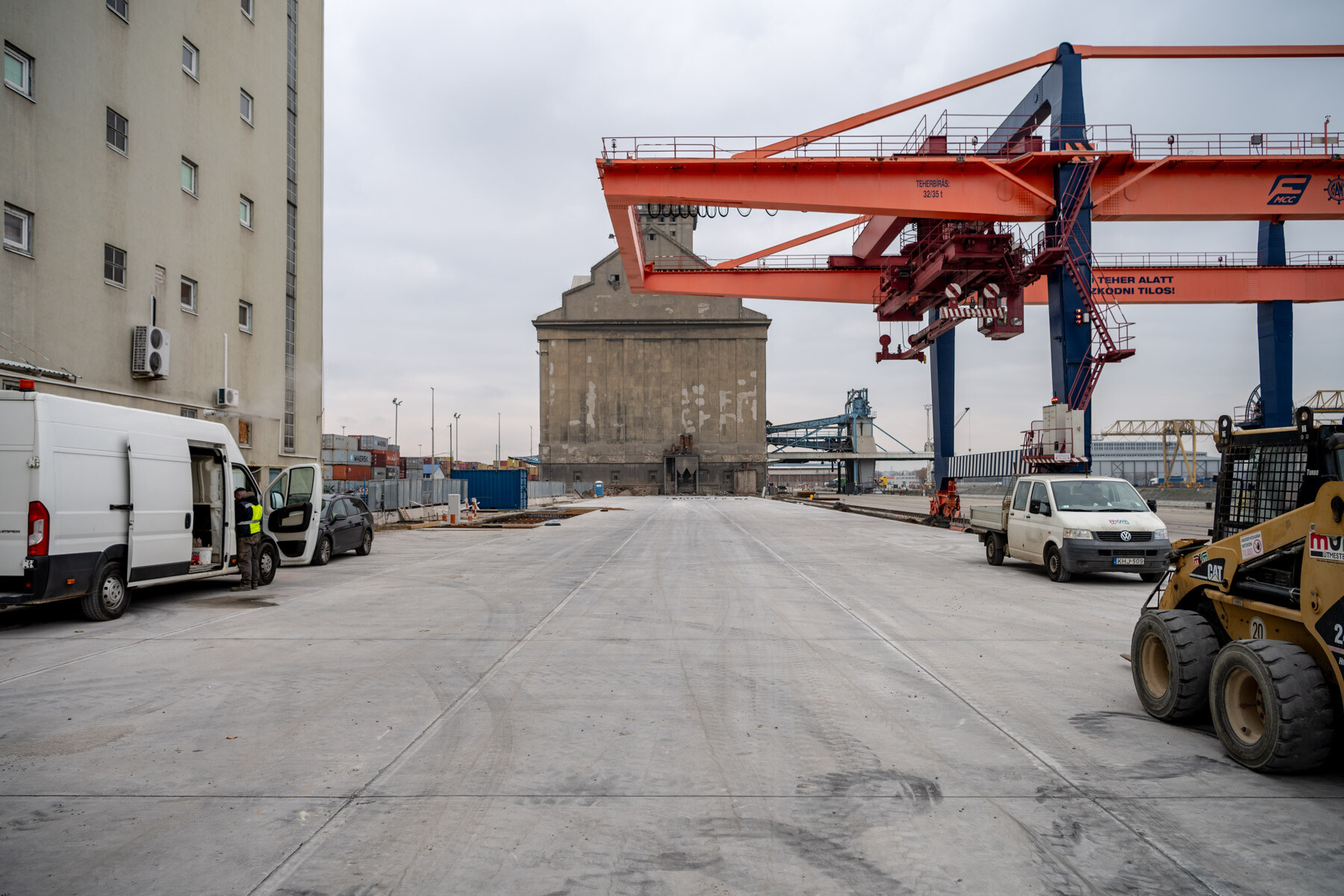 A STRABAG szakemberei 2023 októberében vették át a munkaterületet, hogy mintegy 30 ezer négyzetméteren nagy teherbírású felületeket alakítsanak ki szállítójárművek – kamionok, vonatok – fogadására, valamint konténerek rakodására és tárolására. Az első ütemben 17.617m2 felület megépítésével készültek el. A második ütemben 8.653m2, míg a harmadikban további 3.542m2 vár még lebetonozásra.