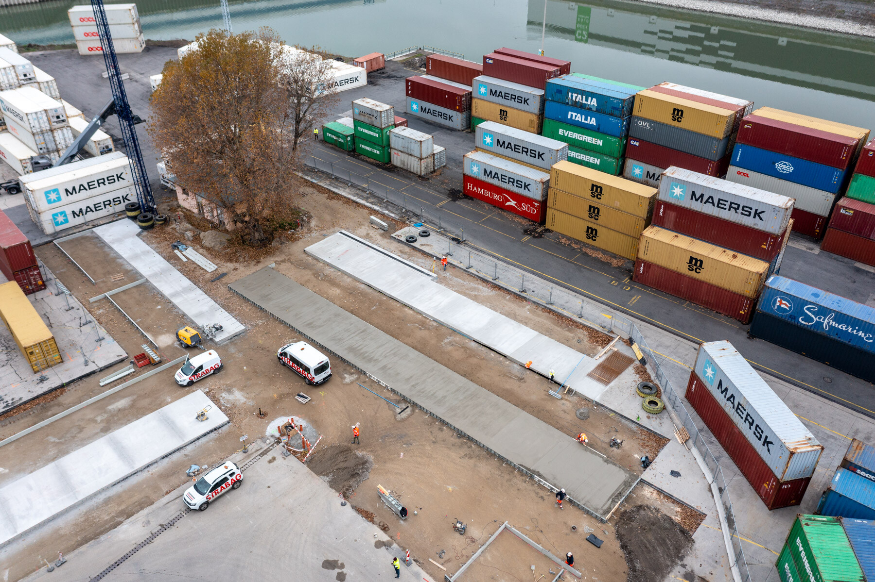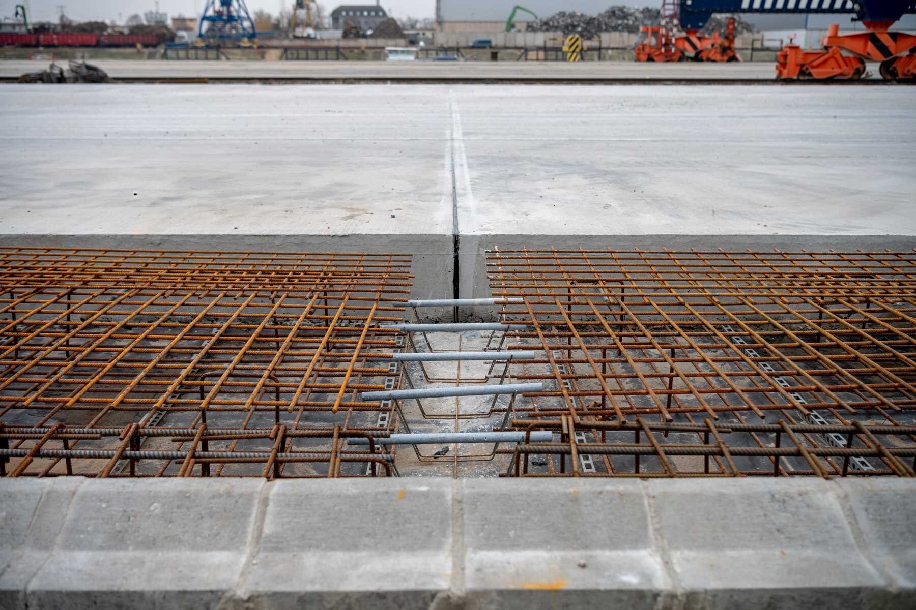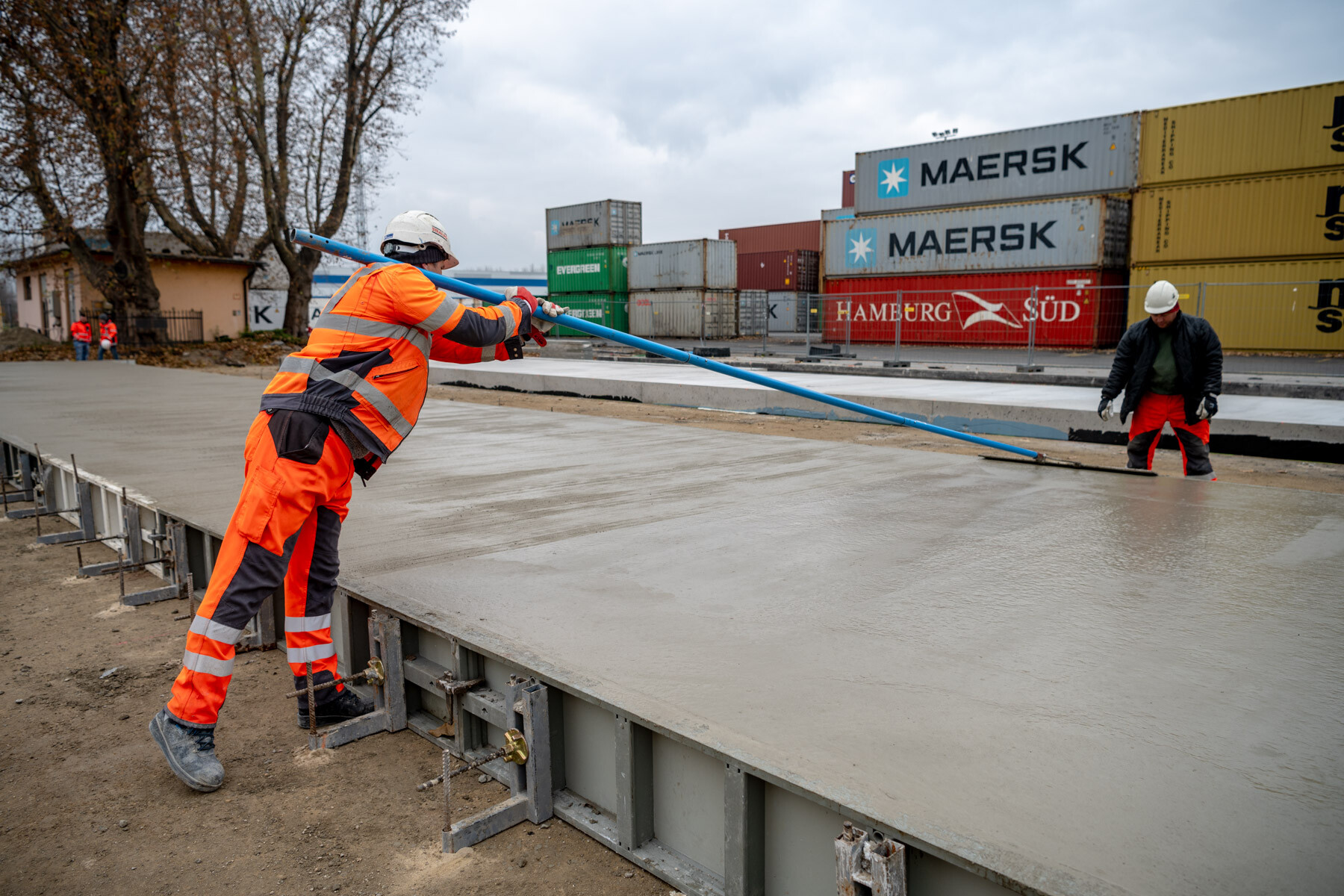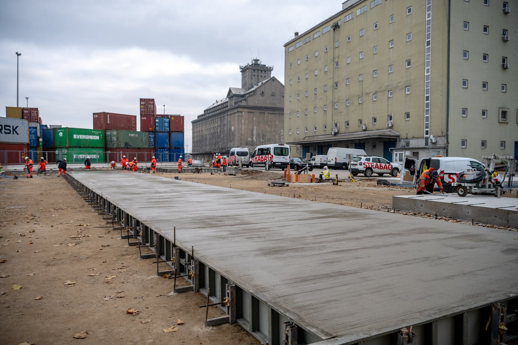 A STRABAG szakemberei 2023 októberében vették át a munkaterületet, hogy mintegy 30 ezer négyzetméteren nagy teherbírású felületeket alakítsanak ki szállítójárművek – kamionok, vonatok – fogadására, valamint konténerek rakodására és tárolására. Az első ütemben 17.617m2 felület megépítésével készültek el. A második ütemben 8.653m2, míg a harmadikban további 3.542m2 vár még lebetonozásra.