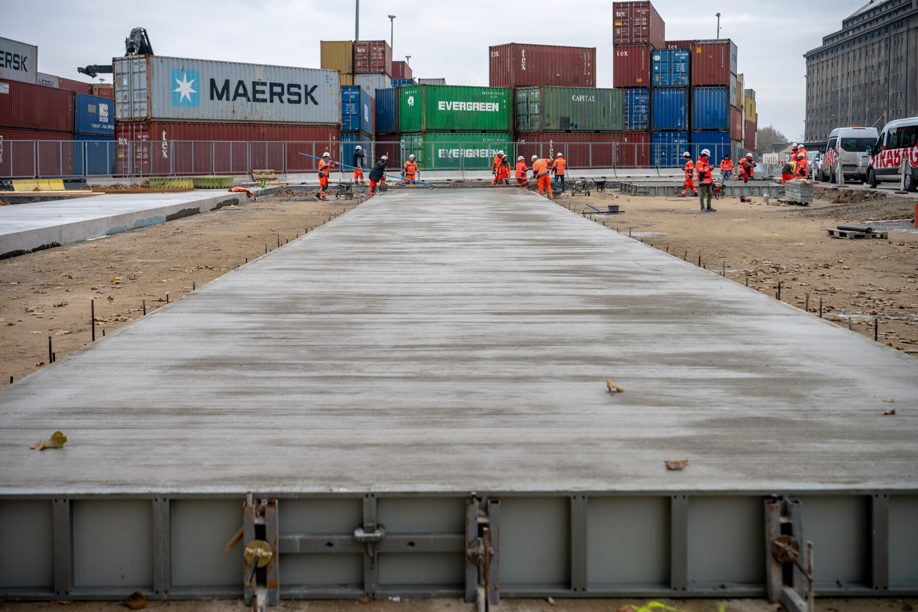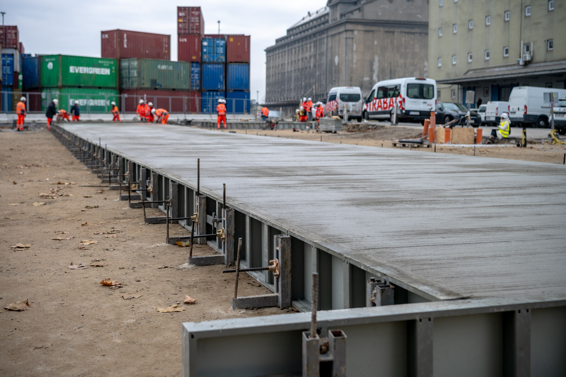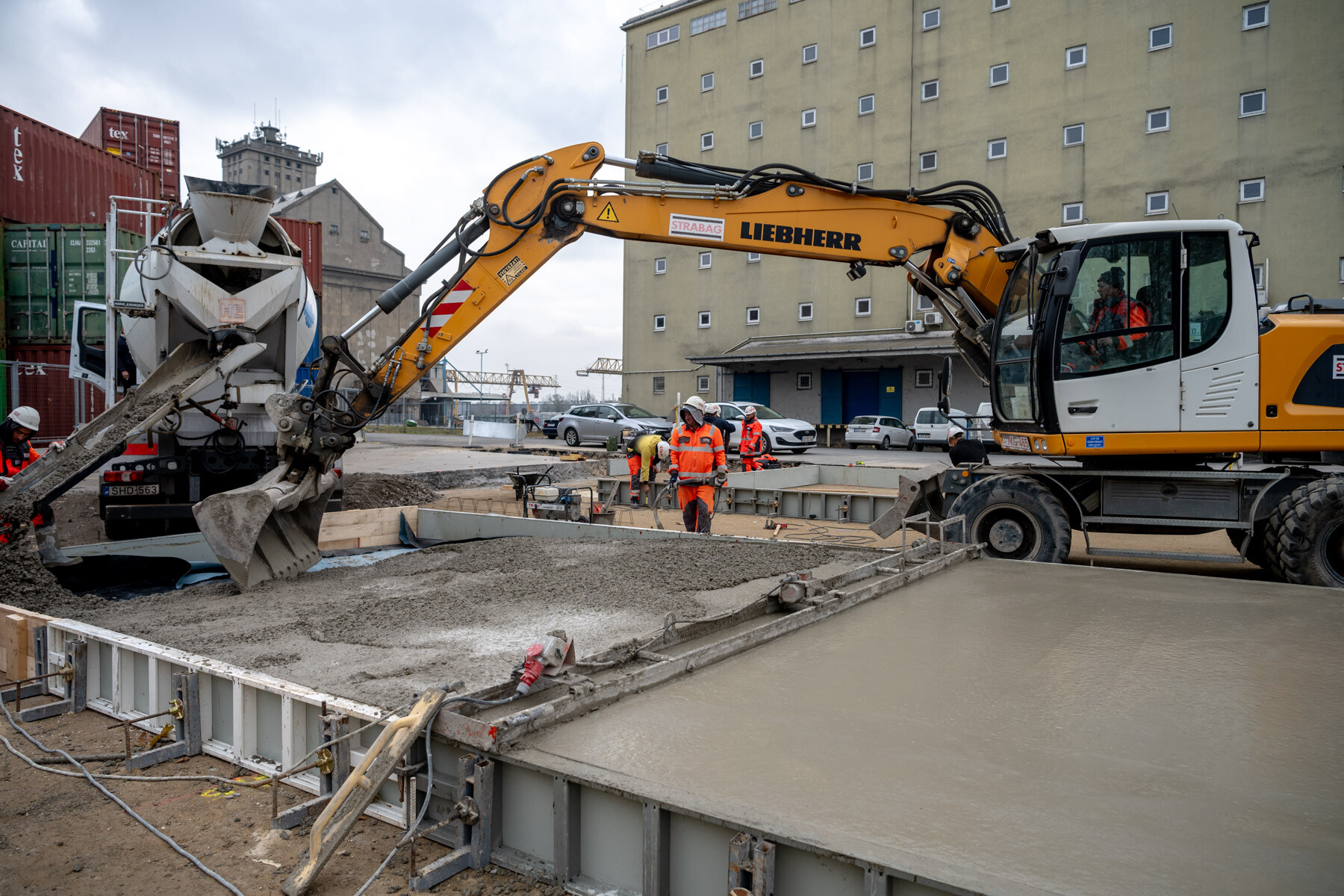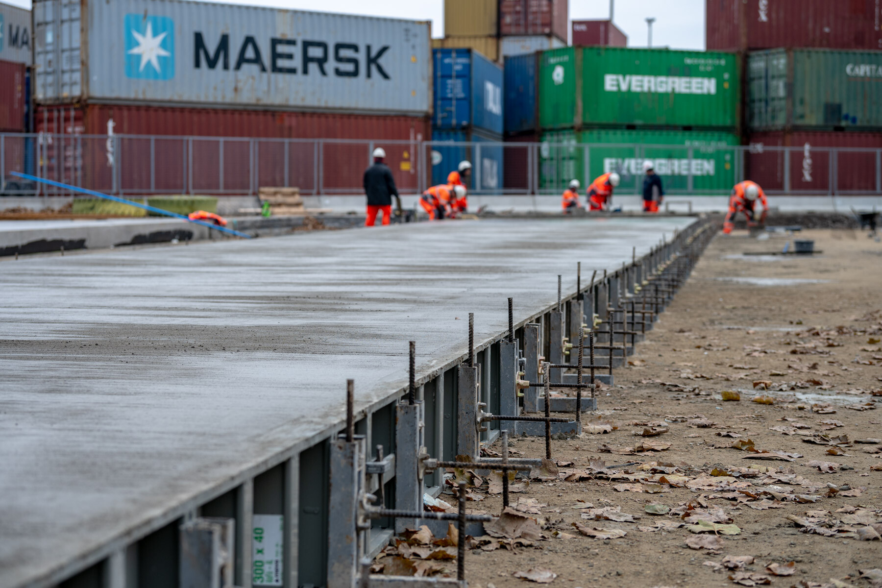 A STRABAG szakemberei 2023 októberében vették át a munkaterületet, hogy mintegy 30 ezer négyzetméteren nagy teherbírású felületeket alakítsanak ki szállítójárművek – kamionok, vonatok – fogadására, valamint konténerek rakodására és tárolására. Az első ütemben 17.617m2 felület megépítésével készültek el. A második ütemben 8.653m2, míg a harmadikban további 3.542m2 vár még lebetonozásra.