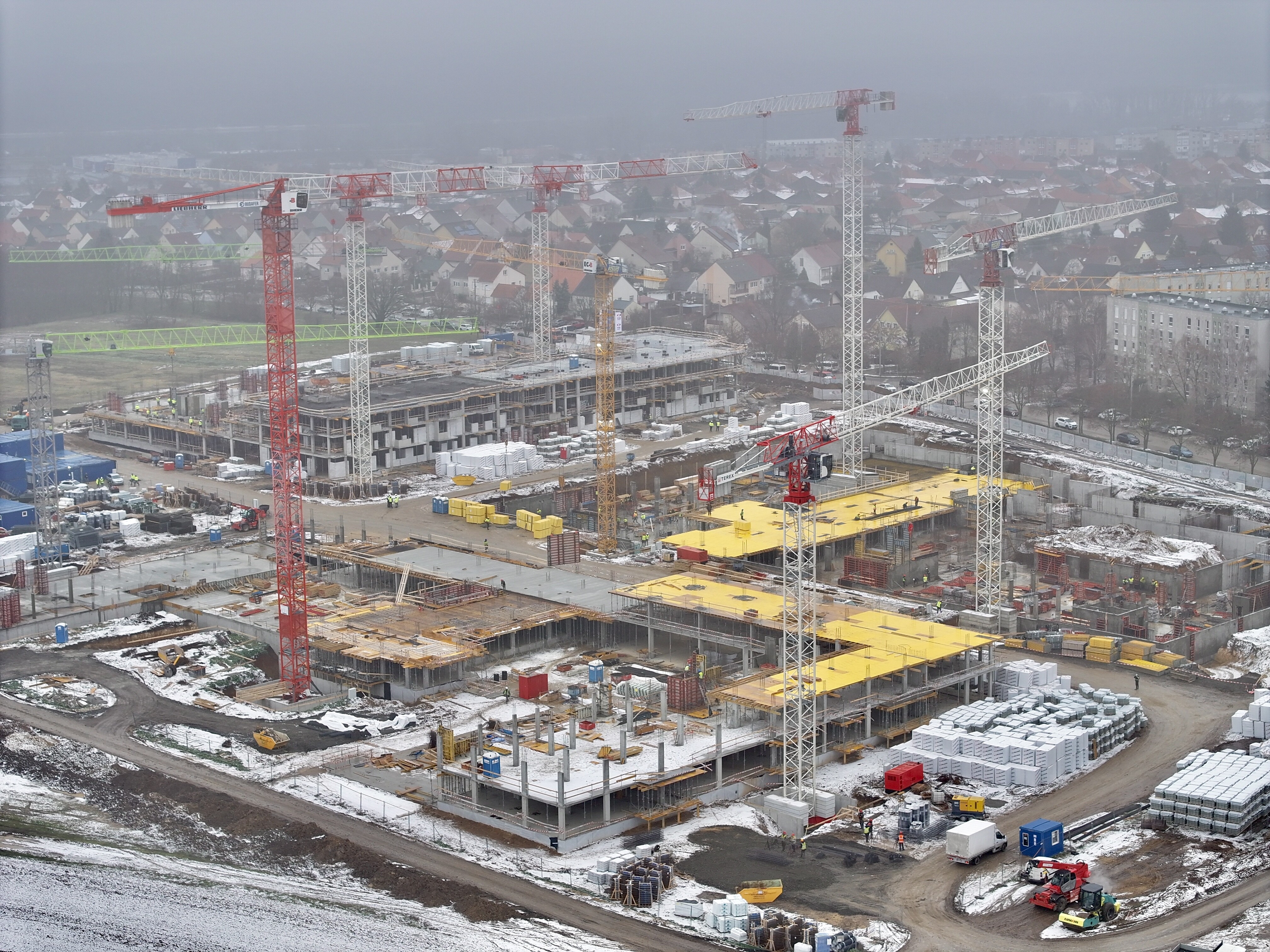 Jelenleg mindhárom épülettömb szerkezetépítése zajlik.
