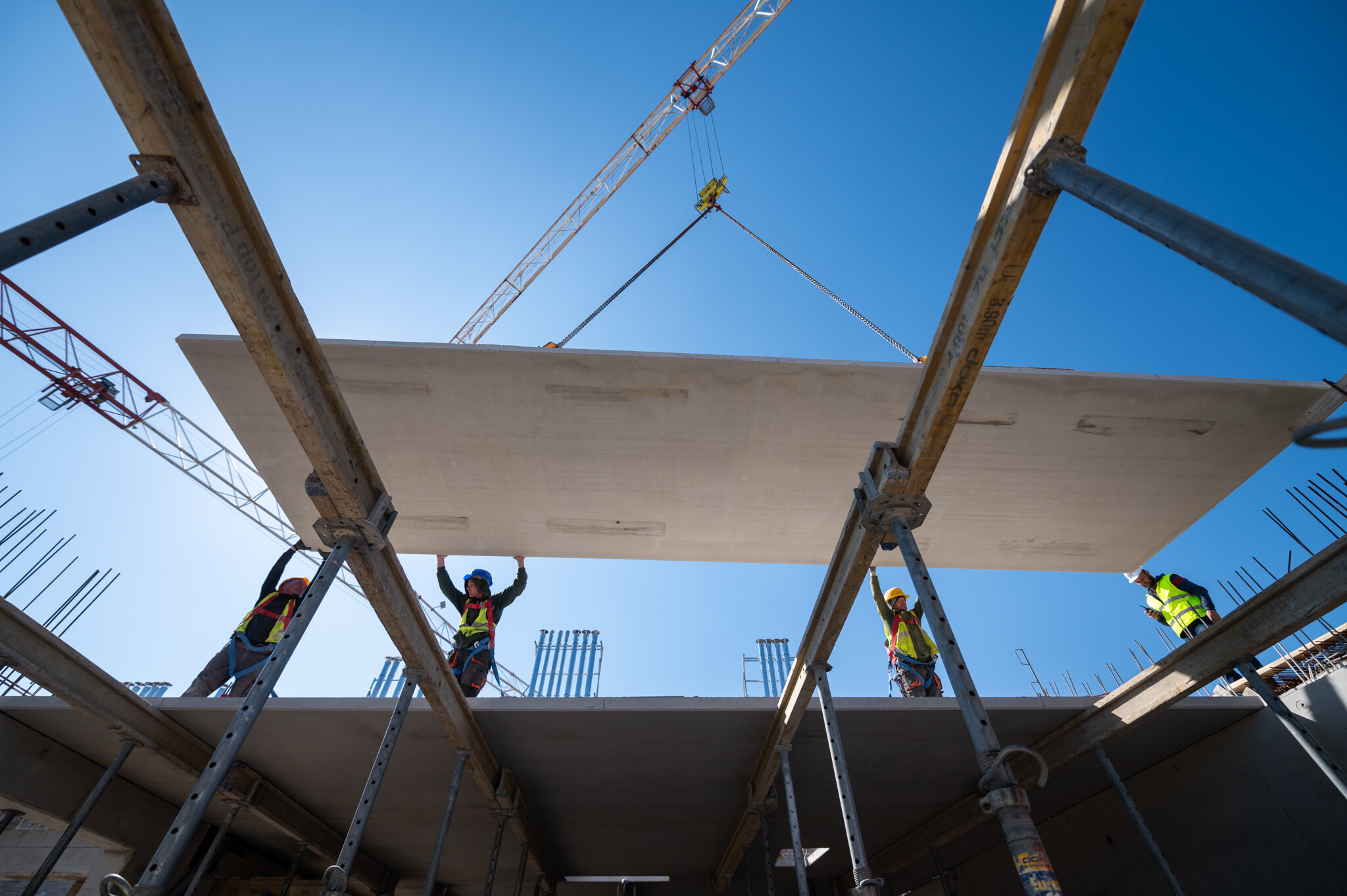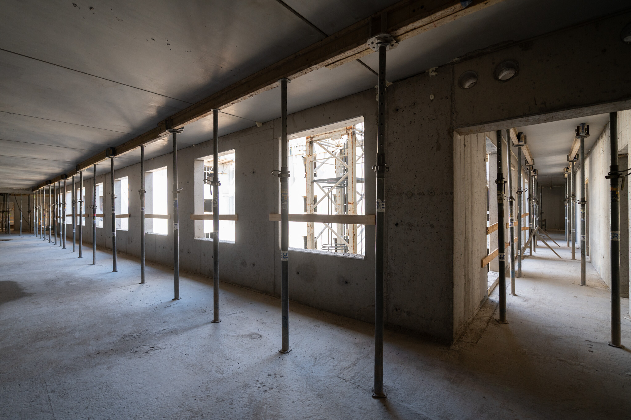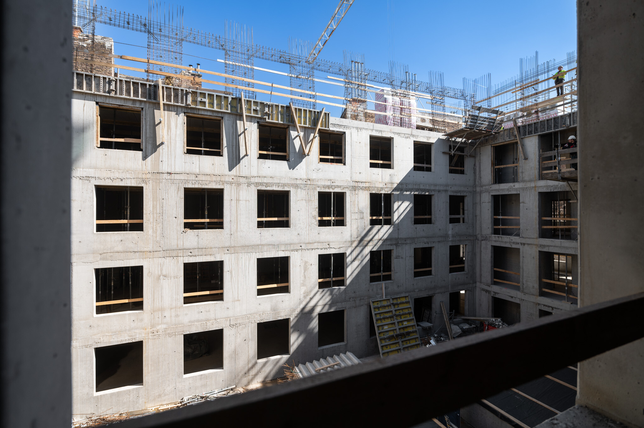 Látszó vasbeton szerkezetek emellett a lépcsőházakban és a folyosói falakon is megjelennek, amelyeket a felszerkezetek építése során az előregyártás is segít: a födémpanelek és a lépcsőkarok is az ÉPI gyárában készülnek, míg a szomszédos épületekkel határos körítőfalak (pakettfalak) a Leier Hungária Kft. szállítja a projektre.