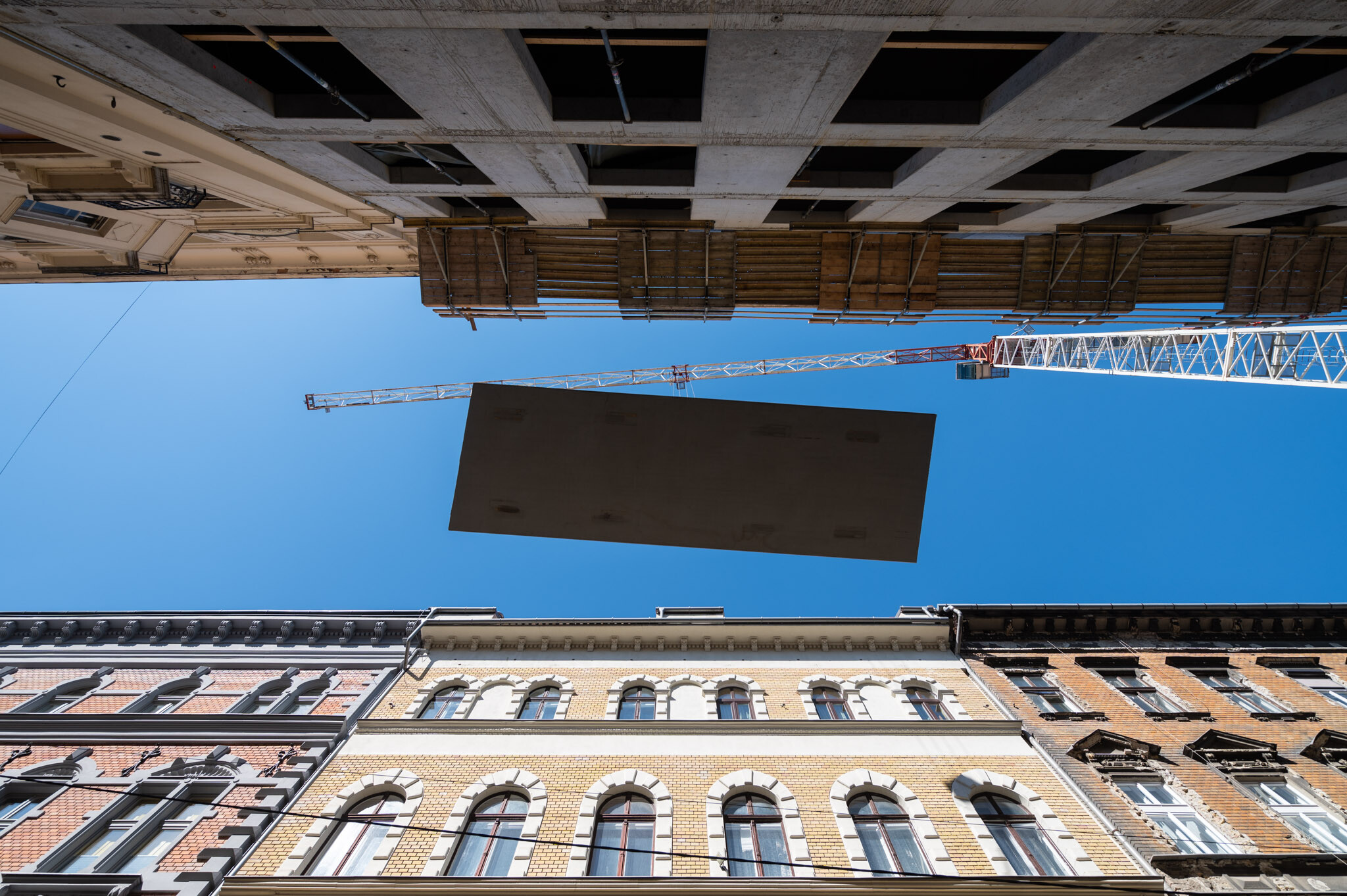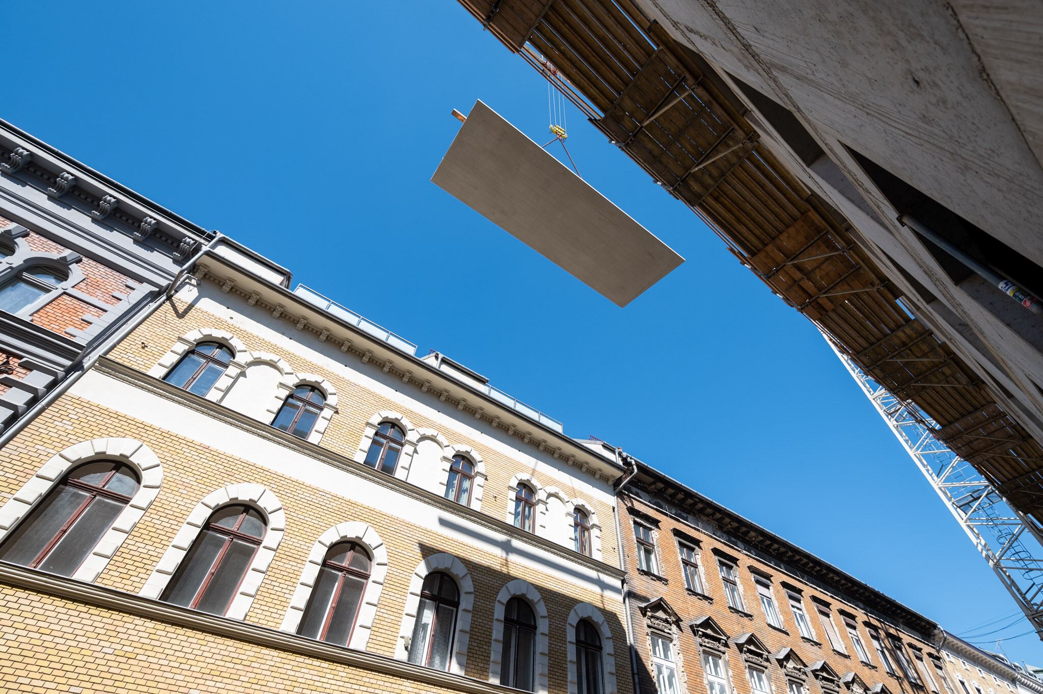 2025 áprilisára végezhet is a szerkezetépítéssel az Épszerk-Pannónia Invest Kft., amellyel az alaplemezből, három pinceszintből, földszintből és hat emeletből álló, tízszintes együttes jöhet létre. A munkák jelenleg az ötödik emeleten tartanak. A leendő szálloda hátsó udvarát három oldalról egy tetőterasz veszi majd körbe, utcafrontján pedig a szürkés bézs árnyalatú kőburkolat, illetve a középszürke műpala tető ad primer karaktert, közelebbről pedig a földszinti falakat takaró bézs árnyalatú bordás kőpanelek, a horganyzott acélburkolat, valamint az üveg függönyfal mutatja majd kortársnak a szabályos homlokzati szerkesztésű épületet.