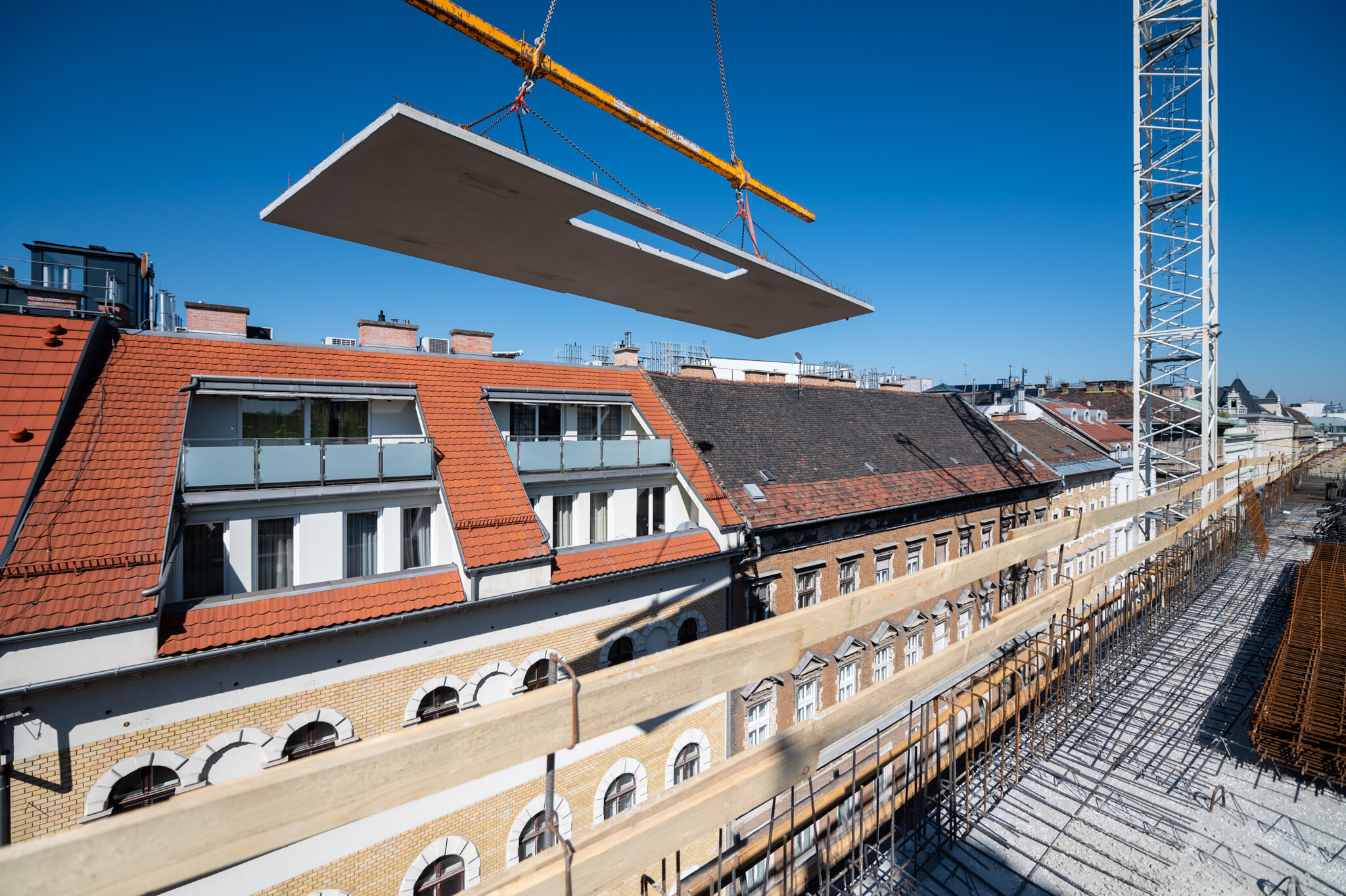 Igazi kihívást jelent a kivitelezésben a foghíjbeépítés miatti szűk munkaterület és a kis felvonulási terület, amely miatt többszöri anyagmozgatásra, szakaszos munkavégzésre van szükség. Külön érdekességként az előzetes megrendelői igények szerinti látszóbeton szerkezetépítést emelte ki a projektvezető: